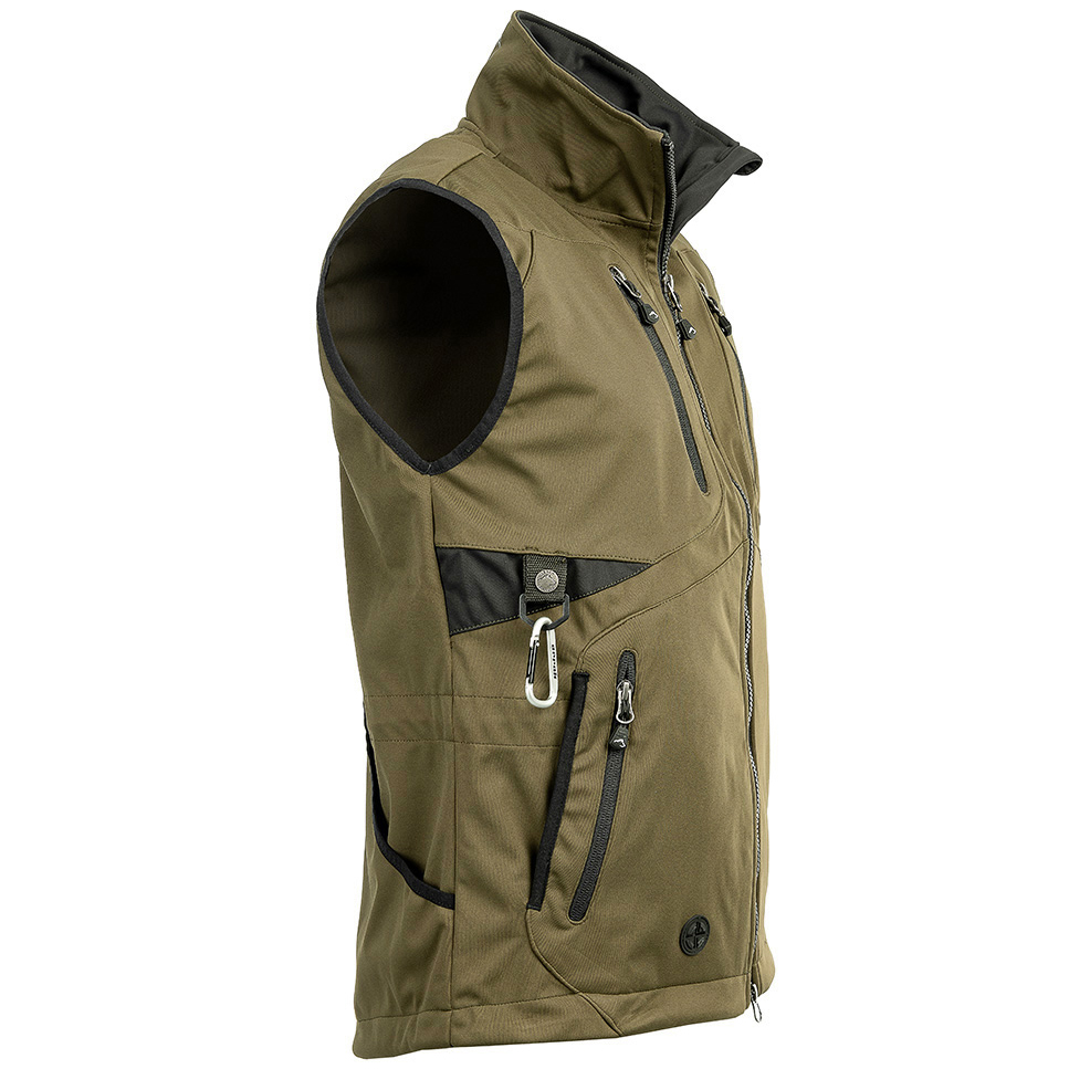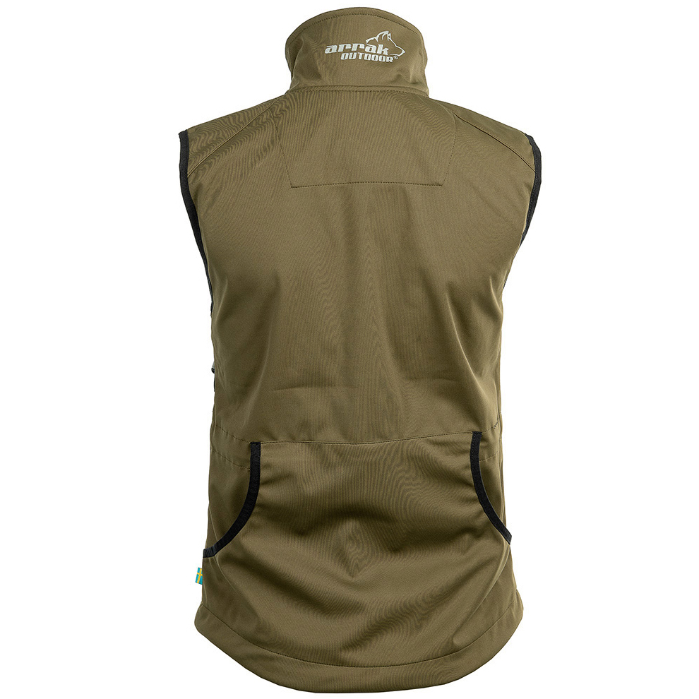 Funkcjonalna i elegancka kamizelka Arrak Acadia z elastycznego 3-warstwowego materiału softshell. Klasyczna kamizelka, gdy potrzebujesz czegoś ekstra. Kamizelka posiada sześć przednich kieszeni, w tym cztery zapinane na zamek oraz dużą tylną kieszeń bez zamka. Regulowana talia, wysoki kołnierz, karabińczyk np. bidon, smycz dla psa. Ponadto kamizelka ma wodoodporne wykończenie DWR i nadaje się do natury, wędkowania, ale także do codziennego noszenia w mieście.