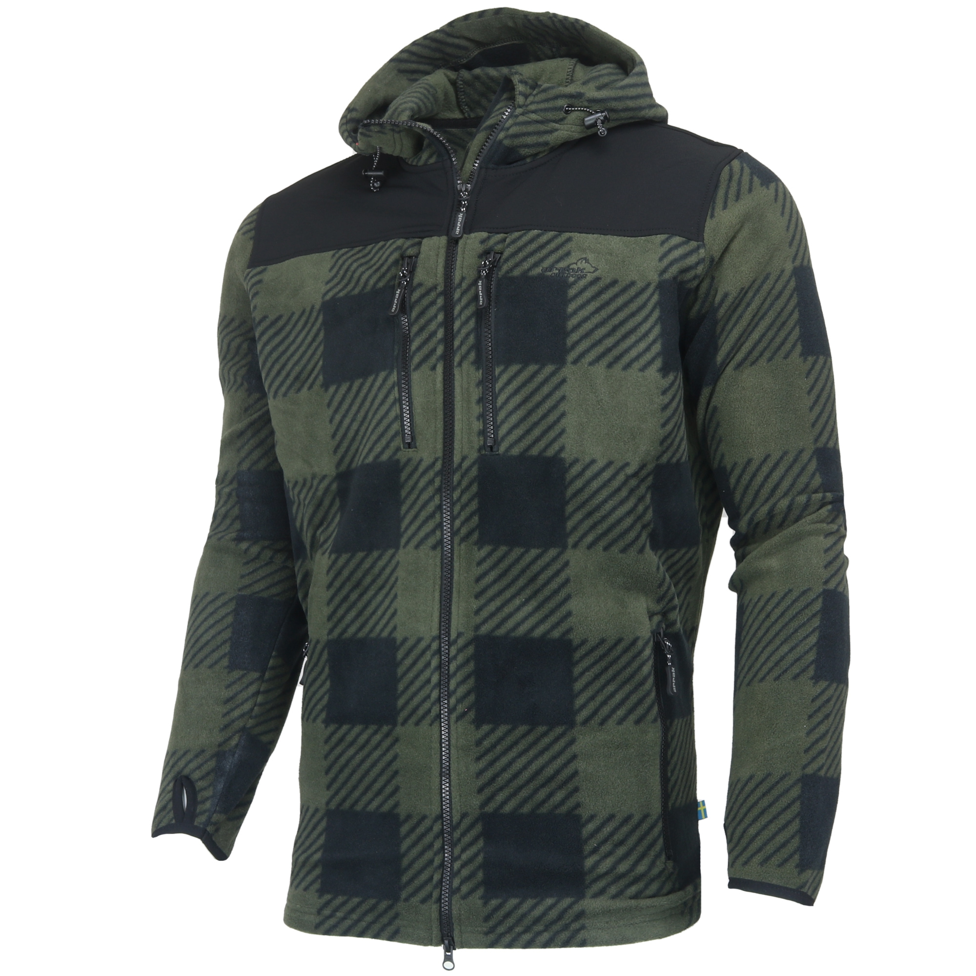 Miękka i wygodna kurtka z mikropolaru z kapturem i niemechacącym się mikropolarem. Wzmocniona część barkowa wykonana z nylonu ripstop. Kieszenie na ręce i 2 kieszenie na piersi zapinane na zamek. Tylna kieszeń na tunel zapinana na zamek. W mankietach znajdują się uchwyty na kciuki. Zastosowanie: polowanie, wędkarstwo, outdoor, miasto.