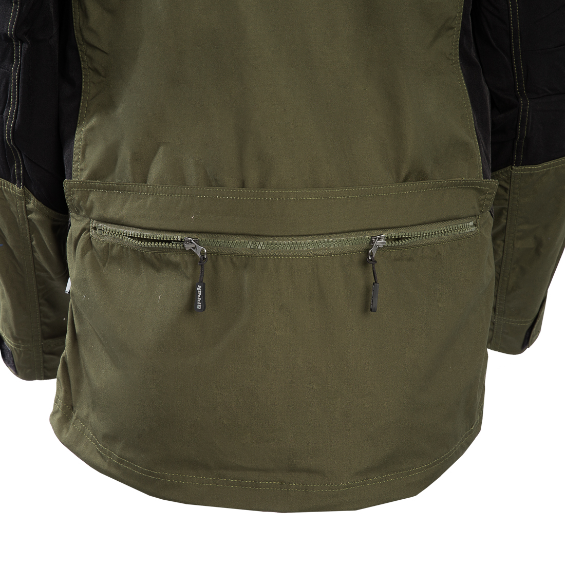Fantastycznie wygodna i funkcjonalna kurtka dla tych, którzy wymagają czegoś ekstra. Poliester/bawełna z elastycznymi wstawkami dla lepszego dopasowania i mobilności. Z boku zamki wentylacyjne. Wiele praktycznych kieszeni. Duża tylna kieszeń na suwak, 2 kieszenie na piersi z bocznymi kieszeniami na suwak. W dolnej części duża kieszeń z bocznymi kieszeniami zapinanymi na zamek. Dolna lewa kieszeń jest również wyłożona wodoodporną nylonową wyściółką, co ułatwia czyszczenie. 2 duże kieszenie wewnętrzne wykonane z siatki poliestrowej. Dwukierunkowy zamek z przodu. Regulowany kaptur. Regulowane zapięcia na rzepy na rękawach. Praktyczny D-ring z karabińczykiem. Zastosowanie: polowanie, wędkarstwo, przyroda, miasto.
