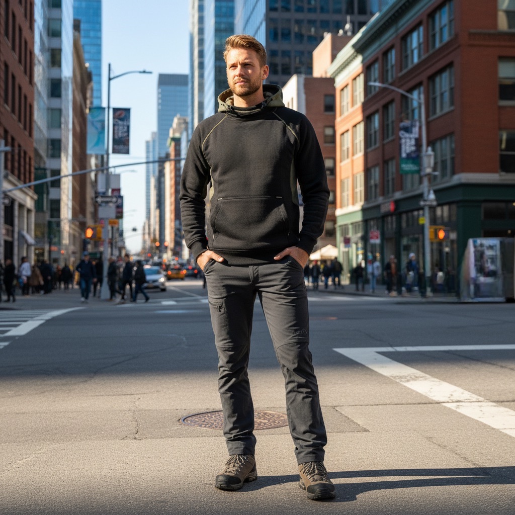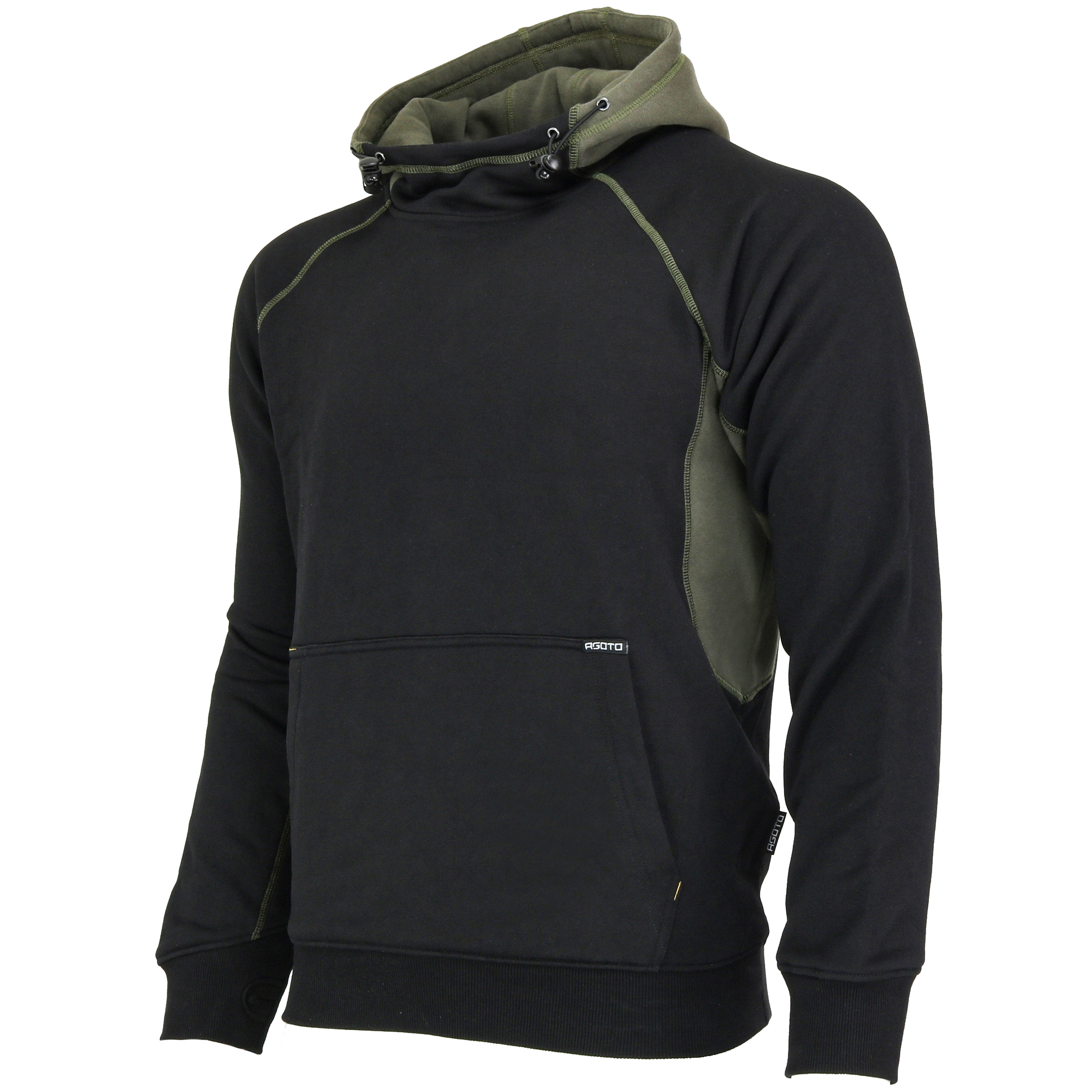 Asoto Vindel Sweden czarno oliwkowa męska bluza bawełniana 320 g to idealny wybór dla tych, którzy szukają wygody, funkcjonalności i ponadczasowego stylu. Bluza została wykonana z wysokiej jakości tkaniny bawełnianej o gramaturze 320 g/m2, co zapewnia komfort noszenia przez cały dzień – w pracy, podczas odpoczynku czy aktywności na świeżym powietrzu. Materiał jest jednocześnie miękki i wytrzymały, dobrze oddycha i utrzymuje ciepło. Skład materiału to 80 % bawełny i 20 % poliestru. Praktyczna przednia kieszeń typu kangurka zapewnia miejsce na dłonie lub drobne przedmioty. Mankiety rękawów posiadają otwory na kciuki, które zwiększają wygodę i chronią nadgarstki przed zimnem. Podszyty kaptur typu snood ze ściągaczem zapewnia dodatkowe ciepło. Bluza ma nowoczesny prosty krój, elastyczne wykończenia i stylowe połączenie czerni z oliwką, które łatwo dopasować do pozostałych elementów garderoby. Asoto Vindel Sweden to uniwersalna bluza do miasta, warsztatu i natury, która łączy komfort, trwałość i praktyczność w jednym.