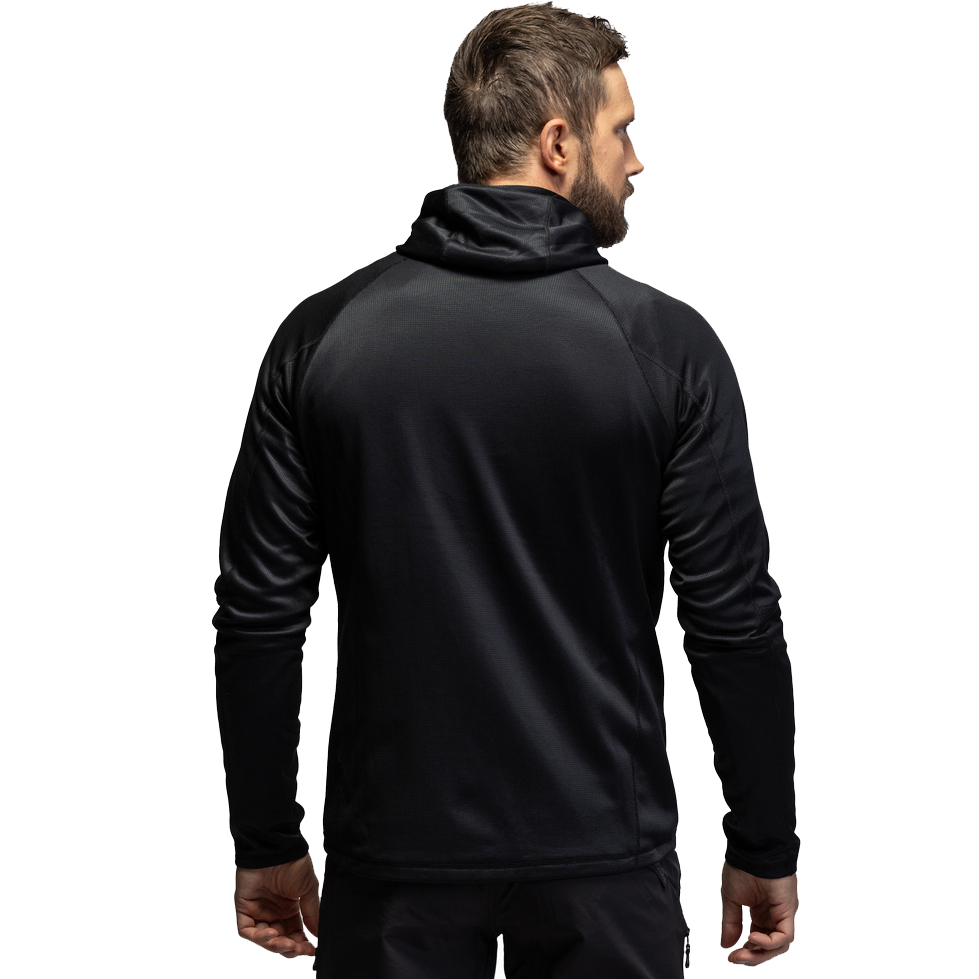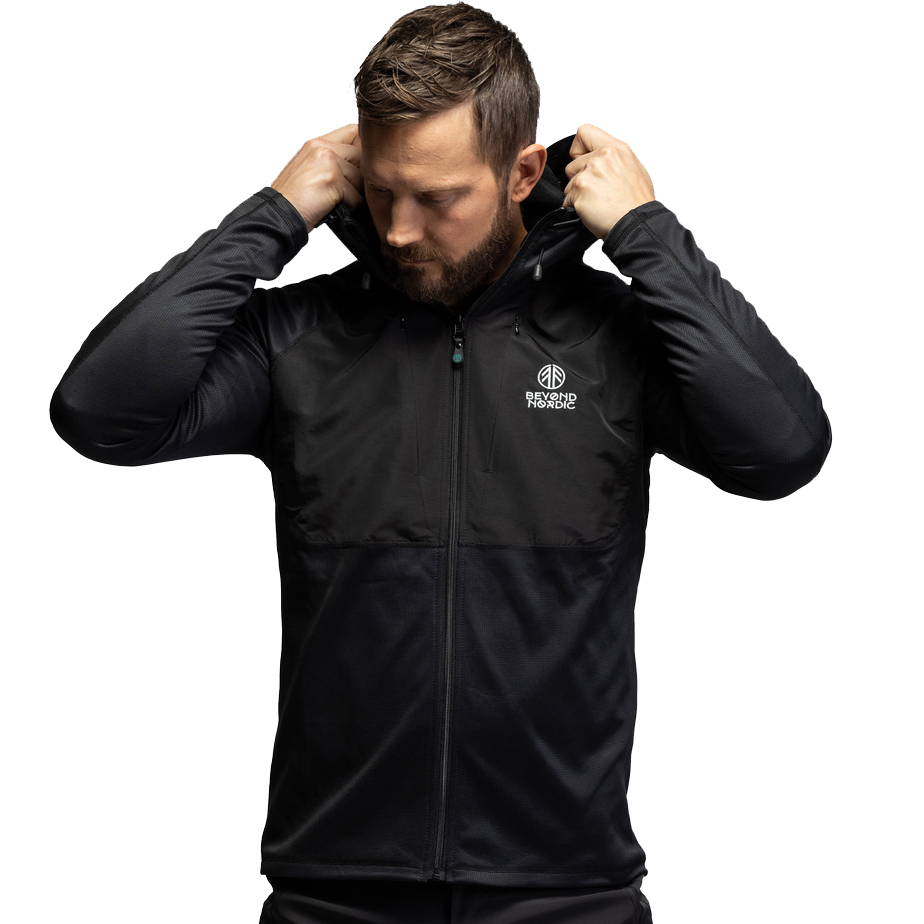 Nasza wyjątkowo uzależniająca lekka kurtka z kapturem. Doskonała jako warstwa pośrednia, jako kurtka lub jako wygodny sweter przy ognisku. Podwójne kieszenie na piersi z zamkiem błyskawicznym. Dłuższe rękawy z otworami na kciuk. Bardzo elastyczny, dopasowany krój. Kaptur regulowany za pomocą sznurka. Materiał wentylacyjny. Panele na klatce piersiowej odpychające wodę i jednocześnie wiatroodporne.