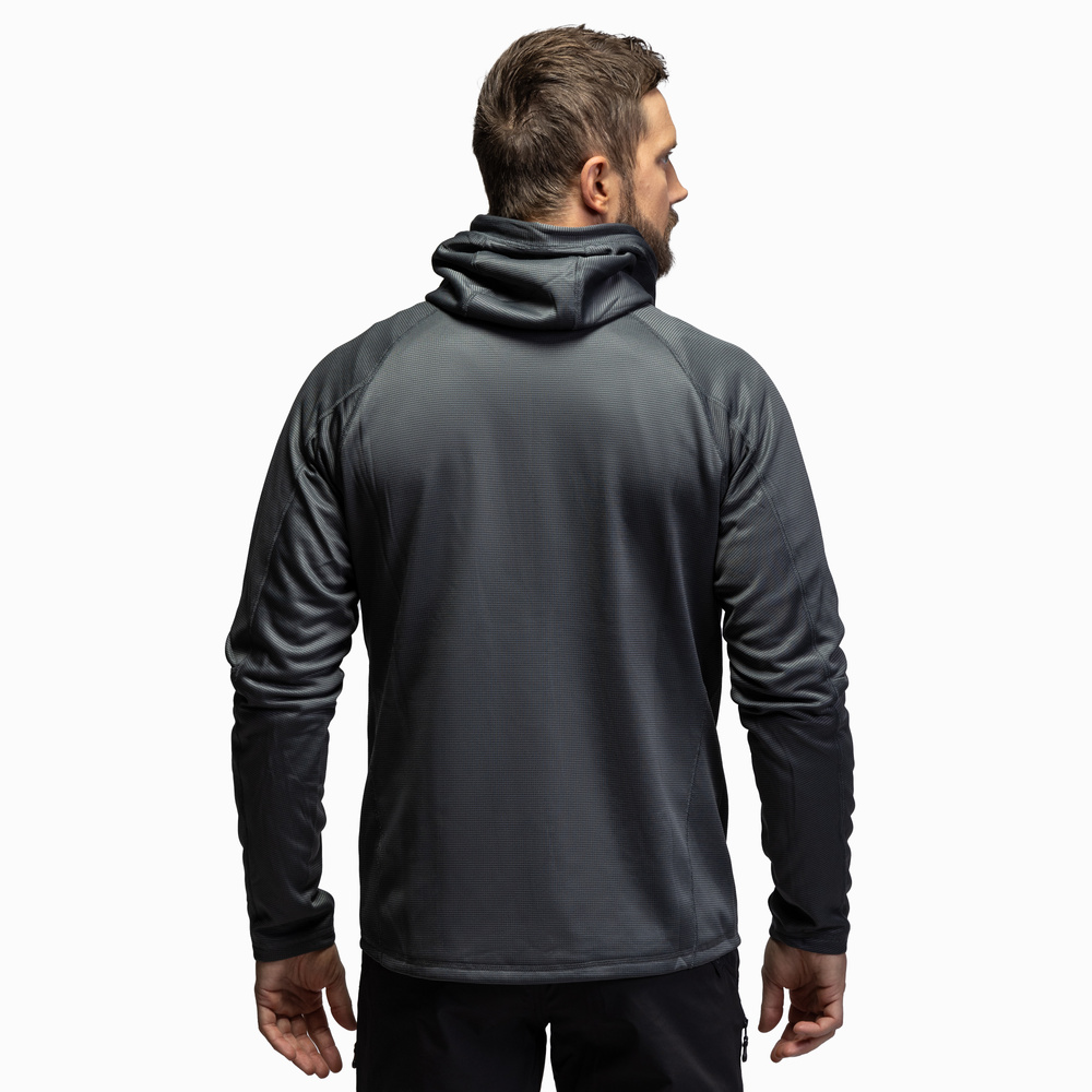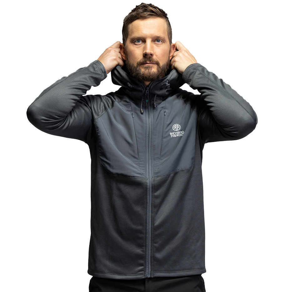 Nasza niezwykle uzależniająca, lekka kurtka z kapturem. Idealna jako warstwa środkowa, jako kurtka lub jako przytulny sweter przy kominku. Podwójne kieszenie na piersi zapinane na zamek. Dłuższe ramiona z otworami na kciuki. Super elastyczny, dopasowany krój. Kaptur regulowany sznurkiem. Materiał wentylacyjny. Wodoodporne i wiatroszczelne panele na klatce piersiowej.