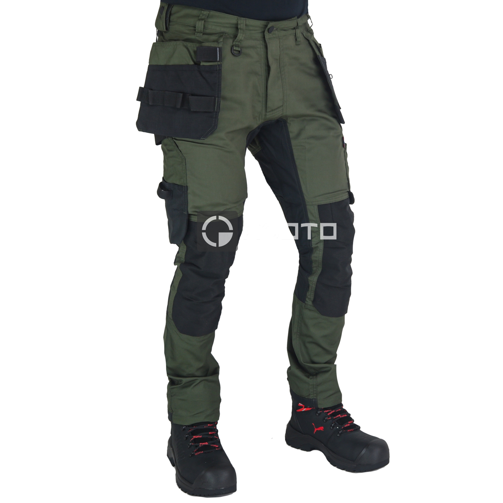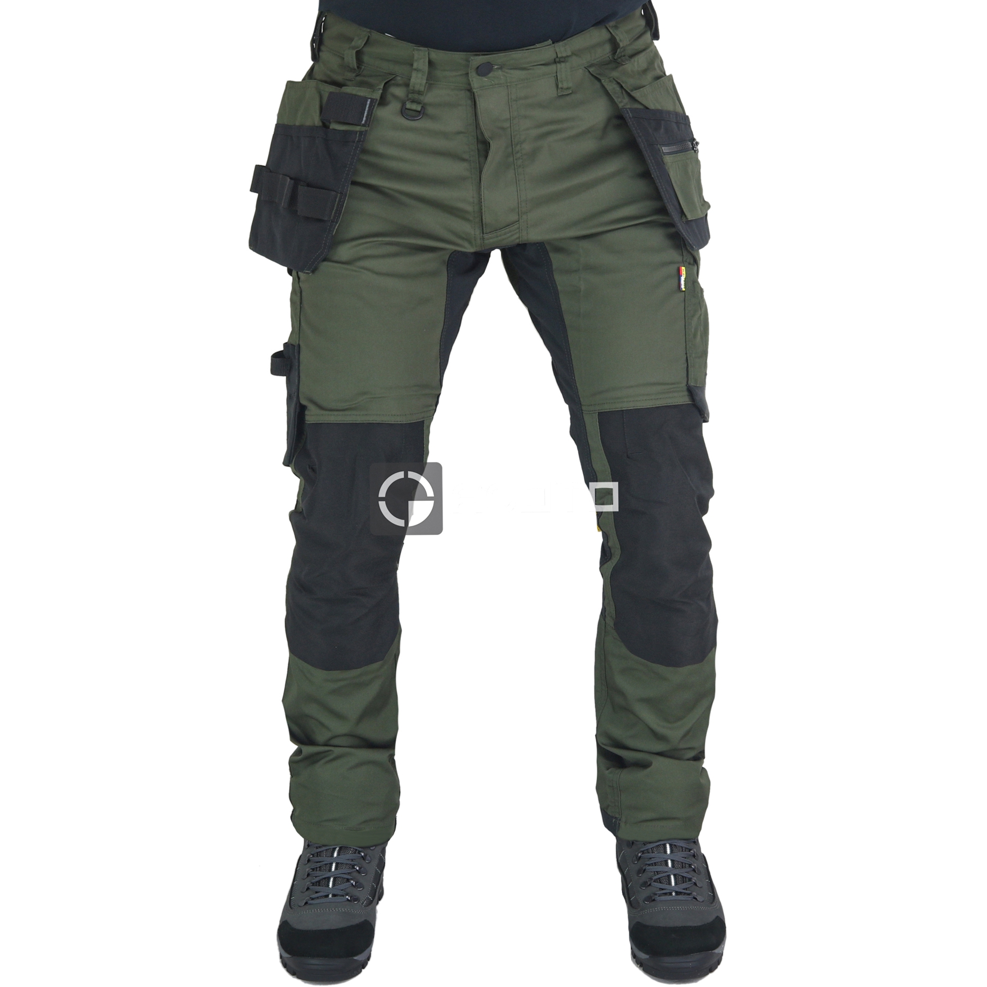 Dożywotnia gwarancja na szwy! Spodnie rzemieślnicze Blakläder 17501832 ze stretchem to lekkie i wyjątkowo wygodne spodnie robocze, które łączą dwukierunkowy materiał rozciągliwy z panelami o czterokierunkowej elastyczności, zapewniając maksymalną swobodę ruchów tam, gdzie jest to najbardziej potrzebne. Dzięki ergonomicznie ukształtowanym kolanom i luźniejszemu krojowi zapewniają doskonały komfort nawet podczas całodniowego użytkowania. Spodnie wyposażone są w wytrzymałe kieszenie na gwoździe, wzmocnione kieszenie na nakolanniki CORDURA®, praktyczne kieszenie z wzmocnieniem, kieszeń na miarę, przednie kieszenie oraz szlufki na młotek po obu stronach, co czyni je idealnym wyborem dla profesjonalnych rzemieślników. Detale, takie jak plastikowy zamek błyskawiczny, szeroka szlufka z tyłu, metalowe guziki, pierścień D-ring w pasie oraz odpinana kieszeń na dokumenty, zwiększają funkcjonalność i trwałość spodni. Dodatkowo dolna część nogawek została wzmocniona dla dłuższej żywotności, a elementy odblaskowe na nogawkach poprawiają widoczność. Materiał składa się w 63% z poliestru, 33% bawełny i 4% elastolefinu w splocie skośnym o gramaturze 245 g/m2 – jest wytrzymały, elastyczny i wygodny w noszeniu. Blakläder oferuje również dożywotnią gwarancję na szwy, co potwierdza wysoką jakość i długowieczność tych spodni rzemieślniczych.