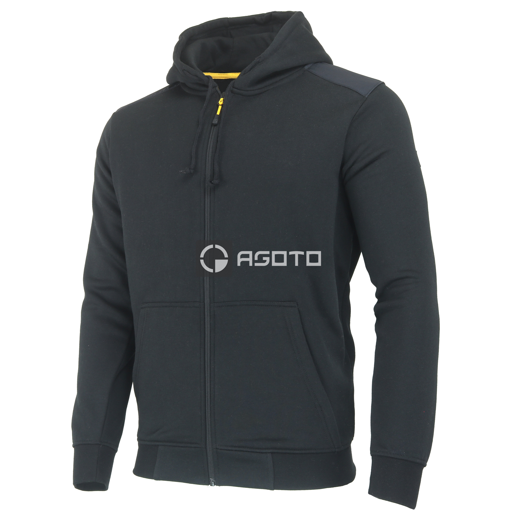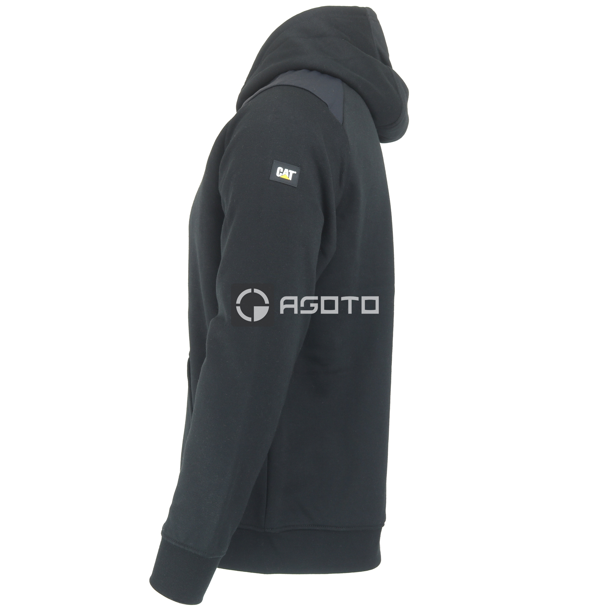 Nowoczesna bluza z kapturem i zamkiem błyskawicznym ułatwiającym ubieranie. Wysoka zawartość bawełny i polaru od wewnątrz. Wzmocnione ramiona + logo CAT na lewym rękawie. Materiał: 70% bawełna, 30% polar poliestrowy. Czarny kolor. Waga: 300g/m2