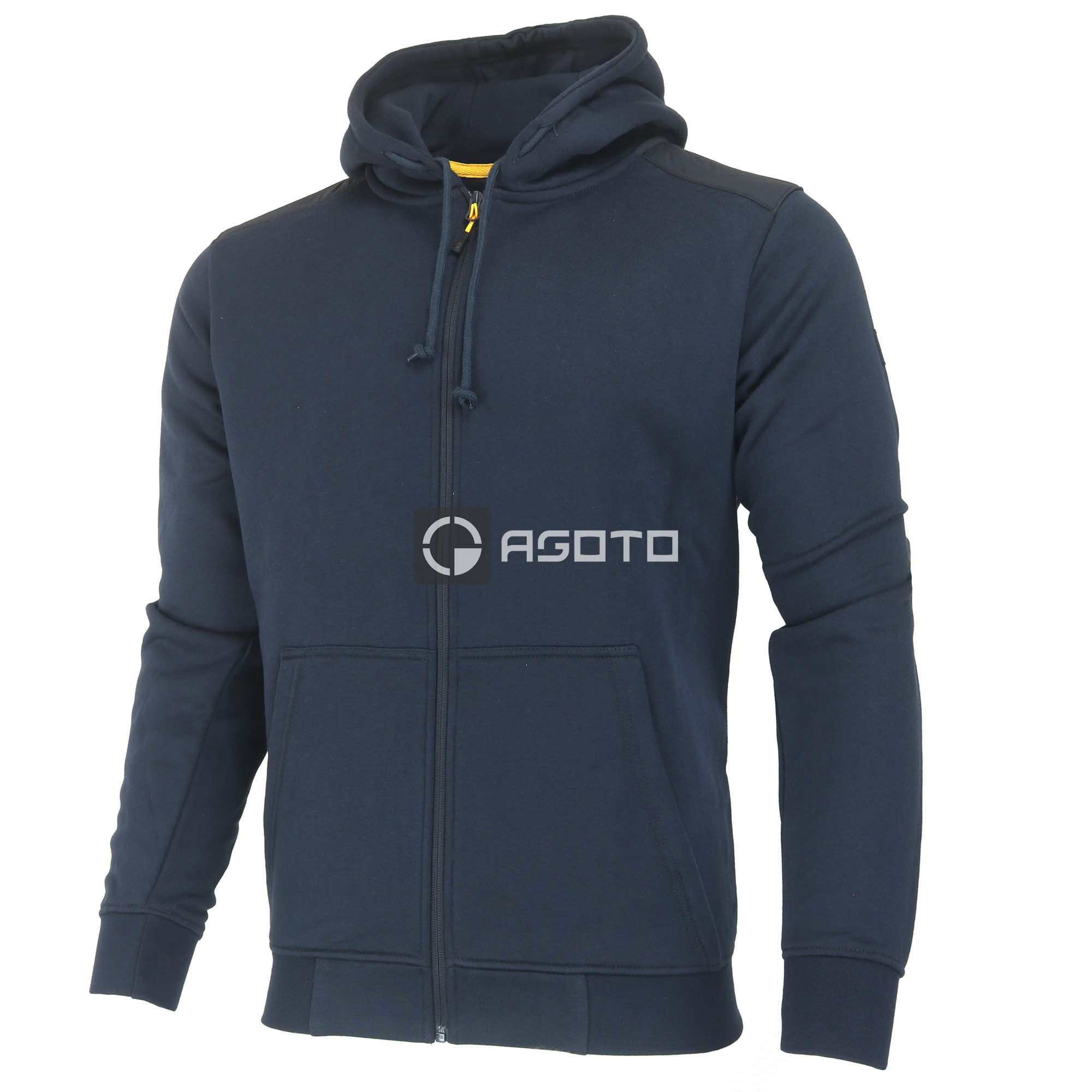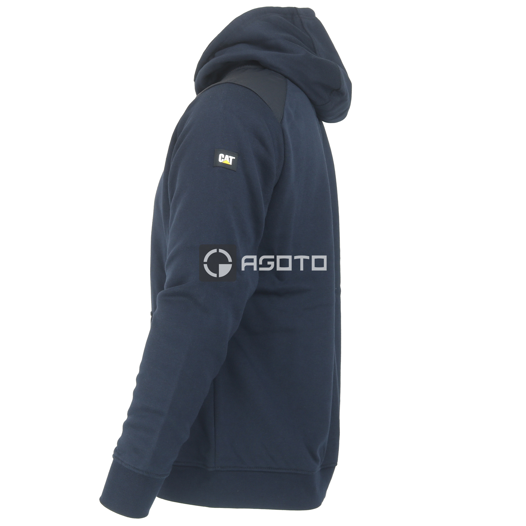 Nowoczesna bluza z kapturem i zamkiem błyskawicznym ułatwiającym ubieranie. Wysoka zawartość bawełny i polaru od wewnątrz. Wzmocnione ramiona + logo CAT na lewym rękawie. Materiał: 70% bawełna, 30% polar poliestrowy. Czarny kolor. Waga: 300g/m2