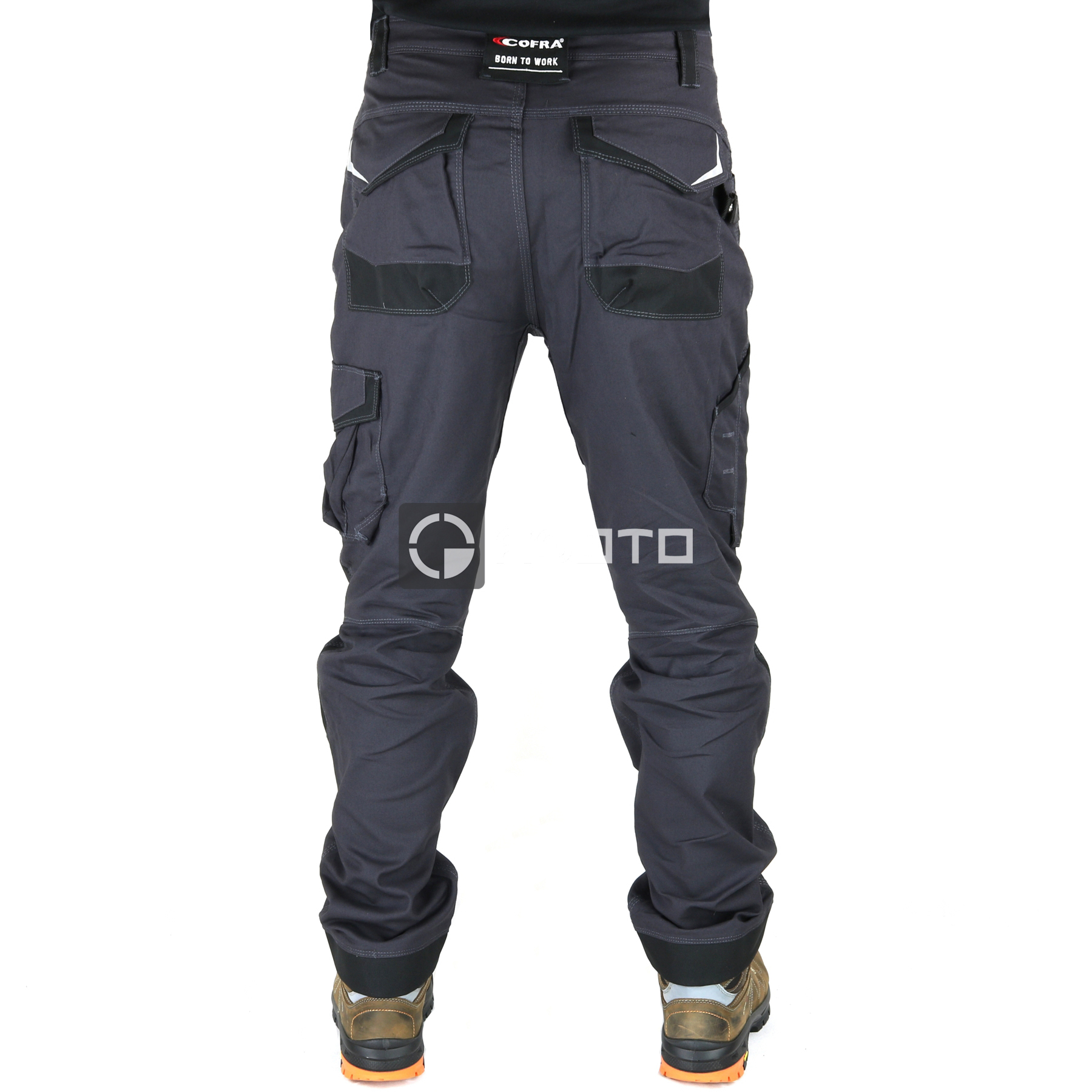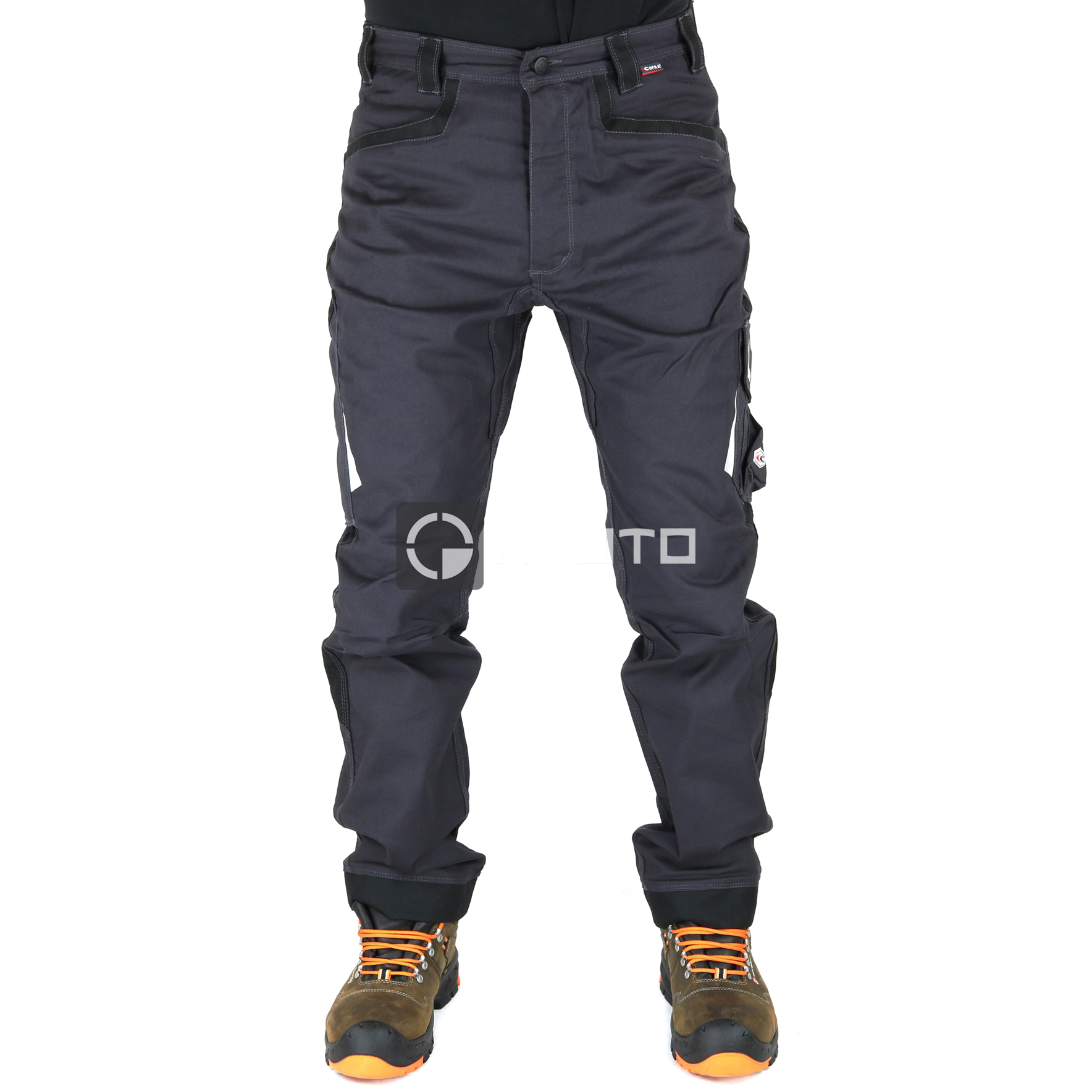 spodnie robocze Cofra Barrerio Stretch, 2 szerokie kieszenie z przodu, ochraniacze odblaskowe 3M™ SCOTCHLITE™ Materiał odblaskowy - 8725 Silver Fabric, ochraniacze odporne na ścieranie na kieszeniach tylnych, ochraniacze odporne na ścieranie na dole spodni, ochraniacze odporne na ścieranie na kieszeni przedniej, podwójna tylna kieszeń z patką, elastyczny pas, pętelka na młotek, ergonomiczny kształt kolan i nogawek, kieszeń na telefon komórkowy, wzmocniony krok, kieszeń na metr, kieszeń boczna, materiał elastyczny, zamek błyskawiczny YKK®, SKŁAD: 64% bawełna - 34% poliester - 2% elastan + wstawki odporne na ścieranie ze 100% nylonu, 250 g/m2