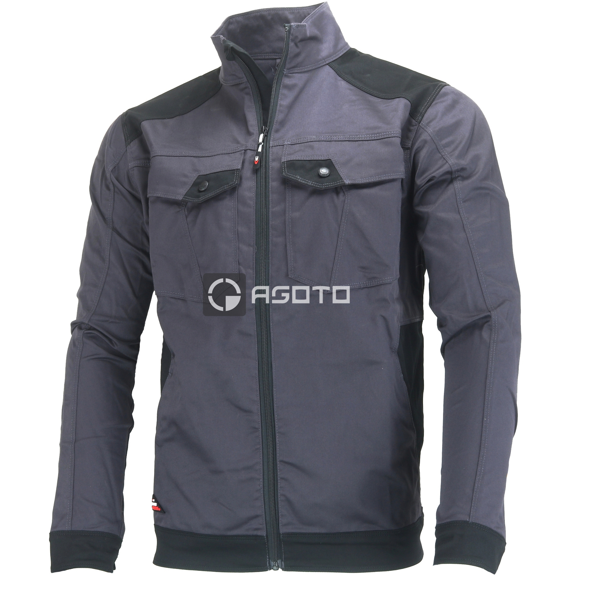 2 kieszenie przednie zapinane na zamek, regulowane mankiety, ergonomiczny kształt ramion, kieszeń piersiowa na telefon komórkowy z materiału E-WARD oraz szlufka na uchwyt na identyfikator z zamkiem błyskawicznym, kieszeń piersiowa z patką zamykaną na zamek, materiał o wysokiej elastyczności, patka chroniąca podbródek , zapinana na zamek z przodu, szerokie kieszenie wewnętrzne