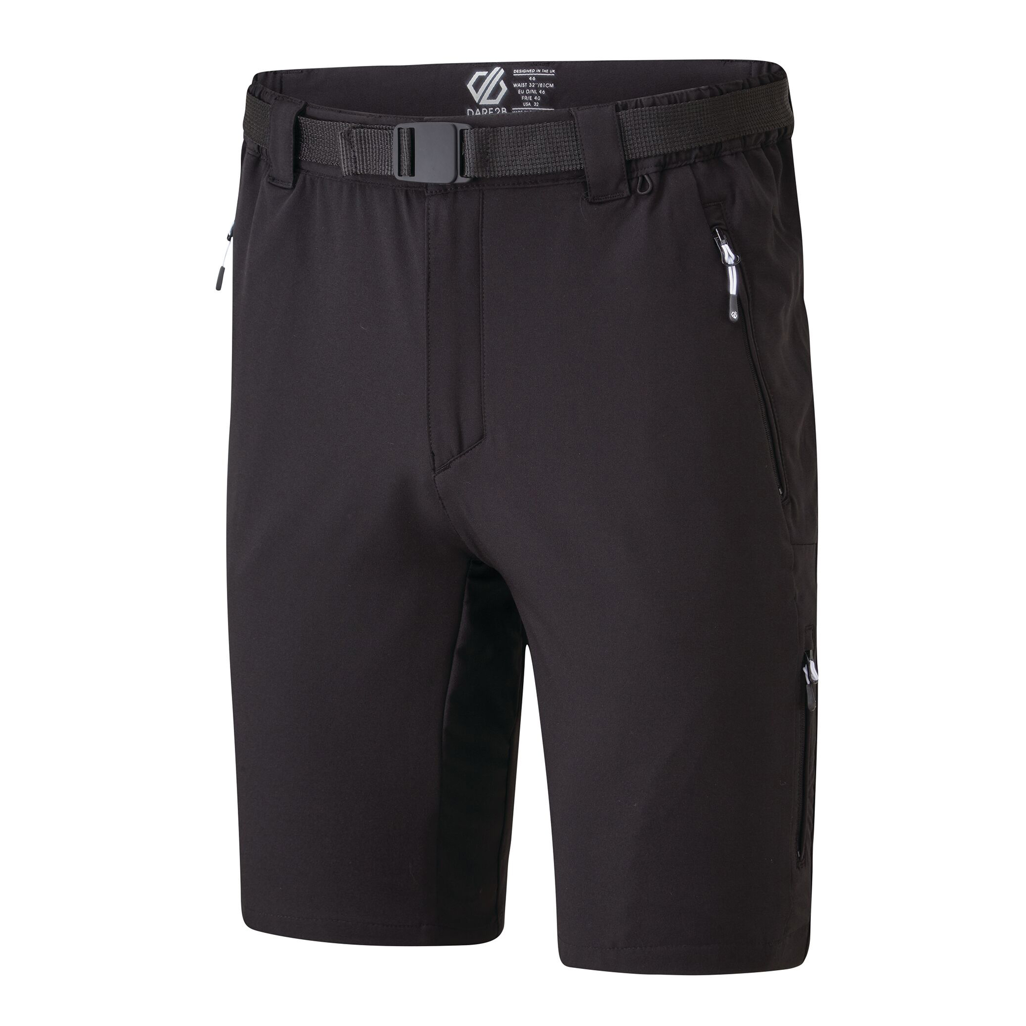 Spodenki męskie Dare 2b Disport II Short wykonane są z lekkiego i oddychającego materiału ILUS SOFTSHELL. Materiał wierzchni pokryty jest hydrofobową obróbką powierzchni, dzięki czemu deszcz na materiale kuli się i nie wsiąka w tkaninę. Spodenki posiadają klasyczne zapięcie na zamek, pasek, część w pasie jest elastyczna, dzięki czemu spodenki zapewniają większy komfort noszenia, dwie kieszenie z przodu zapinane na zamek, jedna kieszeń na udzie. Ulubiona długość powyżej kolan, dzięki której masz większą swobodę ruchów. Model ten wykorzystasz podczas lekkich wędrówek, gdzie szczególnie docenisz elastyczność i trwałość materiału. Materiał: 94% poliester, 6% elastan