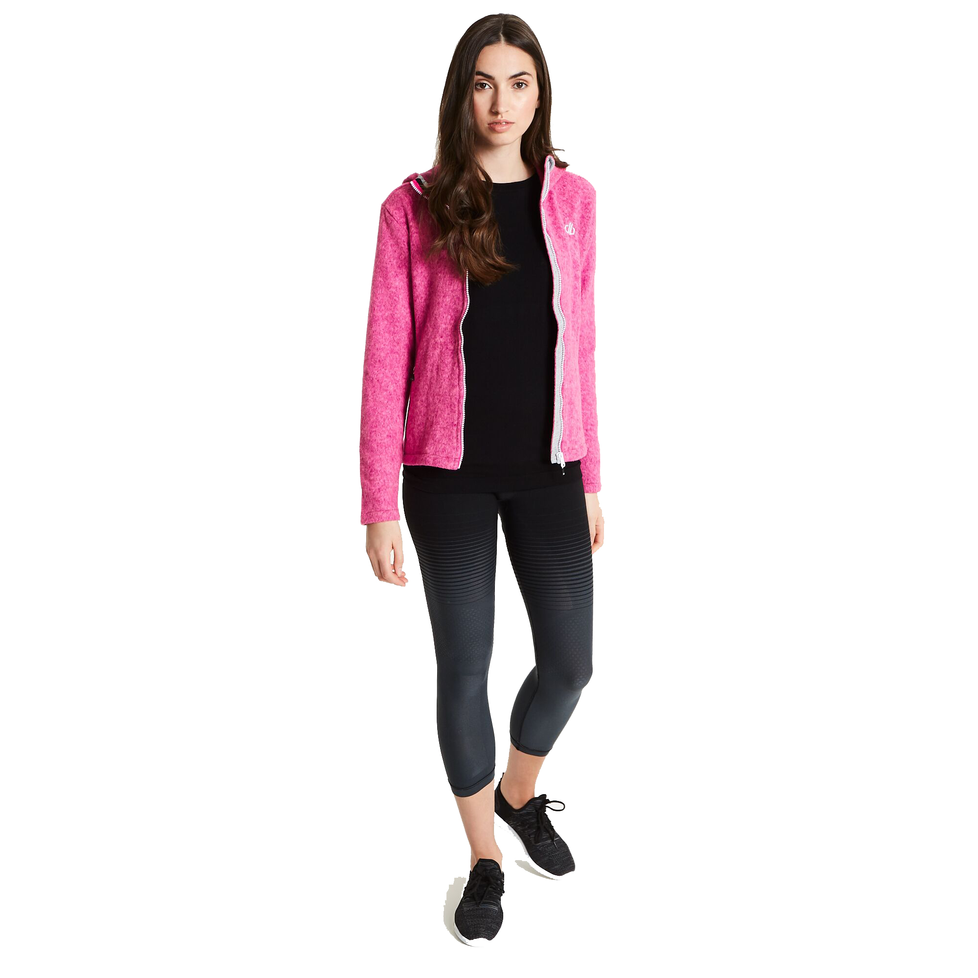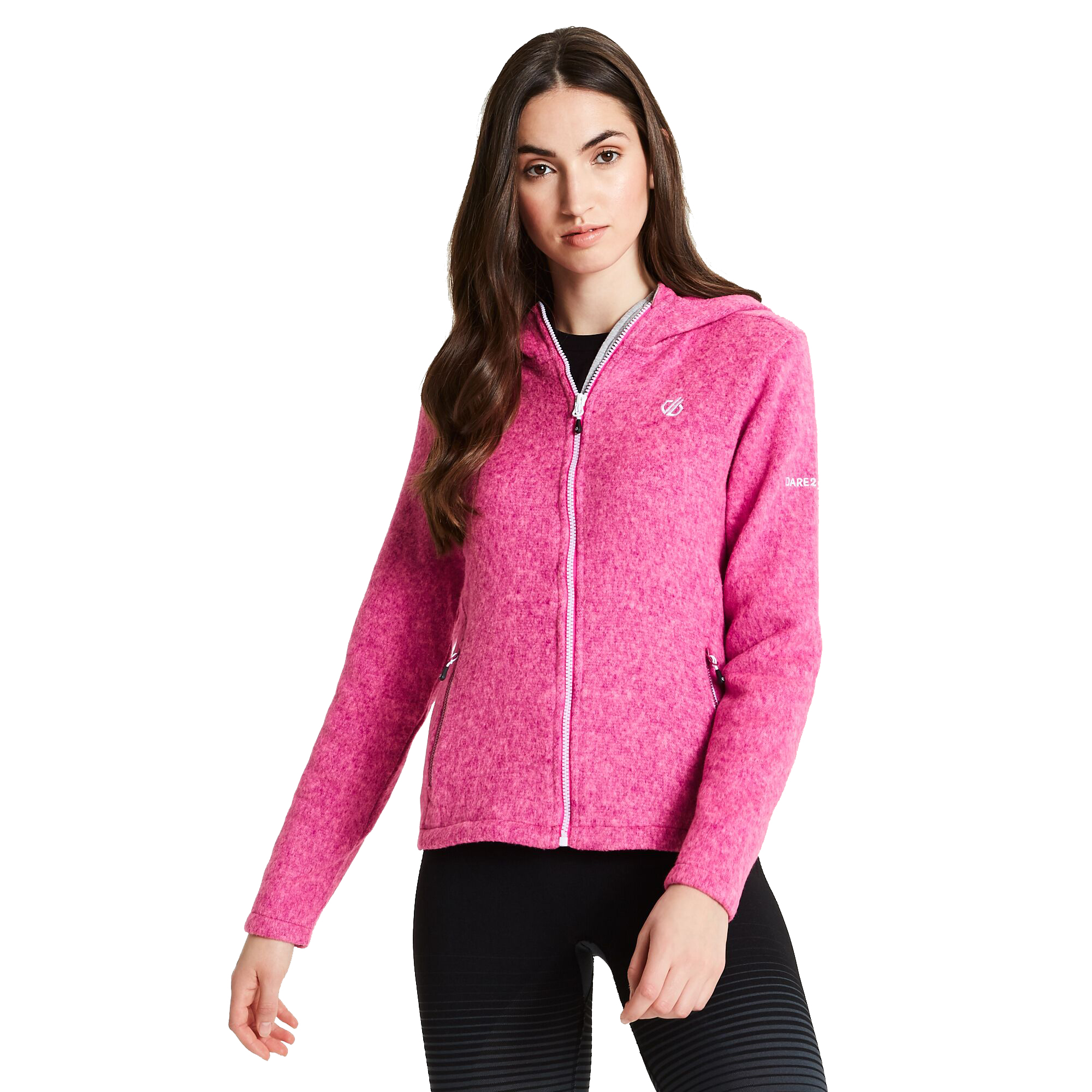 Dámská mikina Dare 2b Forerun Sweater je celorozepínací s pevnou kapucí. Je vyrobena z pletené fleecové tkaniny. Má dvě kapsy na zip s taháčky, aby se lépe zip ovládal.