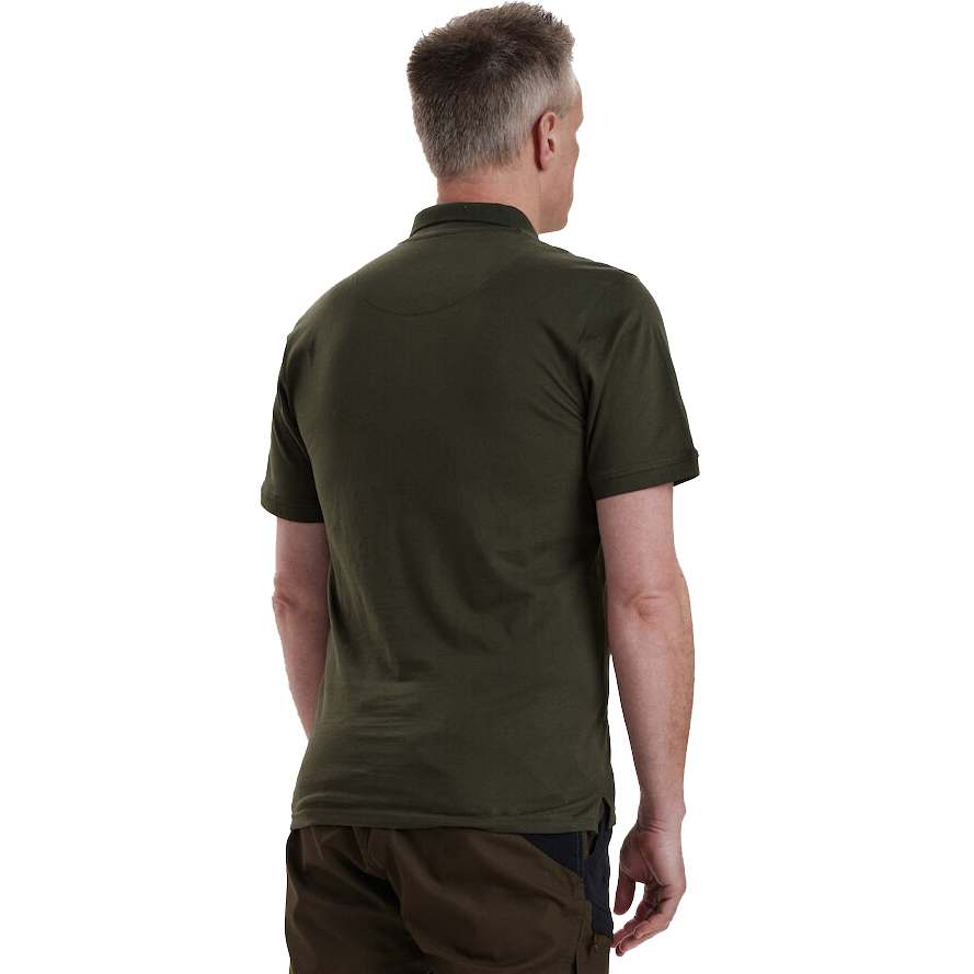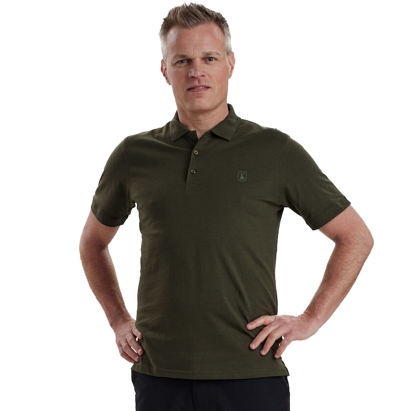Klasyczna koszulka polo Deerhunter ma tradycyjne prążkowane detale na rękawach i kołnierzu i jest dostępna w szerokiej gamie neutralnych kolorów. Wykonany z wygodnej mieszanki bawełny i poliestru, idealnie nadaje się na polowania i codzienne przygody.