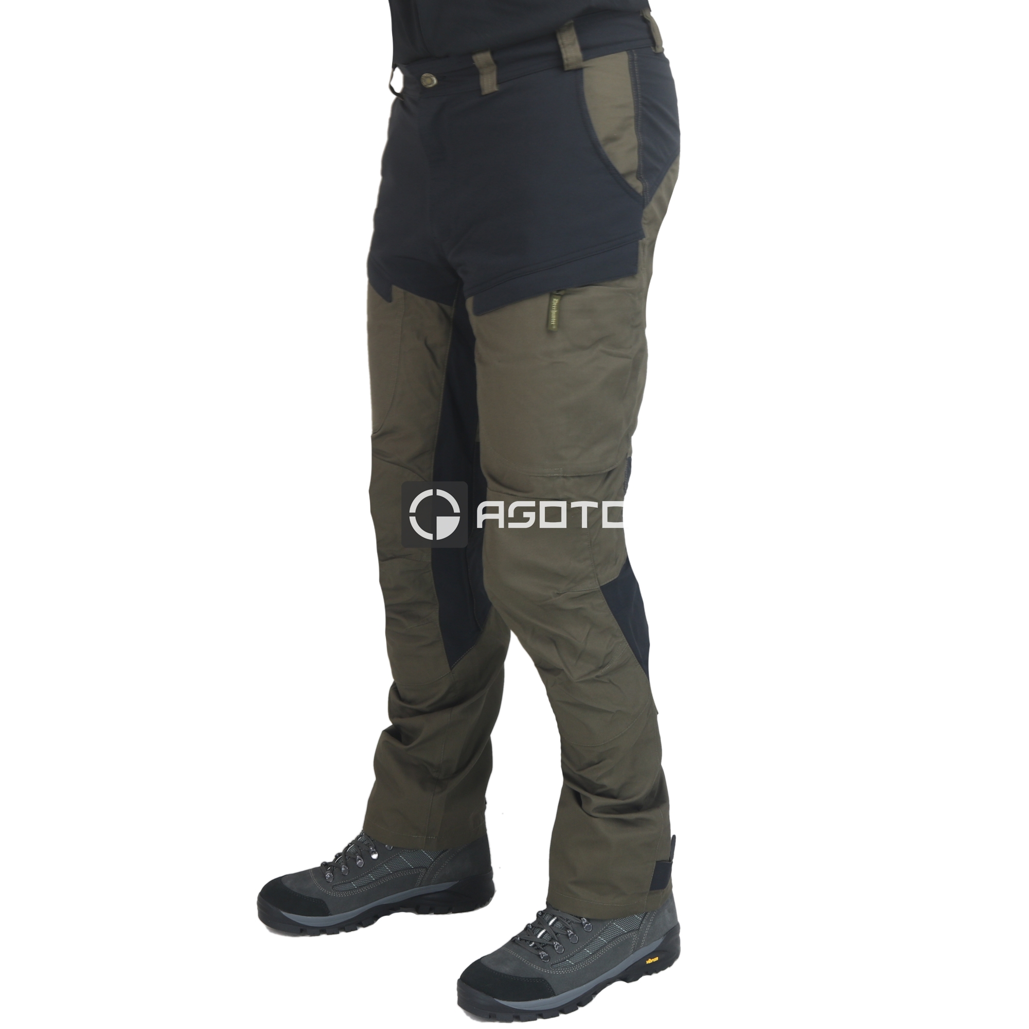Stworzony dla aktywnego myśliwego i entuzjasty outdooru; noszenie codziennych rzeczy nigdy nie było łatwiejsze dzięki dwóm zintegrowanym kieszeniom przednim, kieszeni na udzie z zakładkami i ukrytemu zamkowi błyskawicznemu, które zapewniają dodatkową ochronę Twojego sprzętu. Dzięki dodatkowym obszarom rozciągającym się w 4 kierunkach i wstępnie ukształtowanym kolanom spodnie te zapewniają maksymalną elastyczność i większą swobodę ruchów. Spodnie mają ładny design i wygodny krój, elastyczną talię i regulowaną kostkę za pomocą paska i rzepa. Spodnie posiadają wodoodporną powłokę DWR.