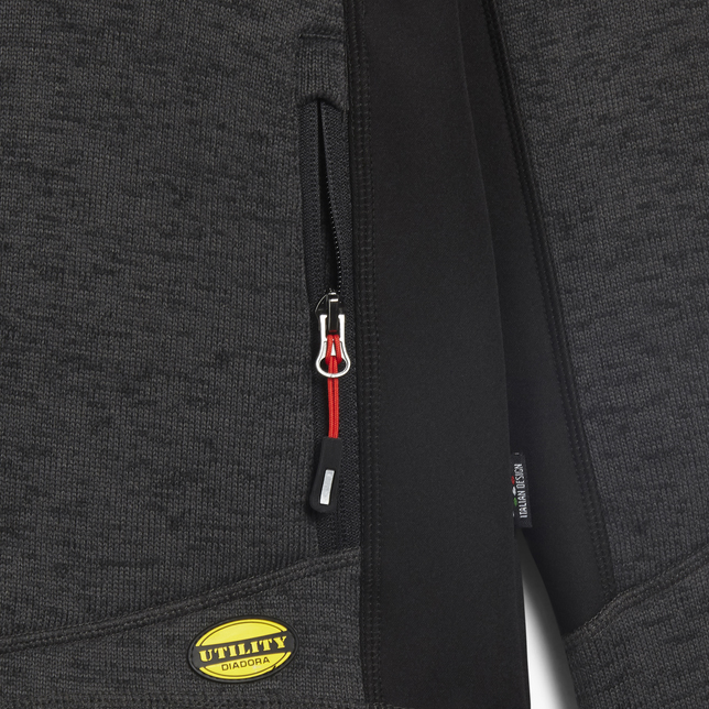 Bluza z jerseyową stroną zewnętrzną i szczotkowanym wnętrzem ze stójką i ergonomicznymi rękawami. Dłuższy tył dla lepszego dopasowania. Dwie kieszenie boczne i jedna przednia zapinana na zamek i elementy odblaskowe. Regulowany ściągacz u dołu. Materiał: dzianina 100% poliester, 300 g/m2; Wstawki softshell 94% poliester 6% elastan 300 g/m2