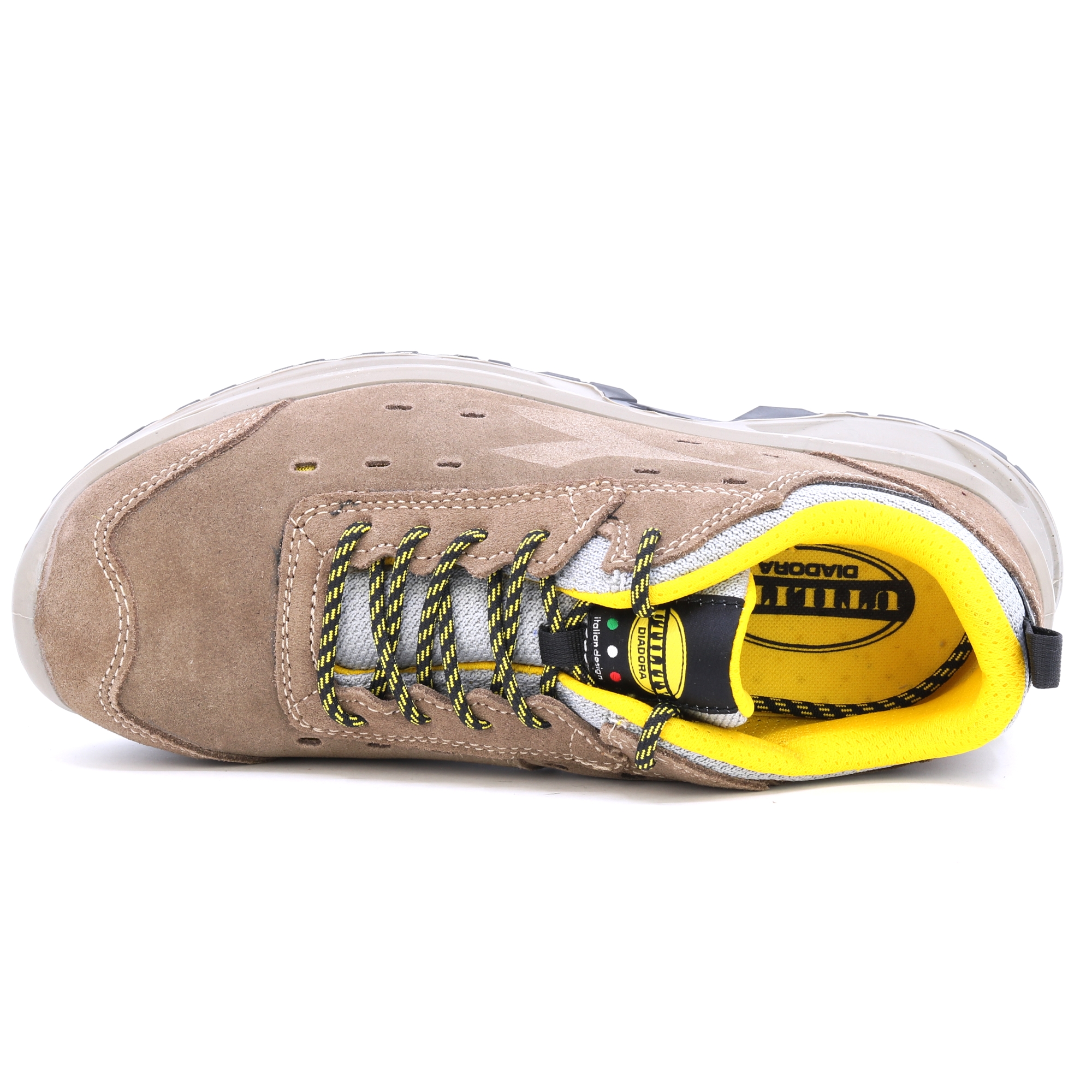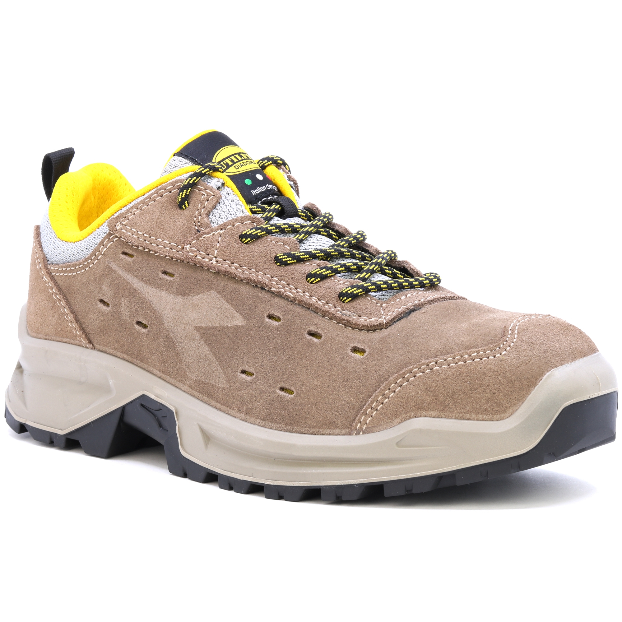 Półbuty ochronne S1P wykonane z perforowanej włoskiej skóry zamszowej. Waga stalowa 200J. Wkładka antyprzebiciowa K-SOLE. Wyjmowana, oddychająca, mikroperforowana wkładka wykonana z pianki PU z węglem aktywnym.