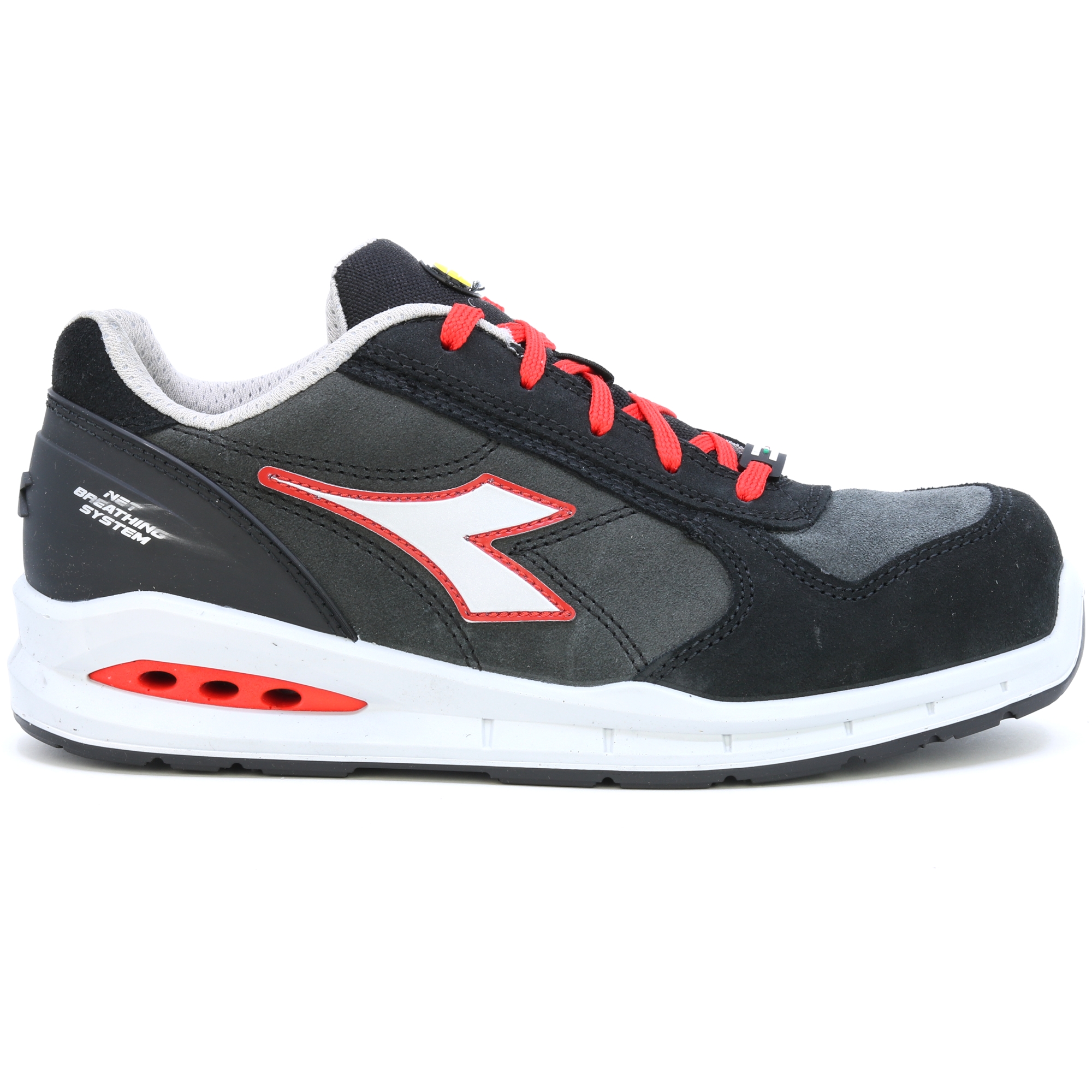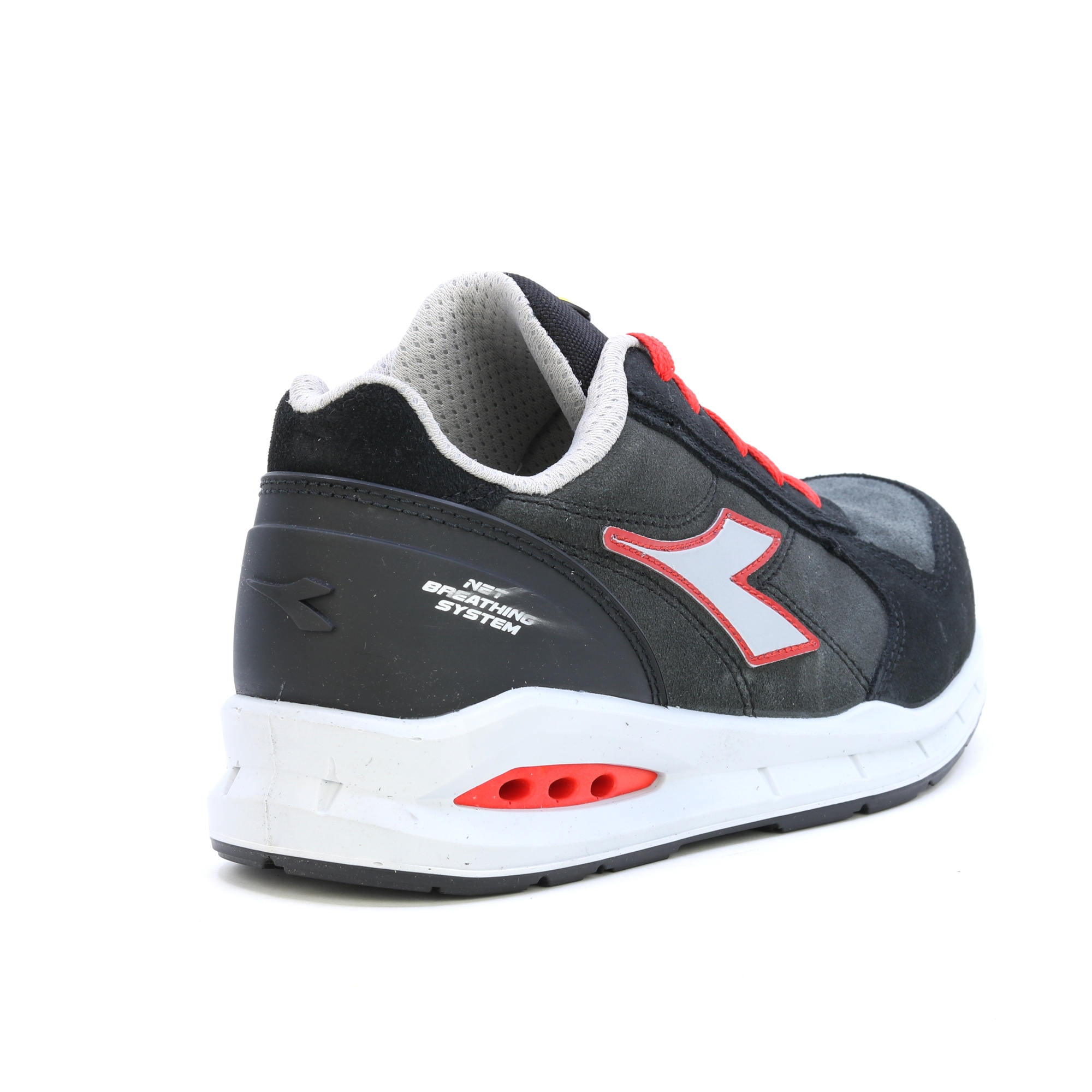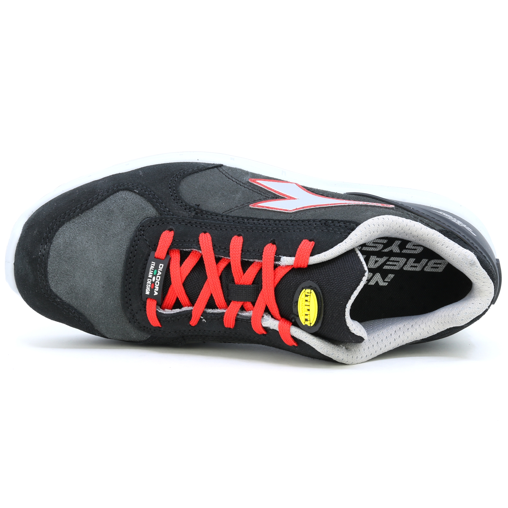 Buty robocze, które oddychają! Niskie buty ochronne S3 ze skóry zamszowej, wodoodporne i oddychające z systemem Net Breathing System firmy Geox po bokach. K SOLE, nylonowa, odporna na ścieranie i ultra oddychająca wyściółka, wyjmowana i oddychająca wkładka z aktywnym węglem. System Geox wspomaga przepływ powietrza z buta na zewnątrz i zapobiega poceniu się stopy. SYSTEM ODDECHOWY OD GEOX - AIRBOX: Diadora Utility rozszerza swoją ofertę produktów NET BREATHING SYSTEM (licencjonowanych przez GEOX) i wprowadza własną opatentowaną technologię. Ta ekskluzywna seria, opracowana w laboratoriach badawczych Diadora, reprezentuje doskonałość w zakresie innowacji i wzornictwa. Te buty pozwalają stopie swobodnie oddychać i zapewniają maksymalny komfort w każdej sytuacji. Innowacyjne boczne położenie otworów wentylacyjnych w nowej konstrukcji Airbox zapewnia niezrównaną oddychalność. Specjalna membrana GEOX Diadora została teraz dodatkowo ulepszona poprzez dodanie otworów po bokach, które zapewniają stopie maksymalną oddychalność, pozostając w idealnej harmonii z elementami ochronnymi, które tworzą but. Badania potwierdziły, że ta membrana – która zawiera maleńkie dziurki lub „mikropory”, które są mniejsze niż kropla wody, ale większe niż cząsteczka pary wodnej – zapobiega przedostawaniu się wody do buta, zapewniając jednocześnie, że stopa pozostaje sucha