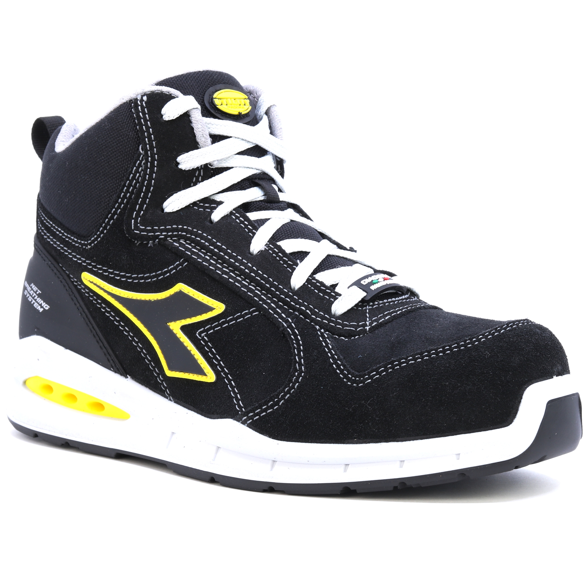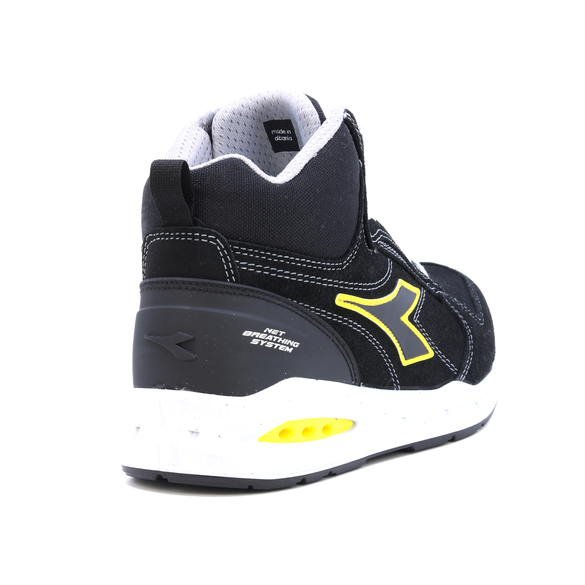 Kostki ochronne S3 wykonane ze skóry zamszowej, wodoodporne i oddychające, z systemem Net Breathing System firmy Geox po bokach. K SOLE, nylonowa wyściółka odporna na ścieranie i ultra oddychająca, wyjmowana i oddychająca wkładka z węglem aktywnym.
