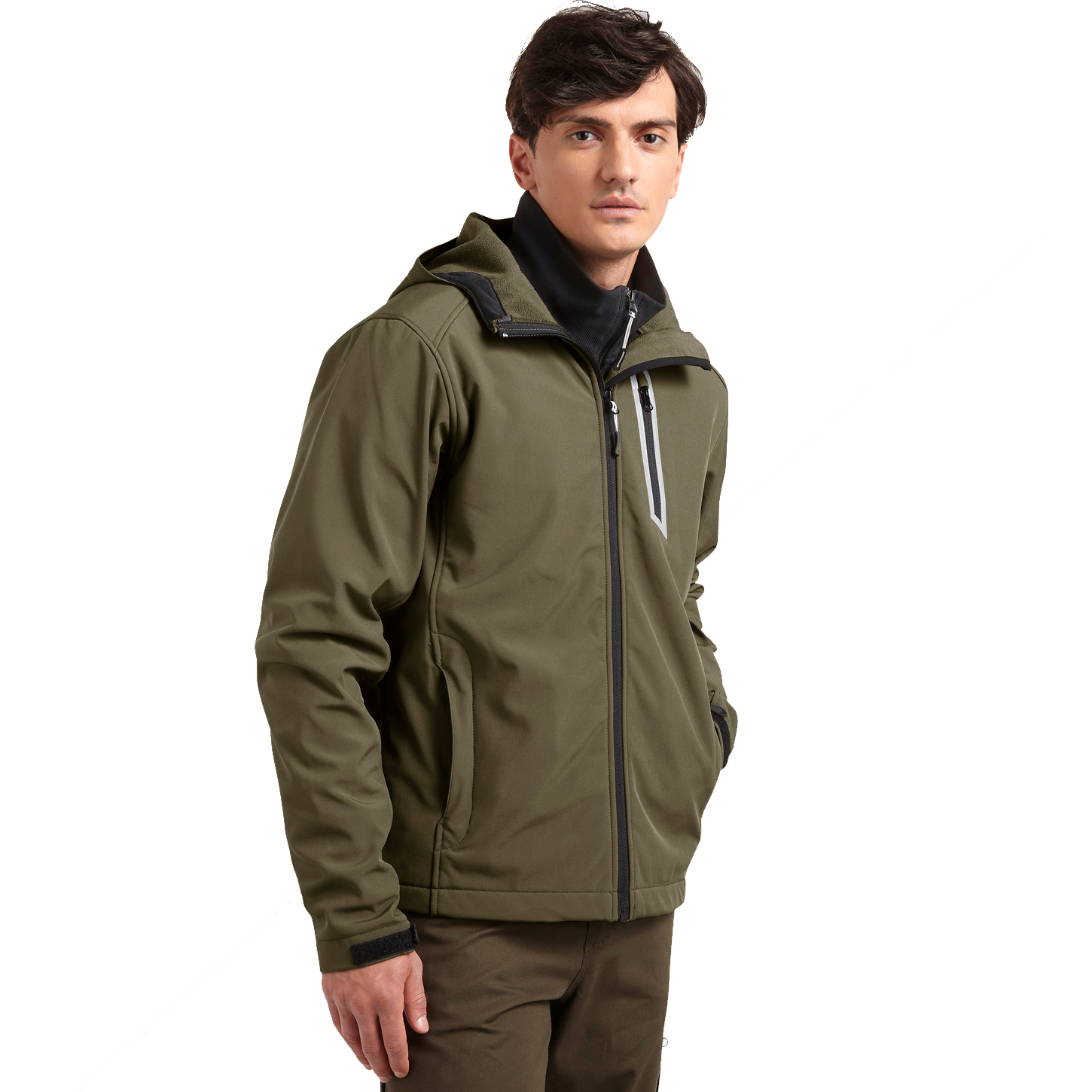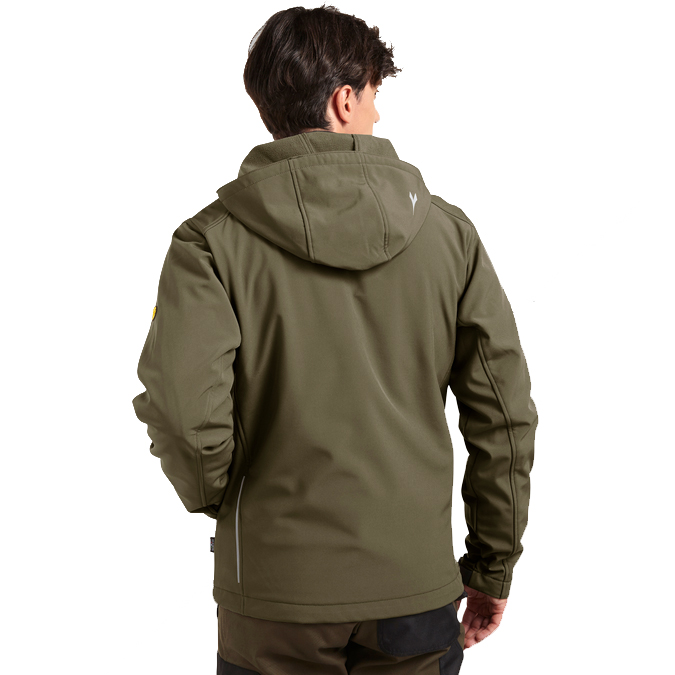 Kurtka typu softshell, 3 przednie kieszenie zapinane na zamek, jedna na piersi, odblaskowe detale, regulowany kaptur. Regulowane mankiety. Słup wody: 3000 mm. Odporność na wiatr: 3000 mvp Softshell 94% poliester - 6% elastan 300 gr/m