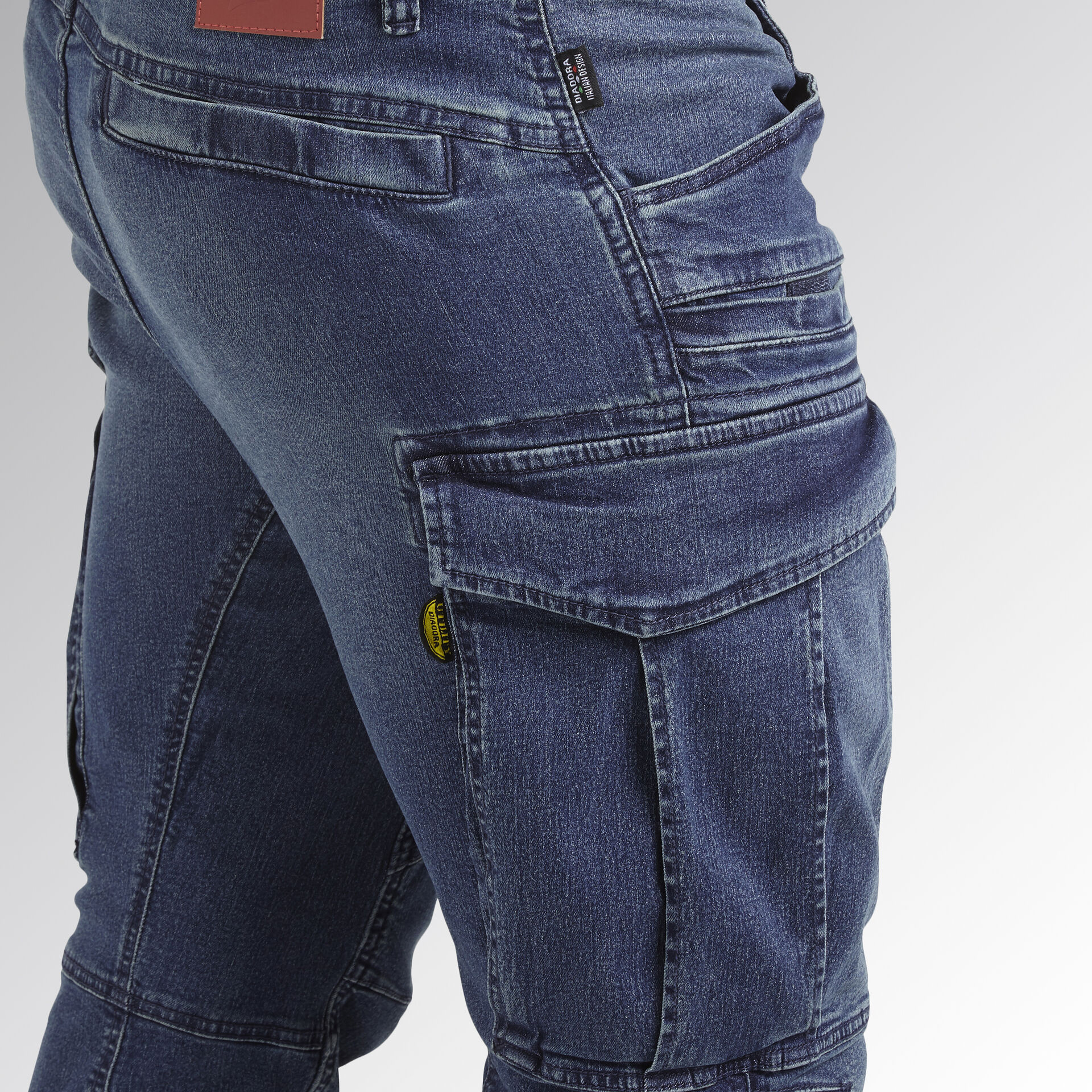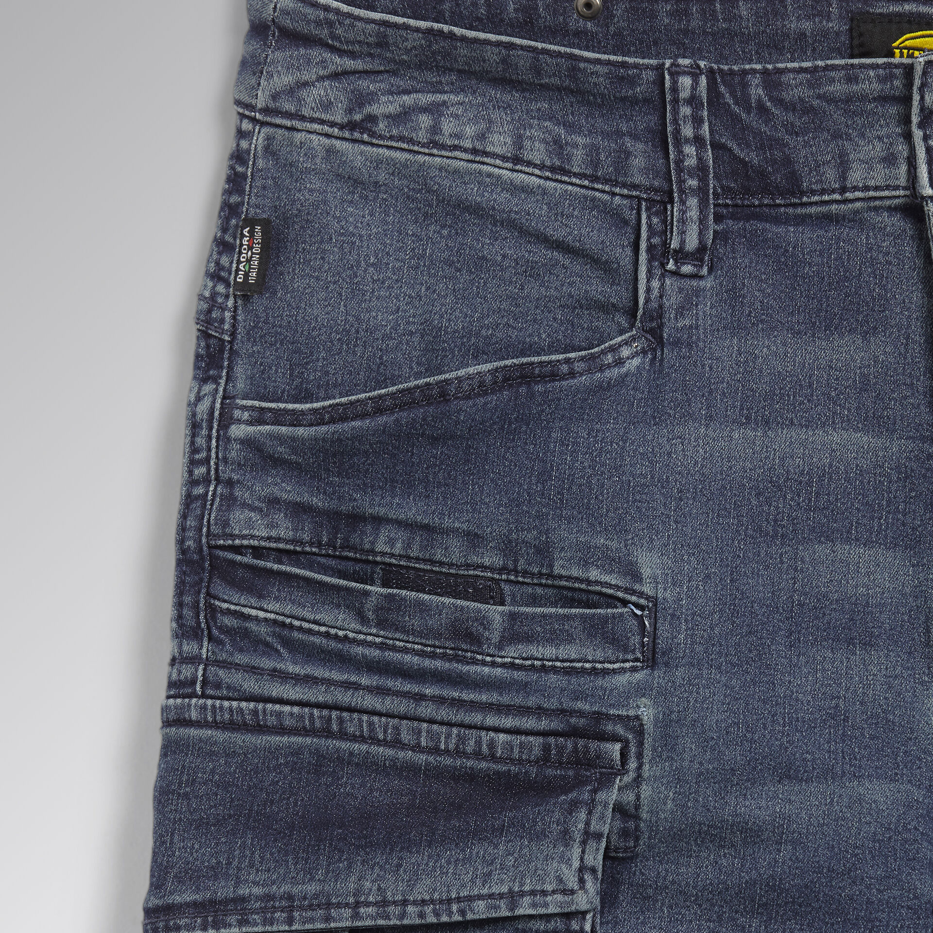 Lekki, elastyczny denim. Obróbka spodni podkreśla detal, typowy dla włoskiego designu jeansów. Trzy duże kieszenie boczne i dwie tylne kieszenie zapinane na rzep. Dopasowany krój o nowoczesnym kroju. Fałdy na kolanach dla lepszej ergonomii. Materiał: Denim 79% Bawełna 20% Poliester 1% Elastan