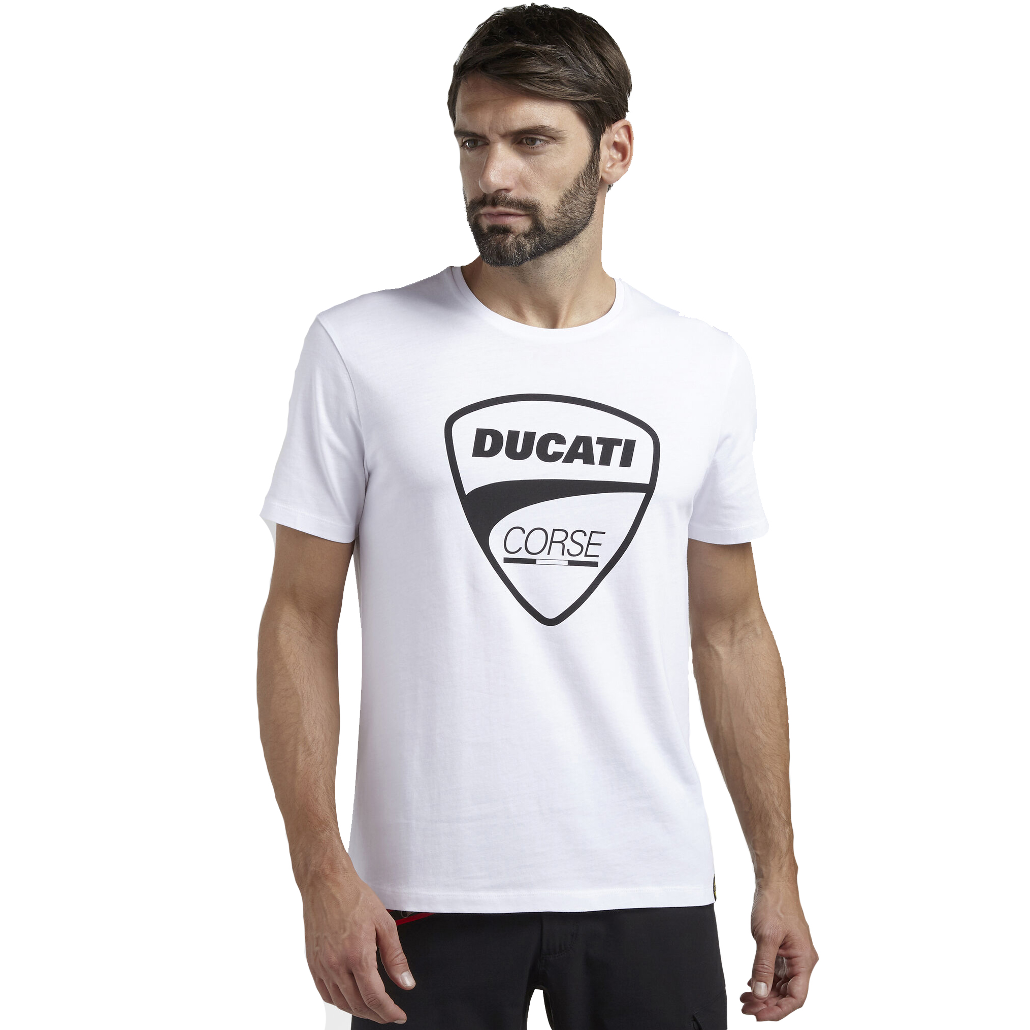 T-shirt z krótkim rękawem i logo DUCATI CORSE. Materiał jerseyowy: 100% bawełna, gramatura 150 g/m2.