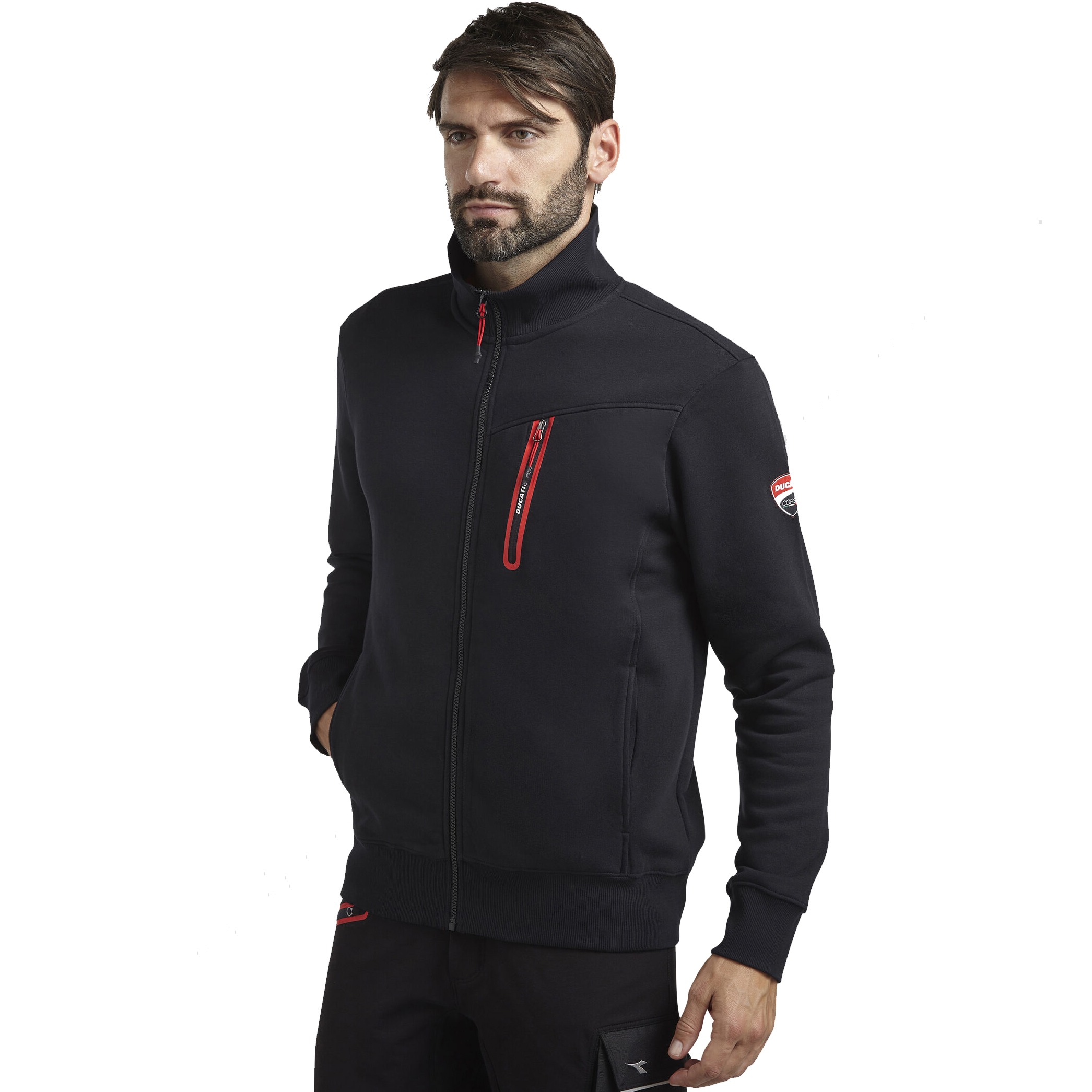 Bluza DUCATI z czesanym wnętrzem. Zamek błyskawiczny z przodu z kontrastowym ściągaczem i podklejony termicznie zamek na klatce piersiowej z detalami DUCATI CORSE. Ergonomiczny krój, regularny krój Materiały: Polar szczotkowany: 80% bawełna, 20% poliester, 280 g/m2.