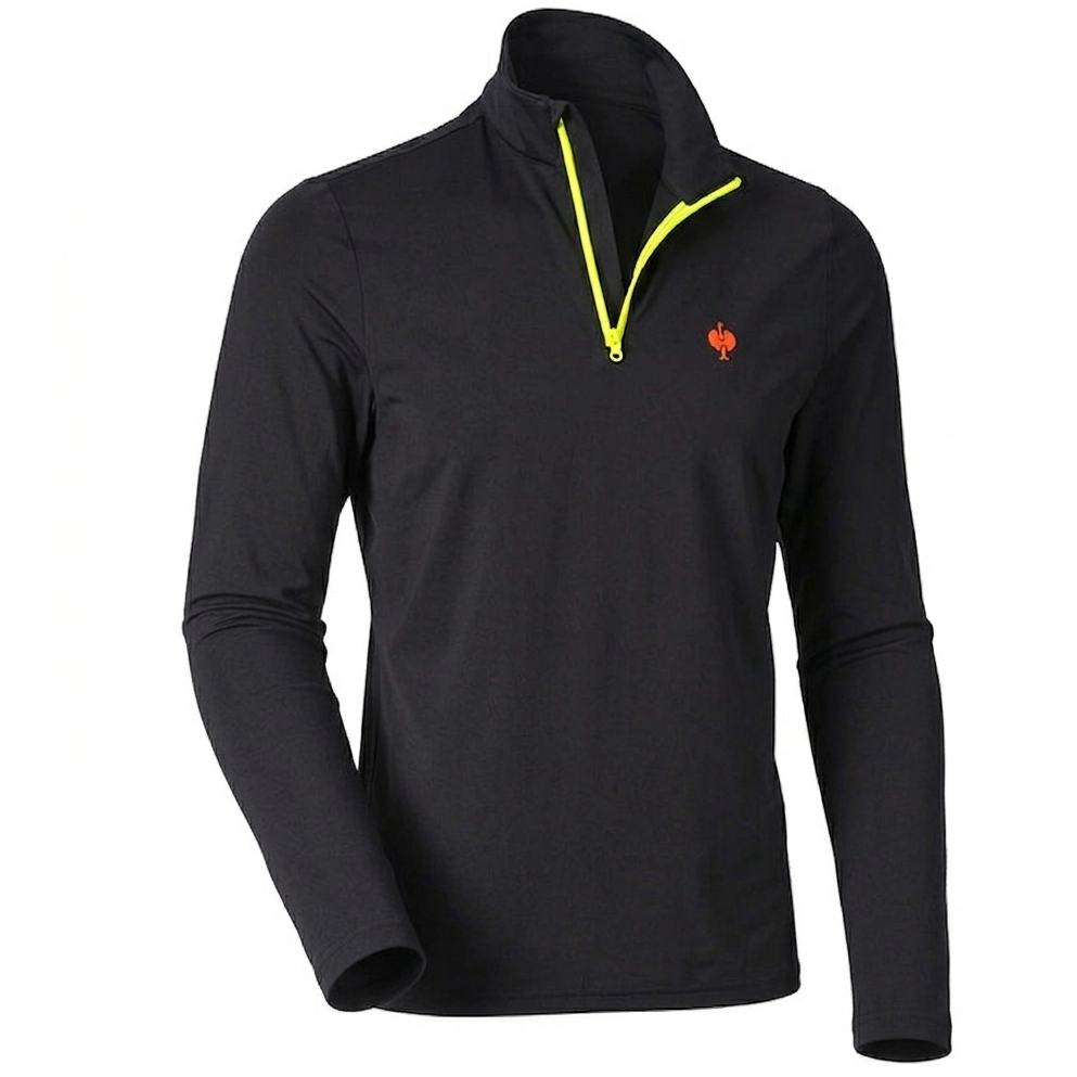 Funkcyjna koszulka robocza z długim rękawem w czarnym kolorze to idealny wybór do pracy oraz aktywności outdoorowych w gorących i słonecznych warunkach, gdzie kluczowe znaczenie ma połączenie ochrony, komfortu i swobody ruchów. Lekki i elastyczny materiał doskonale dopasowuje się do ciała i zapewnia maksymalną elastyczność podczas ruchu. Wysokiej jakości włókna funkcyjne skutecznie odprowadzają wilgoć, szybko schną i zapewniają odpowiednią oddychalność, co gwarantuje komfort nawet przy intensywnym wysiłku. Materiał daje przyjemny efekt chłodzenia, który docenisz szczególnie podczas pracy w pełnym słońcu. Zintegrowana ochrona UV 50+ skutecznie chroni przed szkodliwym promieniowaniem słonecznym na całej powierzchni od kołnierza po rękawy. Praktyczny kołnierz ze stójką i zamkiem błyskawicznym z ochroną podbródka zwiększa komfort noszenia i umożliwia regulację wentylacji. Dopasowany krój slim fit podkreśla sportowy charakter i nowoczesny wygląd. Skład materiału 90% poliester i 10% elastan o gramaturze około 135 g/m2 zapewnia idealną równowagę między lekkością, trwałością i wygodą. Czarny kolor nadaje koszulce uniwersalny i ponadczasowy wygląd, dzięki czemu sprawdzi się zarówno w pracy, jak i w czasie wolnym.