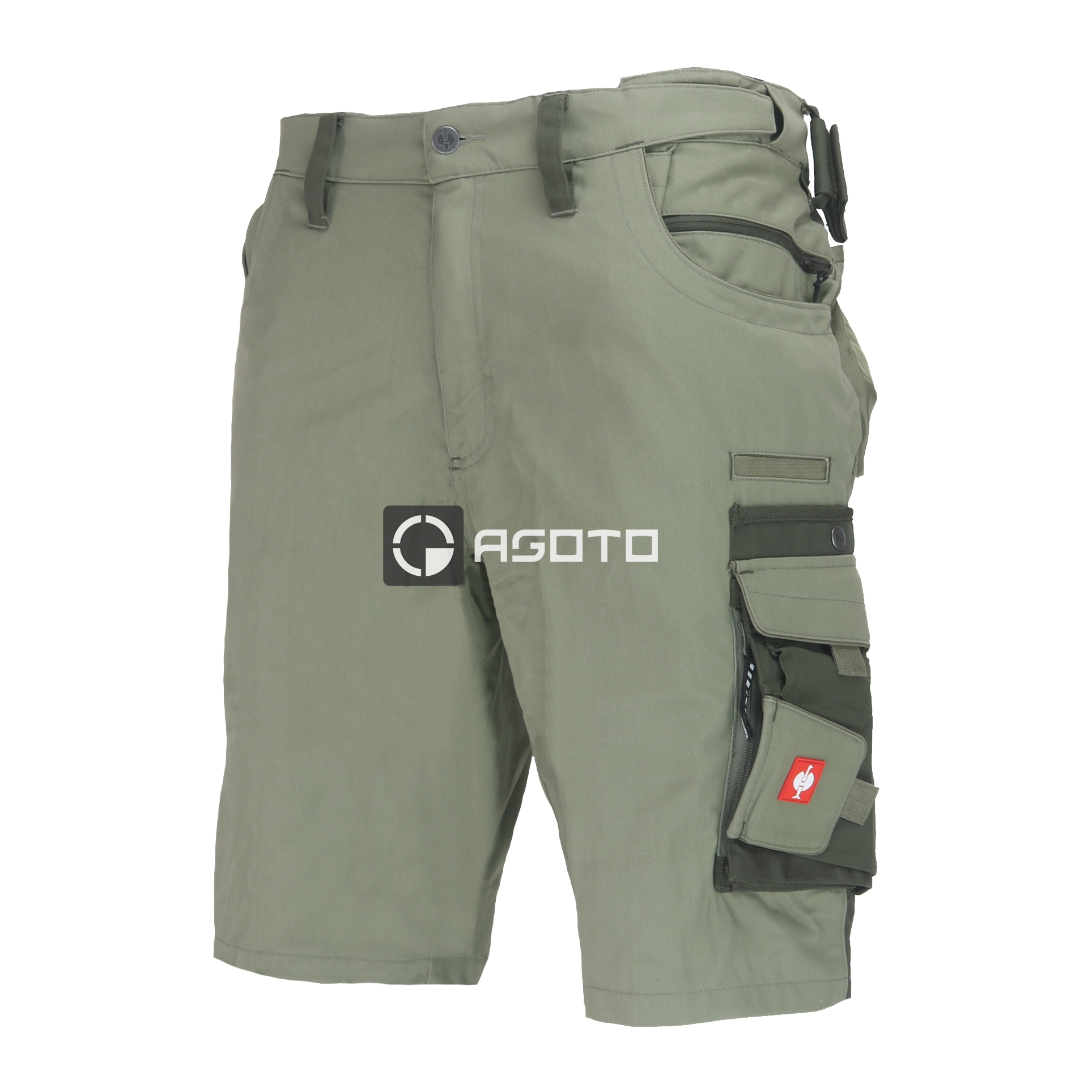 Engelbert Strauss E.S. Motion to nowoczesne i bardzo praktyczne krótkie spodnie robocze. Mają głębokie otwory na kieszenie, pochyłą kieszeń na telefon komórkowy, szerokie pętle na pasie z suchym zamkiem dla dodatkowej torby narzędziowej. Pas Flexbelt® jest regulowany na szerokość i ma lekko szorstką wewnętrzną strukturę. Wygodne siedzenie dzięki konstrukcji tylnych kieszeni z wkładkami z materiału CORDURA®. Funkcjonalna kieszeń na składany miarkownik, wieloczęściowe kieszenie na udach. Materiał zewnętrzny: 65% poliester / 35% bawełna (około 245 g/m2).