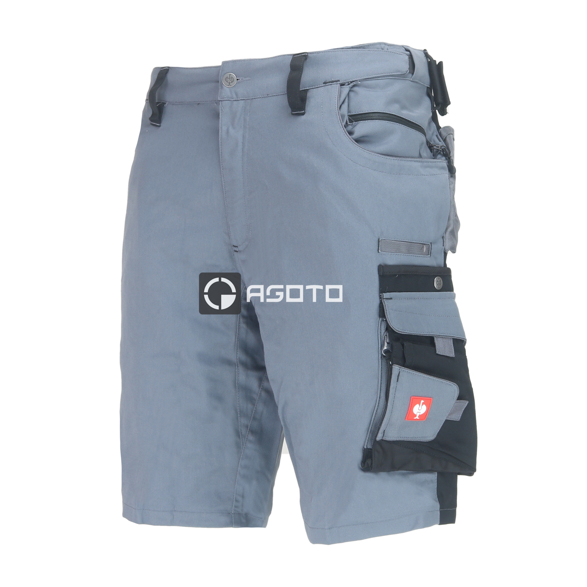 Engelbert Strauss E.S. Motion to nowoczesne i bardzo praktyczne krótkie spodnie robocze. Mają głębokie otwory na kieszenie, pochyłą kieszeń na telefon komórkowy, szerokie pętle na pasie z suchym zamkiem dla dodatkowej torby narzędziowej. Pas Flexbelt® jest regulowany na szerokość i ma lekko szorstką wewnętrzną strukturę. Wygodne siedzenie dzięki konstrukcji tylnych kieszeni z wkładkami z materiału CORDURA®. Funkcjonalna kieszeń na składany miarkownik, wieloczęściowe kieszenie na udach. Materiał zewnętrzny: 65% poliester / 35% bawełna (około 245 g/m2).