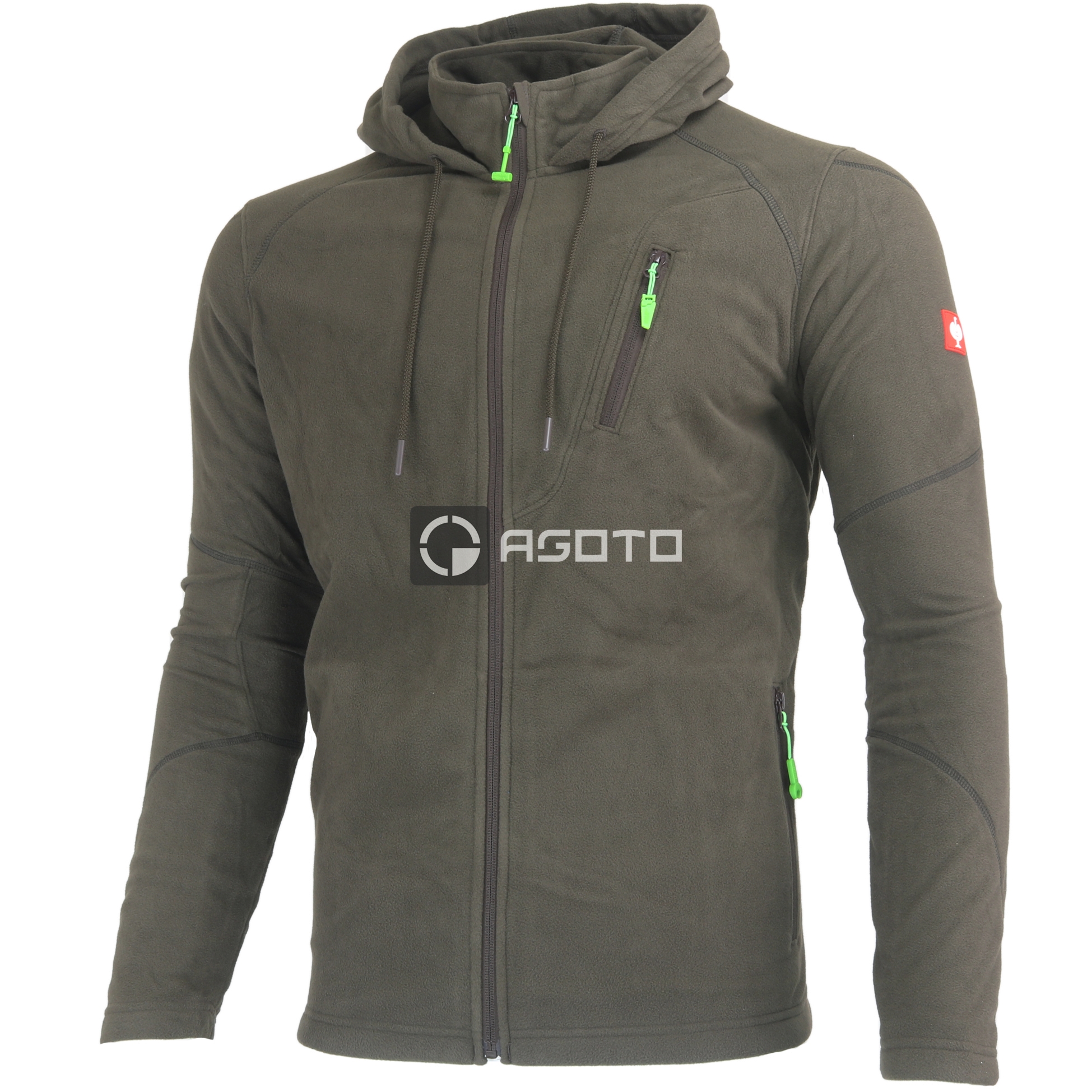 Lekka, ciepła i oddychająca kurtka z kapturem z mikropolaru Engelbert Strauss. 2 wsuwane kieszenie zapinane na zamek, 2 duże kieszenie wewnętrzne. Materiał 100% poliester