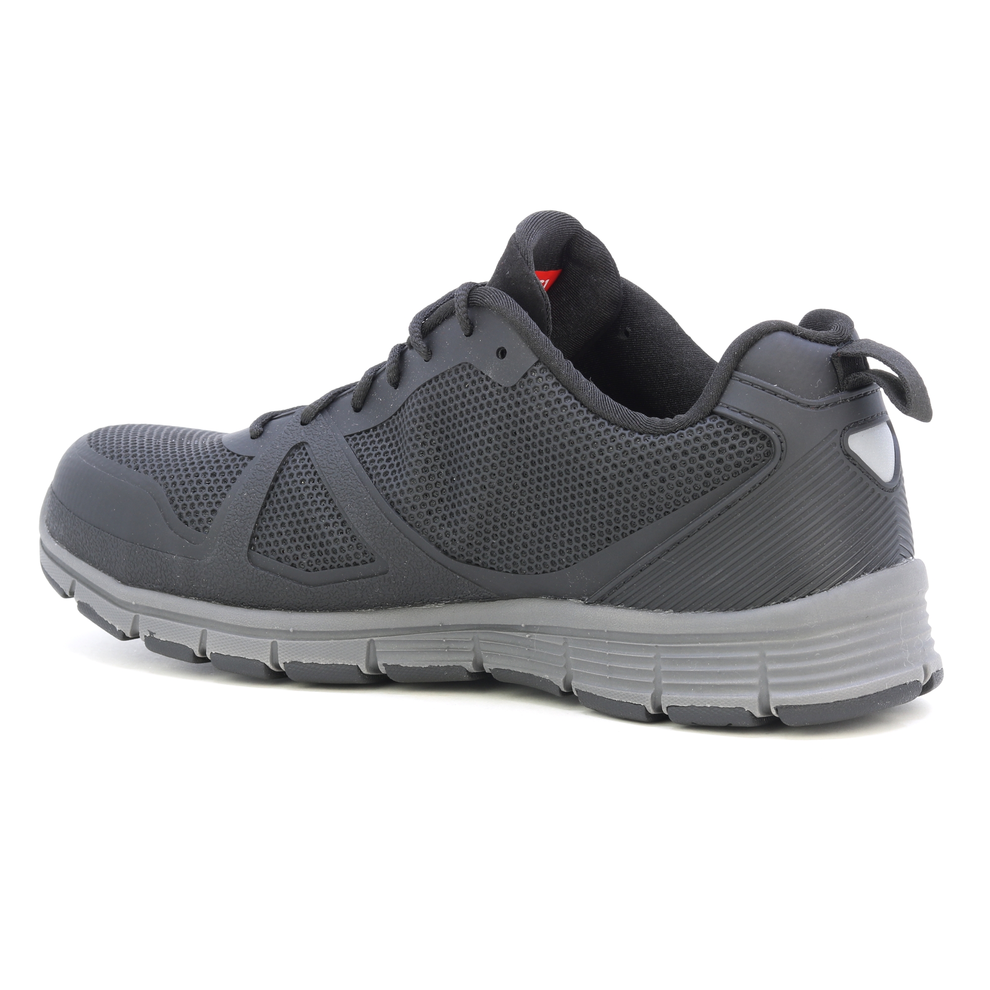 Engelbert Strauss Romulus S1 ze stalową lufą, oddychający i bardzo lekki o prostym wyglądzie. Materiał wierzchni wykonany z wysoce oddychającego, wytrzymałego materiału PU/Mesh, tekstylna wyściółka wewnętrzna, wyjmowana i pełnopowierzchniowa wkładka idealna dla osób noszących wkładki do butów, antypoślizgowa podeszwa z gumy/pylonu zgodnie z SRA, antystatyczna, odporna na paliwo i wysoką temperaturę do ok. 130°C