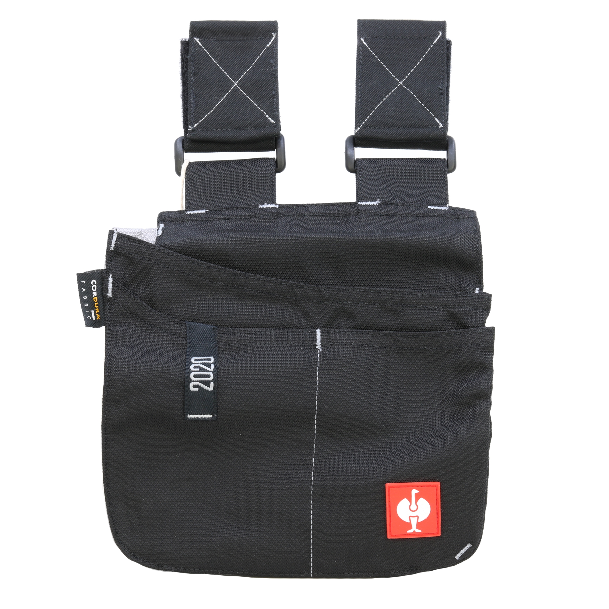 Elastyczna rozbudowa kieszeni z funkcją odwracania w stylu e.s.motion 2020, może być używana z obu stron, dla osób praworęcznych i leworęcznych, łącznie 6 przegródek: jedna duża komora główna i 2 małe przegrody z każdej strony, 2 oczka na rzepy do mocowania do paska spodni ruchowych również do bezpośredniego mocowania na rzepy, wymiary kieszeni (szer. x wys.): ok. 190 x 200 mm