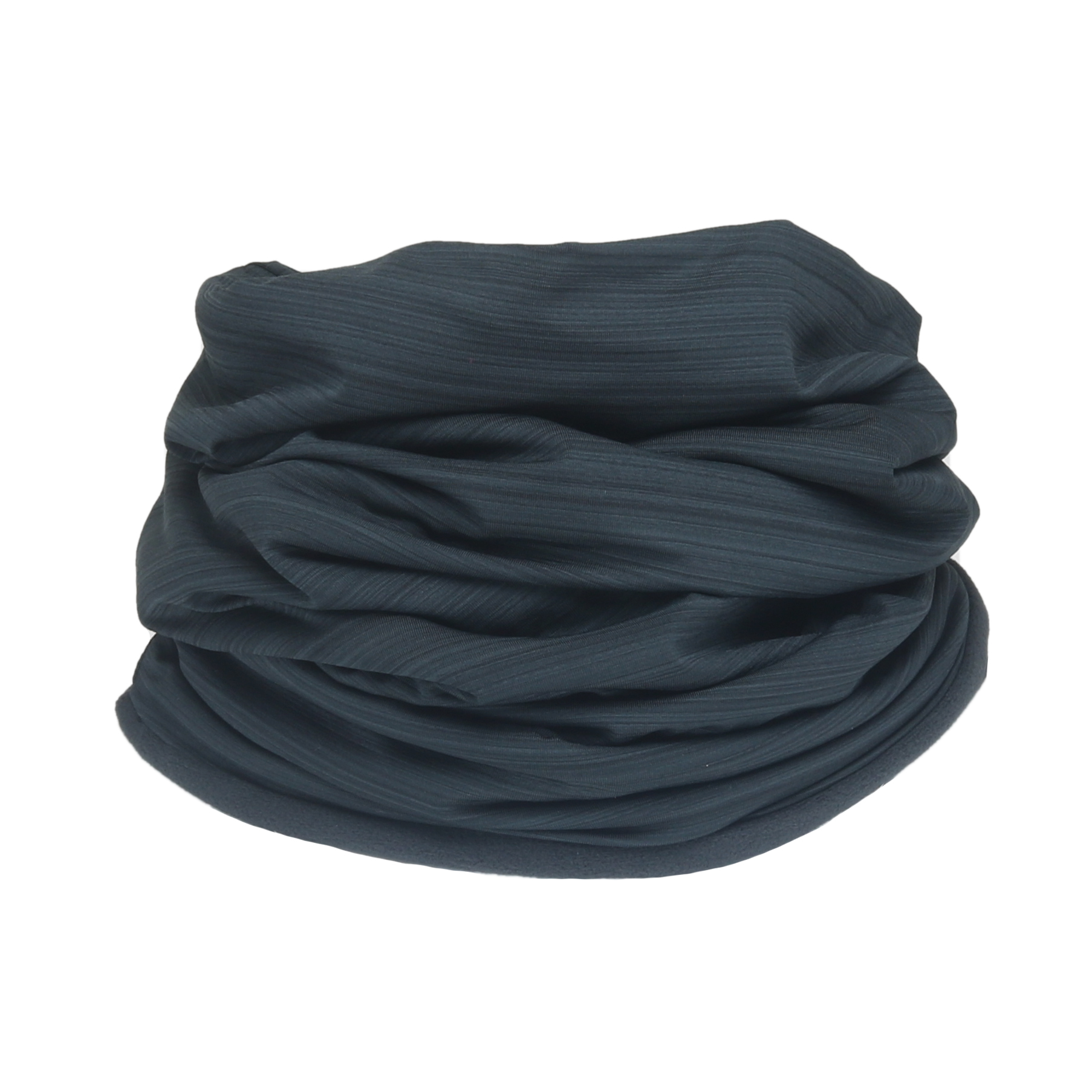 Wielofunkcyjny szalik w formie tuby i uniwersalny (jako szal, ochrona twarzy, czapka, opaska, szalik piracki. Dwustronna funkcja - gładka tkanina zewnętrzna w subtelne prążki lub miękki polar w jednym kolorze, oddychający i elastyczny. Materiał: 85% poliester / 15% elastan (ok. 160 g/m2), podszewka 100% poliester.