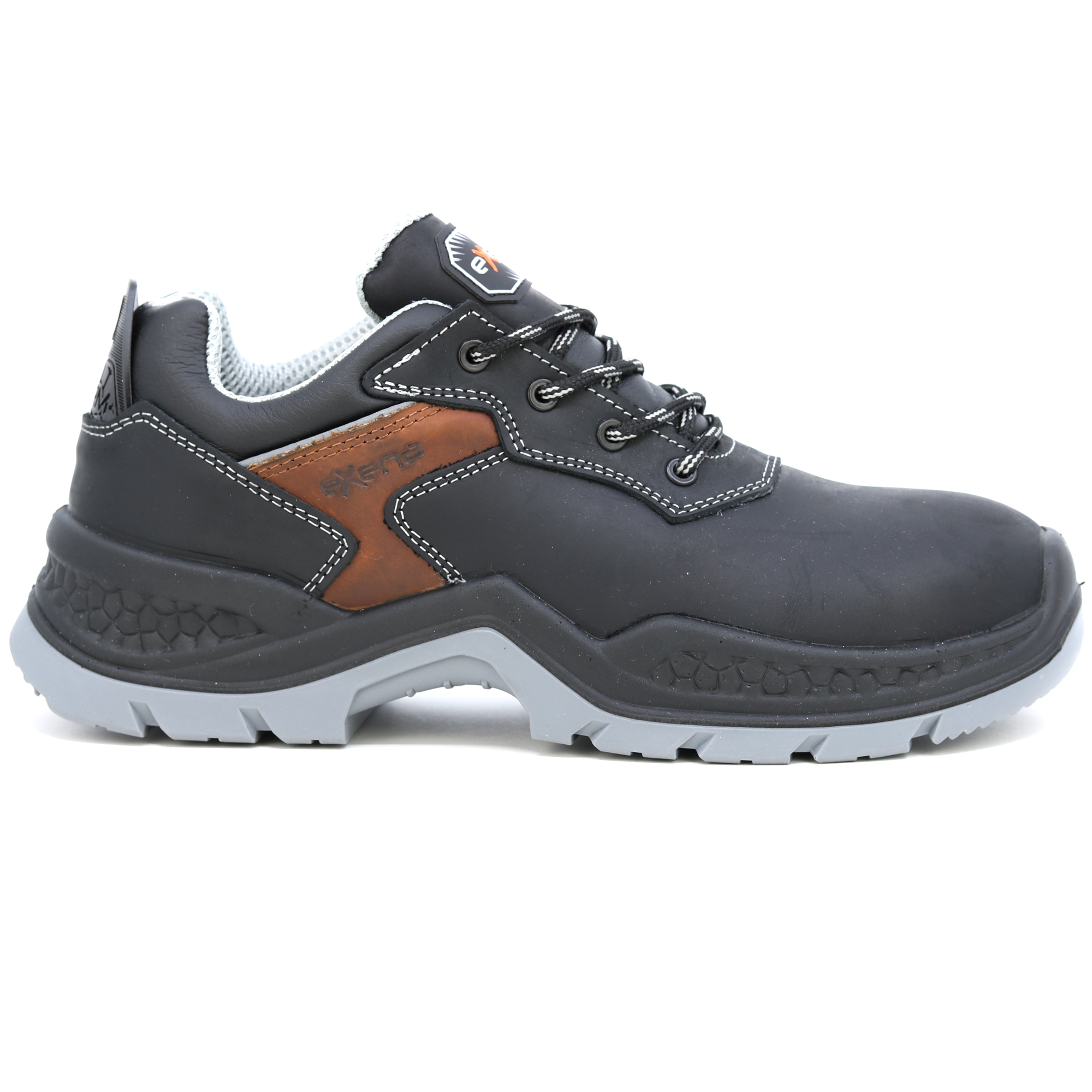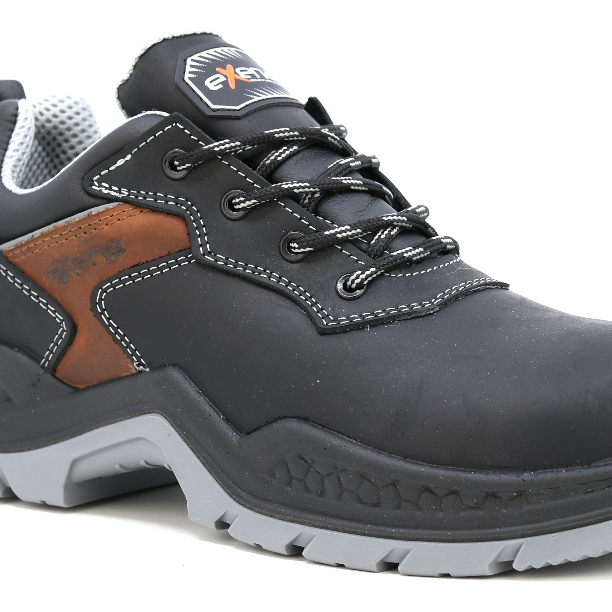 Skórzane buty robocze włoskiej marki Exena ze stopniem ochrony S3 zostały zaprojektowane tak, aby spełniać najbardziej rygorystyczne wymagania stawiane butom roboczym. Czubek buta zawiera kompozytowy podnosek z wkładką z kevlaru dla skutecznej ochrony przed uderzeniami mechanicznymi. Zaletą ciężaru kompozytowego jest właściwość, która zapobiega przegrzewaniu się w miesiącach letnich i jednocześnie prowadzi do zachowania komfortu termicznego w chłodne dni. Cholewka buta została wykonana z wysokiej jakości skóry licowej. Wnętrze butów zostało wyposażone w przewiewny materiał, który umożliwia stopie swobodne oddychanie przy dużym obciążeniu pracą. Podeszwa wykonana z antystatycznego i olejoodpornego materiału. Buty robocze Exena zachwycą klientów, którzy w swoich butach poszukują jakości i wygody. EN ISO 20345 - OBUWIE BEZPIECZNE