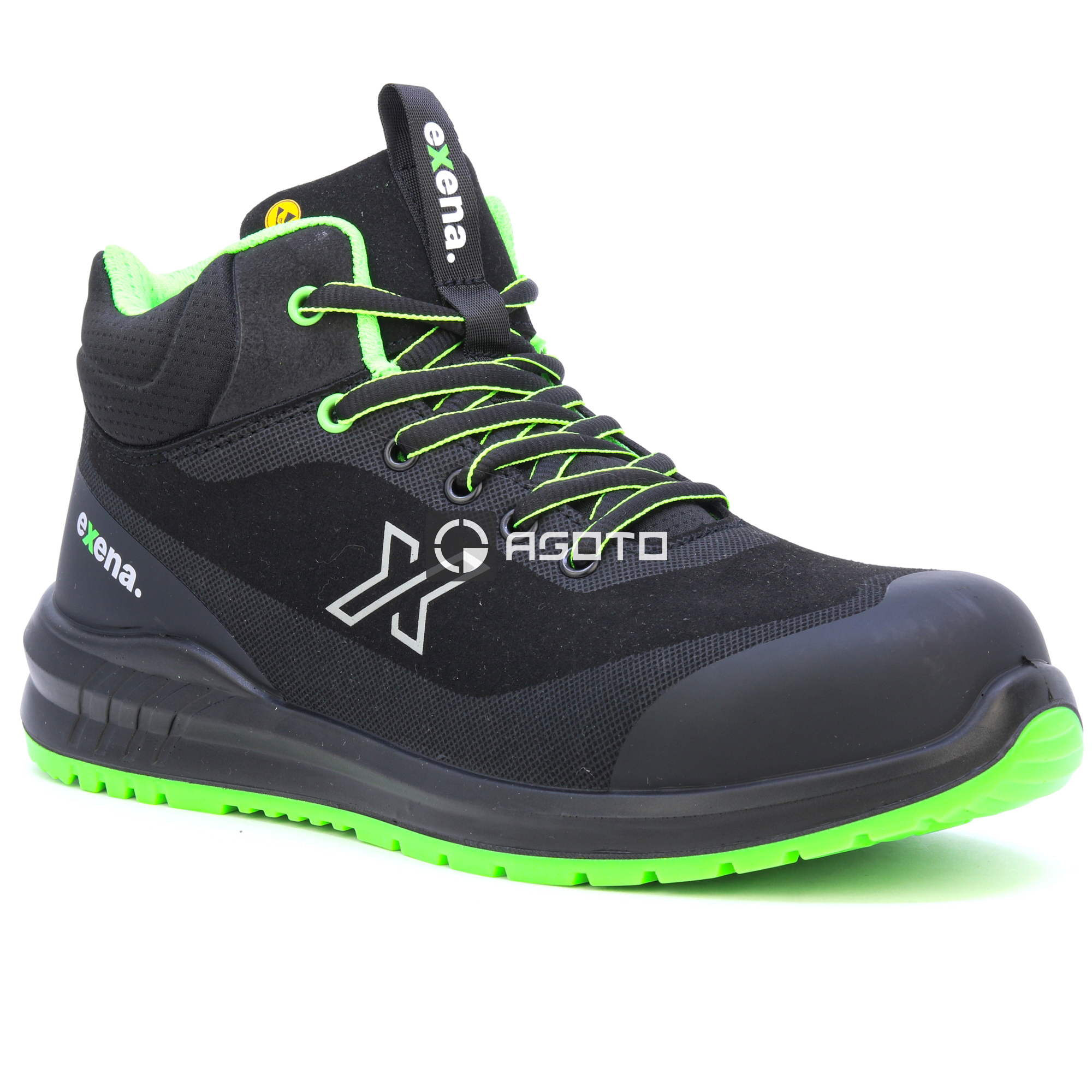 Buty robocze Exena Draco S3 S FO SR ESD wykonane są z mikronubuku z powłoką odporną na ścieranie i wyposażone w podnosek z włókna szklanego oraz niemetalową wkładkę antyprzebiciową, które zapewniają skuteczną ochronę w miejscu pracy. Tekstylna, odporna na ścieranie wyściółka gwarantuje komfort i przewiewność przez cały dzień, a wkładka Rebound zapewnia optymalną amortyzację. Podeszwa z podwójnego poliuretanu jest antypoślizgowa i antystatyczna, co zwiększa bezpieczeństwo użytkownika na różnych nawierzchniach. Zapięcie za pomocą perforacji i niemetalowych zatrzasków zapewnia solidne i trwałe dopasowanie bez użycia metalu. Dzięki technologii ESD buty Exena Draco są idealne do pracy w logistyce, instalacjach, elektronice i przemyśle motoryzacyjnym.