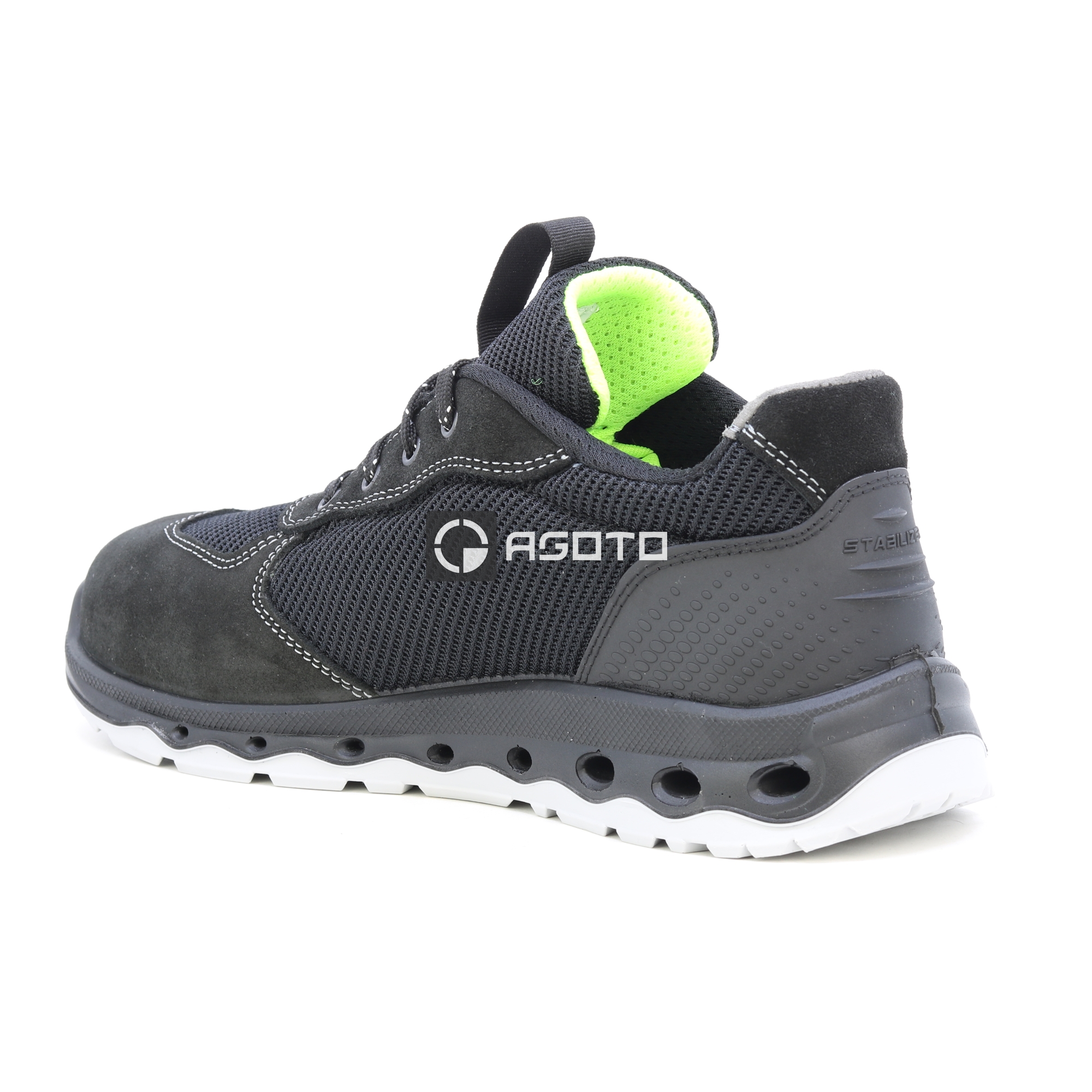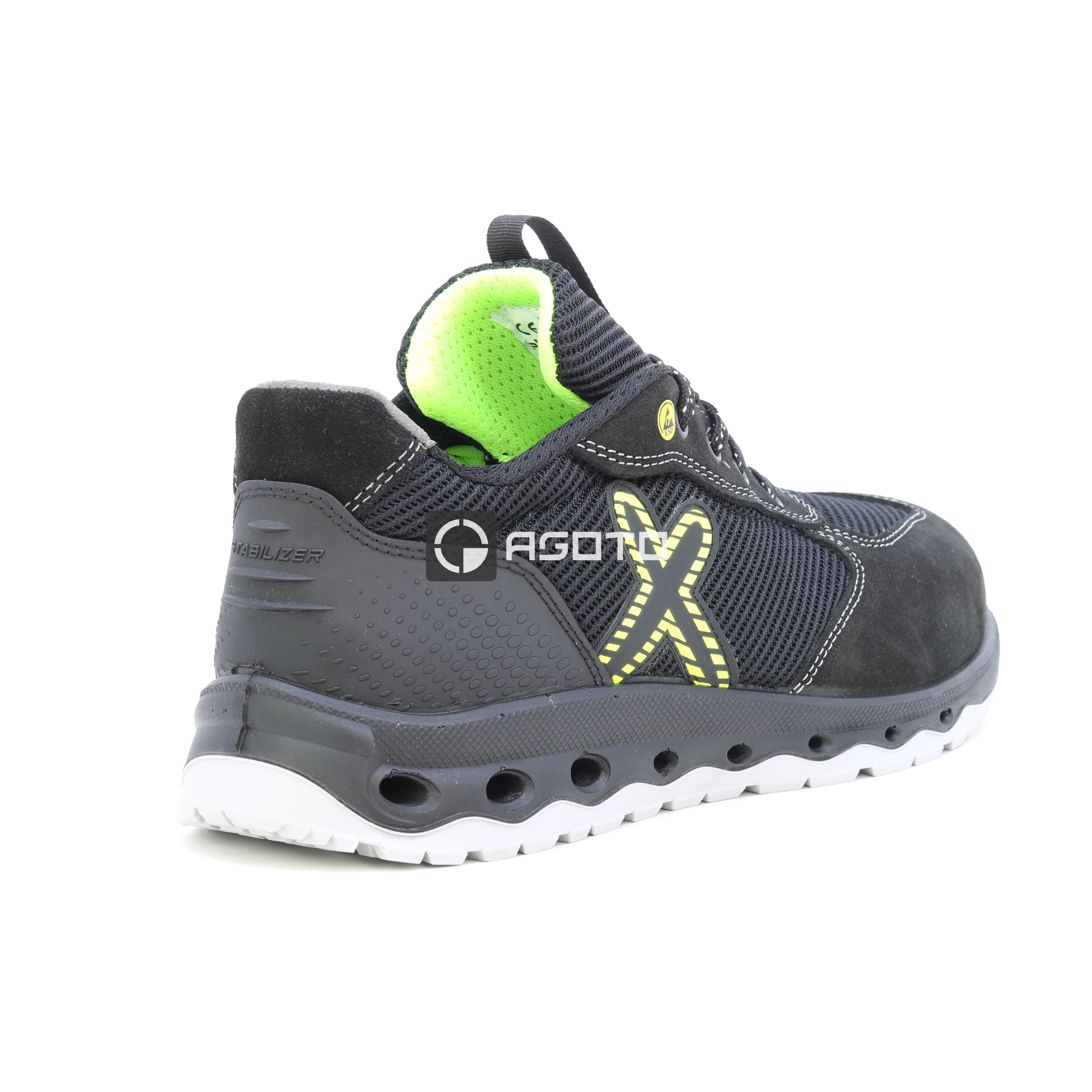Antystatyczny niski but Stardust S1P ESD SRC z oddychającą cholewką, odporną na ścieranie, oddychającą wyściółką z syntetycznego materiału, aluminiowy podnosek odporny na zgniatanie 200J, but rozpraszający ESD, odporny na olej mineralny. Podeszwa 2D PU, antypoślizgowa, przeciwwstrząsowa, oddychająca, antybakteryjna i lekka wkładka ENERGY wykonana z miękkiego wielowarstwowego poliuretanu, charakteryzująca się bąbelkiem w obszarze pięty zapewniającym ciągły zwrot energii. Zdejmowane, anatomiczne i antystatyczne. Cut Natural Comfort 11 Mondopoint. But Stardust jest częścią serii „Gravity 0 – Infinite Energy Return”. TECHNOLOGIA: TOP MESH: Ultra trwała, oddychająca podszewka. Szeroki aluminiowy podnosek, ultralekki i odporny na uderzenia powyżej 200 J. SAFEFLEX CONDUCTIVE: Syntetyczna podeszwa środkowa z zabezpieczeniem przed perforacją do obuwia przewodzącego odpornego na siłę do 1100 N. 2D AIR-HOLE: Podeszwa STABILIZER: Dzięki sztywnej strukturze TPU chroni piętę przed przypadkowymi uderzeniami, umożliwiając stopie lepszą kontrolę nawet podczas gwałtownych ruchów bocznych oraz utrzymując kostkę stabilnie i bezpiecznie.