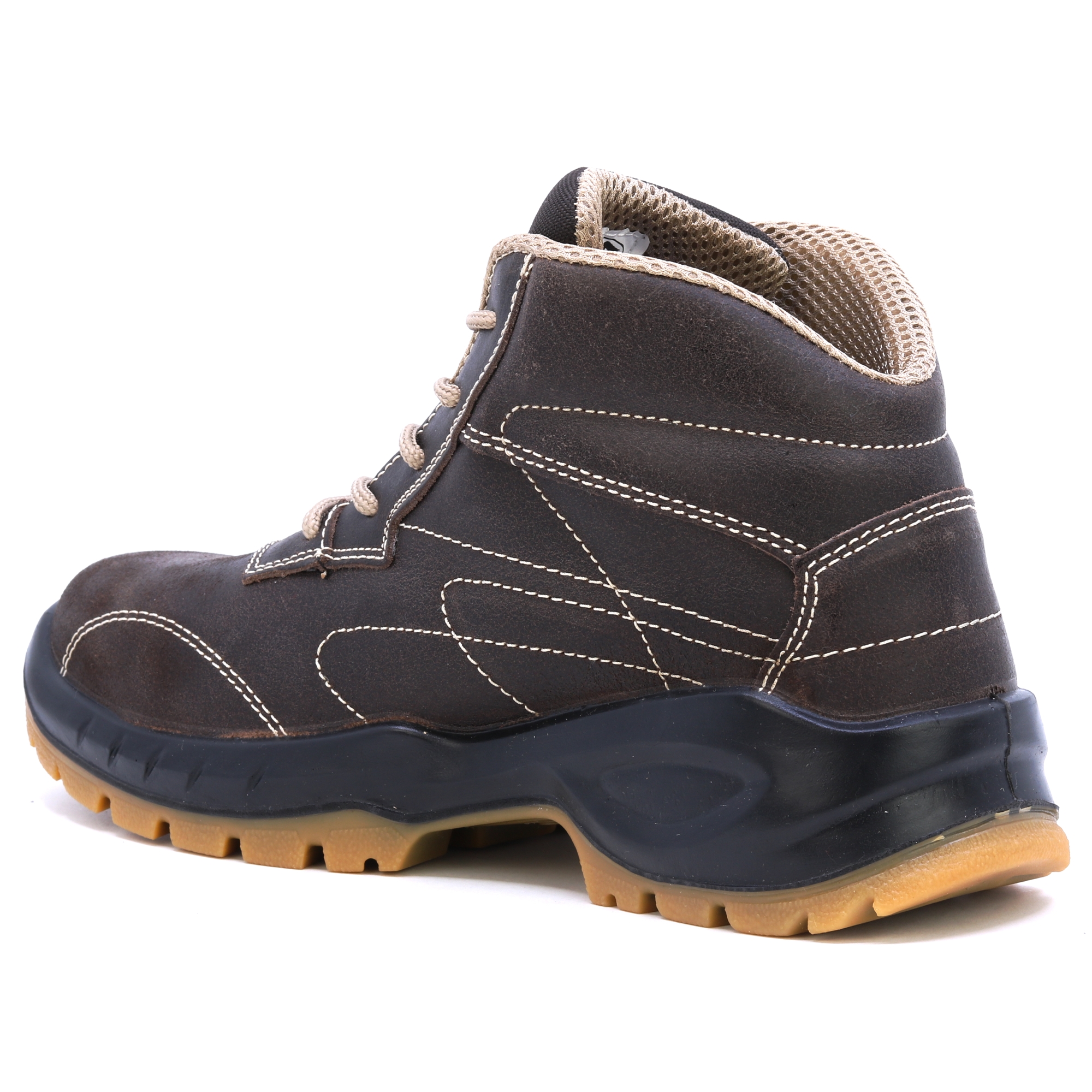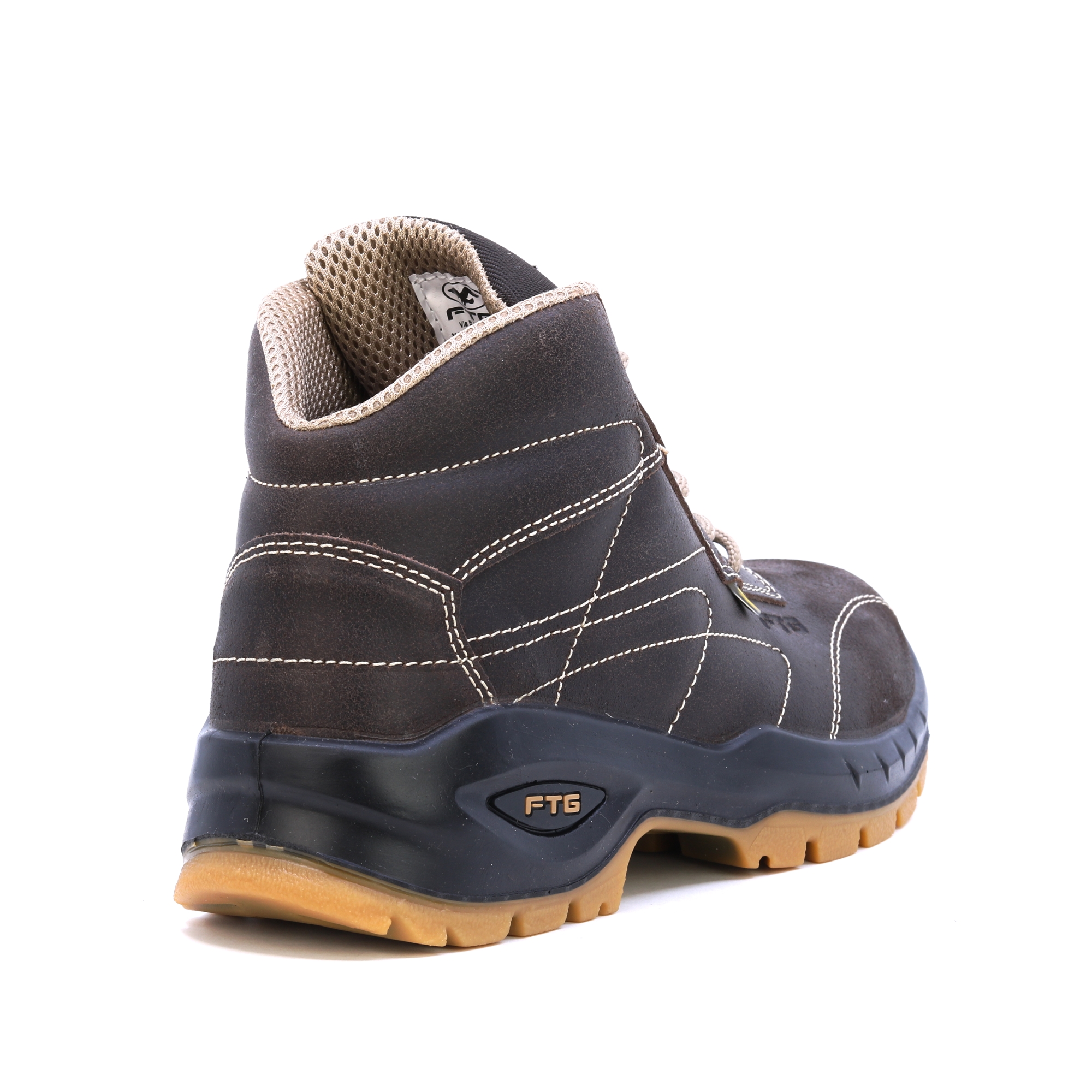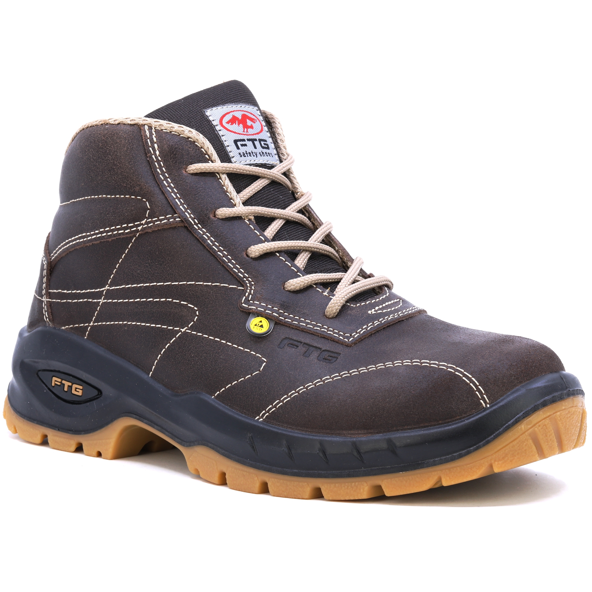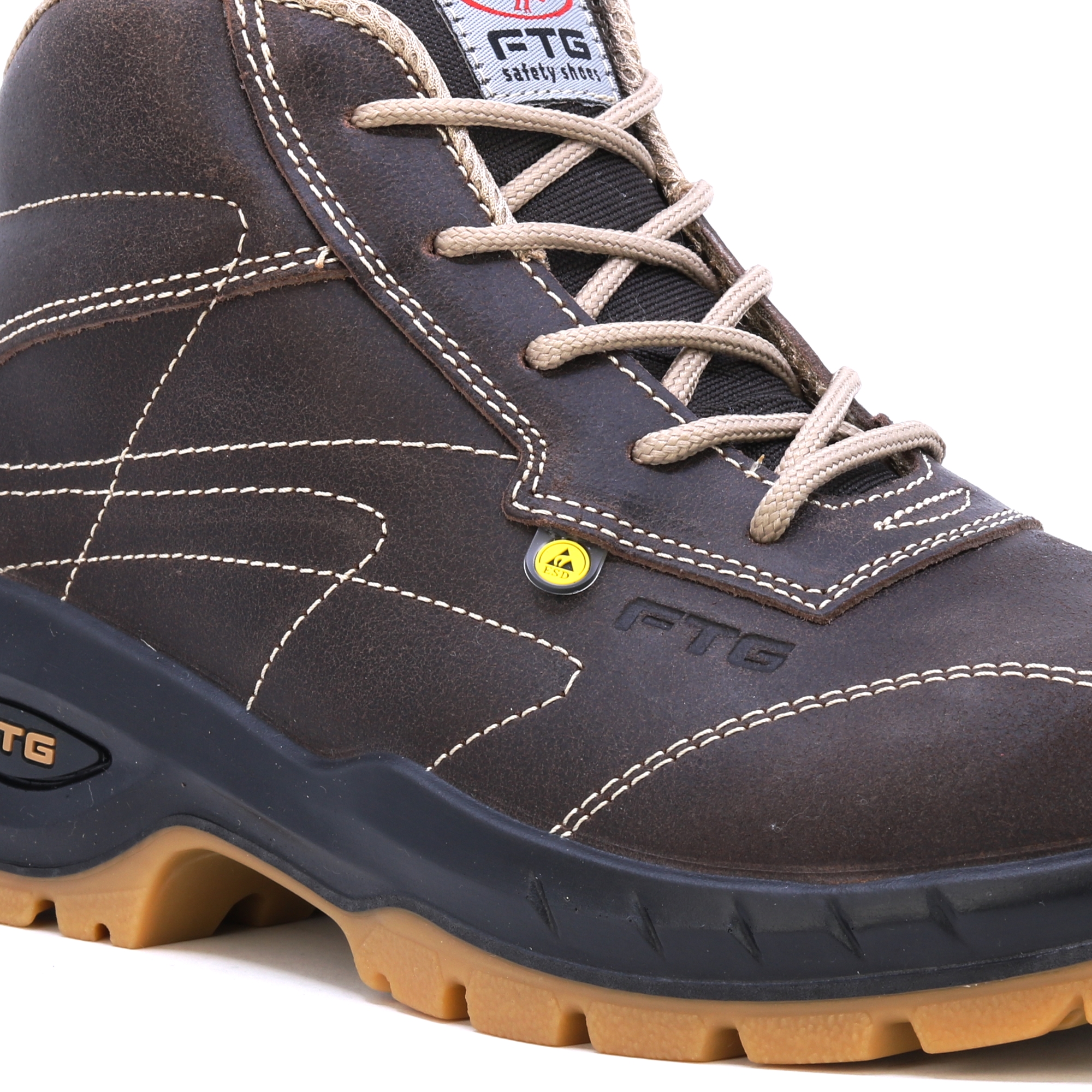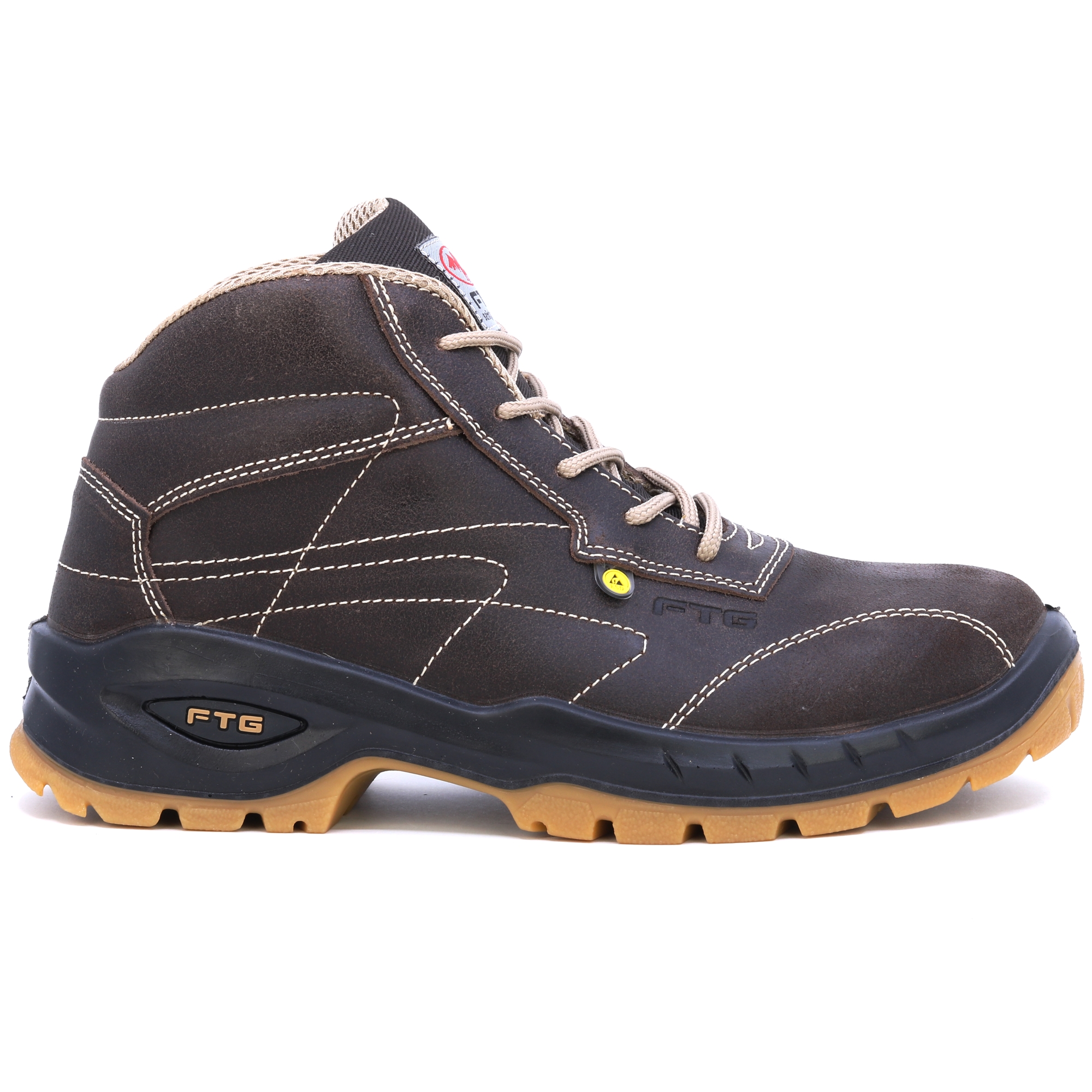 FTG Convair 2 nubuk brązowe pikowane półbuty ochronne S3. Wkładki HIGH-TEX, wyściółka o strukturze plastra miodu dla lepszego odprowadzania potu, SOLE Przezroczysty poliuretan o podwójnej gęstości. Świetny wybór na wymagające warunki.