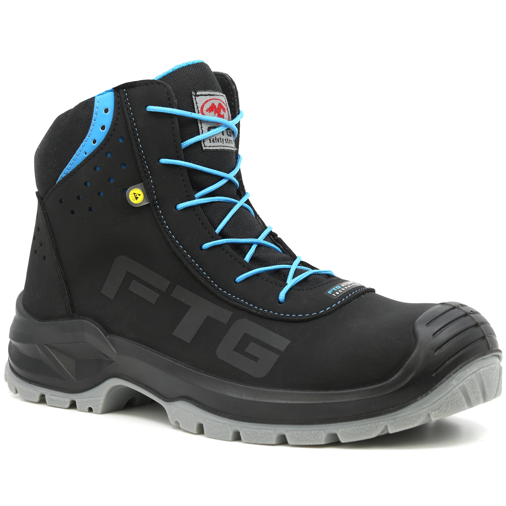 Najlepszy artysta z przejrzystym projektem do wymagających zadań. FTG Firebrand S3 z niezawierającą metalu ochronną częścią palcową i wkładką chroniącą przed przebiciami to idealne obuwie ochronne dla budownictwa, rzemiosła i przemysłu. Cholewka wykonana ze skóry nubukowej jest łatwa do czyszczenia i zapewnia stabilność dzięki kilku szwom. Podeszwa zewnętrzna z TPU z nakładką została celowo zaprojektowana dla serii Professional Line i składa się z różnych elementów profilowanych zoptymalizowanych do danego celu. Podeszwa jest odporna na ścieranie i ma lepszą elastyczność, lepszą przyczepność do podłoża i optymalny profil wytłaczania płynów gwarantują pewny chwyt. Amortyzator w obszarze pięty pochłania energię. Wkładka FTG® Memory Foam zapewnia dodatkowy komfort w bucie ochronnym. Dzięki ciepłu ciała termiczna pianka wkładki dopasowuje się indywidualnie do kształtu stopy. Zapewnia to optymalny rozkład nacisku na całej powierzchni stopy. Idealny na długie dni pracy! Obróbka antystatyczna ESD zapewnia ochronę podczas pracy w operacjach z możliwością wyładowań elektrostatycznych. EN ISO 20345 - OBUWIE BEZPIECZNE
