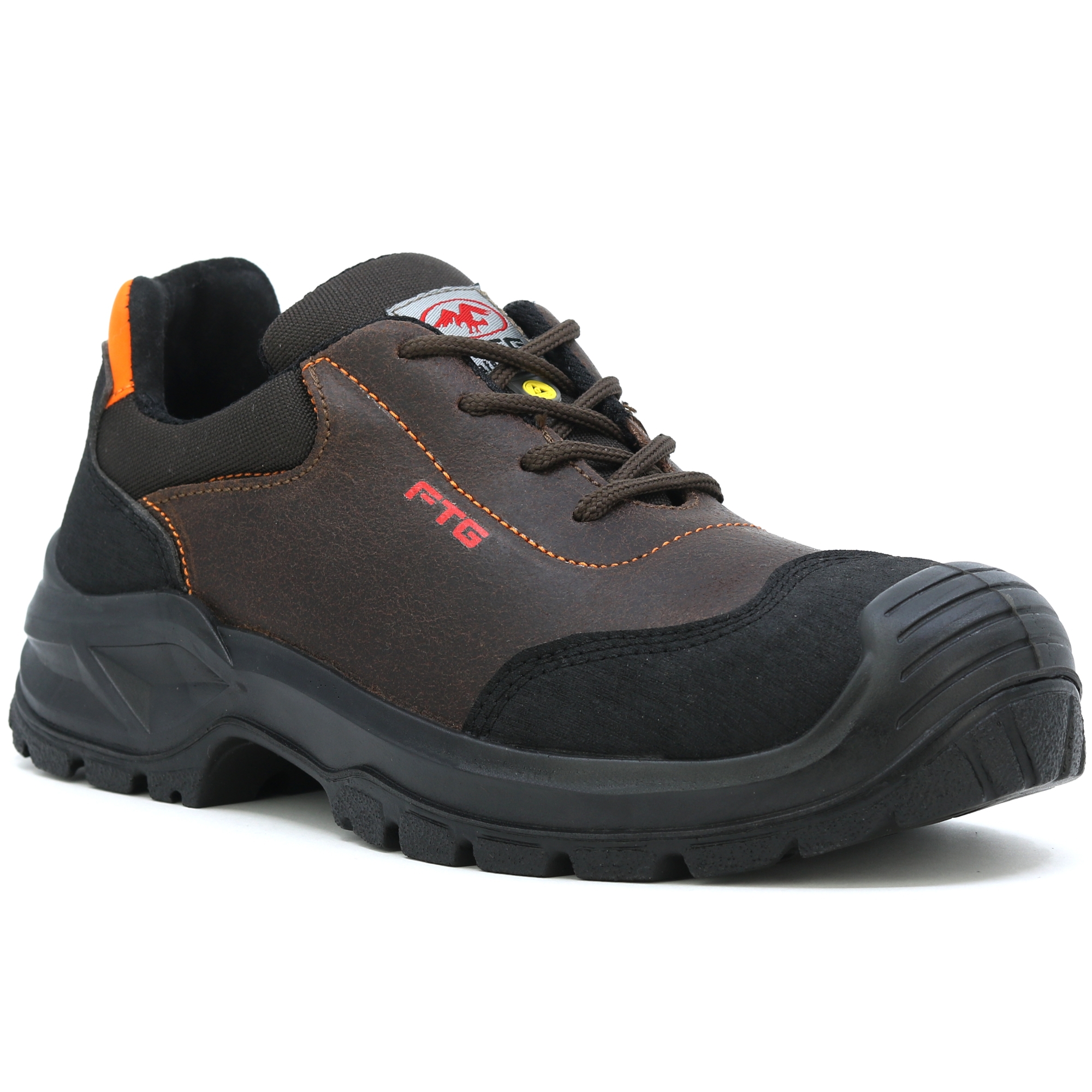 Najlepszy artysta z przejrzystym projektem do wymagających zadań. FTG Meteor S3 z niezawierającą metalu ochronną częścią palcową i wkładką chroniącą przed przebiciami to idealne obuwie ochronne dla budownictwa, rzemiosła i przemysłu. Wierzchnia część wykonana z wodoodpornej skóry Crazy Horse jest łatwa do czyszczenia dzięki kilku szwom. Podeszwa zewnętrzna z TPU z nakładką została celowo zaprojektowana dla serii Professional Line i składa się z różnych elementów profilowanych zoptymalizowanych do danego celu. Podeszwa jest odporna na ścieranie i ma lepszą elastyczność, lepszą przyczepność do podłoża i optymalny profil wytłaczania płynów gwarantują pewny chwyt. Amortyzator w obszarze pięty pochłania energię. Wkładka FTG® Memory Foam zapewnia dodatkowy komfort w bucie ochronnym. Dzięki ciepłu ciała termiczna pianka wkładki dopasowuje się indywidualnie do kształtu stopy. Zapewnia to optymalny rozkład nacisku na całej powierzchni stopy. Idealny na długie dni pracy! Obróbka antystatyczna ESD zapewnia ochronę podczas pracy w operacjach z możliwością wyładowań elektrostatycznych. EN ISO 20345 - OBUWIE BEZPIECZNE