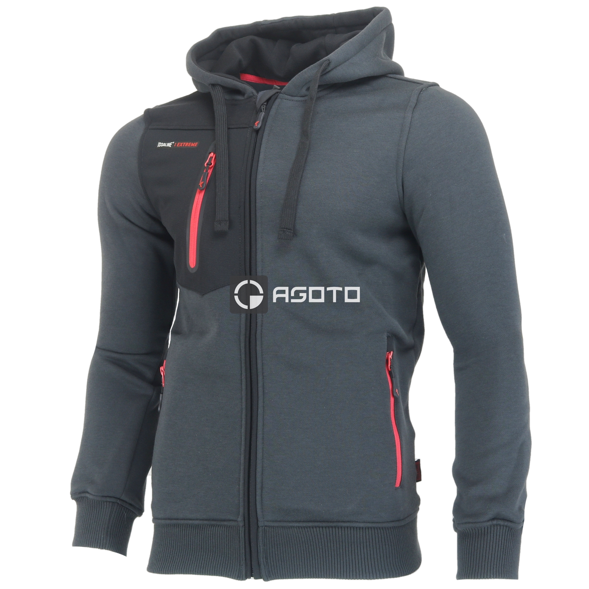 Techniczna bluza z serii Extreme z kapturem, dwiema kieszeniami z przodu, jedną kieszenią na piersi i dwiema dużymi kieszeniami wewnętrznymi. Bluzę można łączyć z produktami z serii Extreme lub z innymi spodniami. Materiał: 65% poliester, 35% bawełna, 280 g/m2