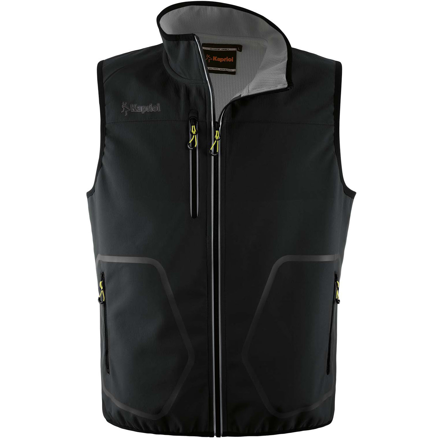 3-warstwowa kamizelka softshell z trzema zewnętrznymi i praktycznymi kieszeniami wewnętrznymi, odblaskowymi wstawkami zwiększającymi widoczność użytkownika. Kamizelka wyposażona jest w membranę, która zapewnia zarówno oddychalność, jak i nieprzepuszczalność. Skład: softshell (100% poliester 50 D)