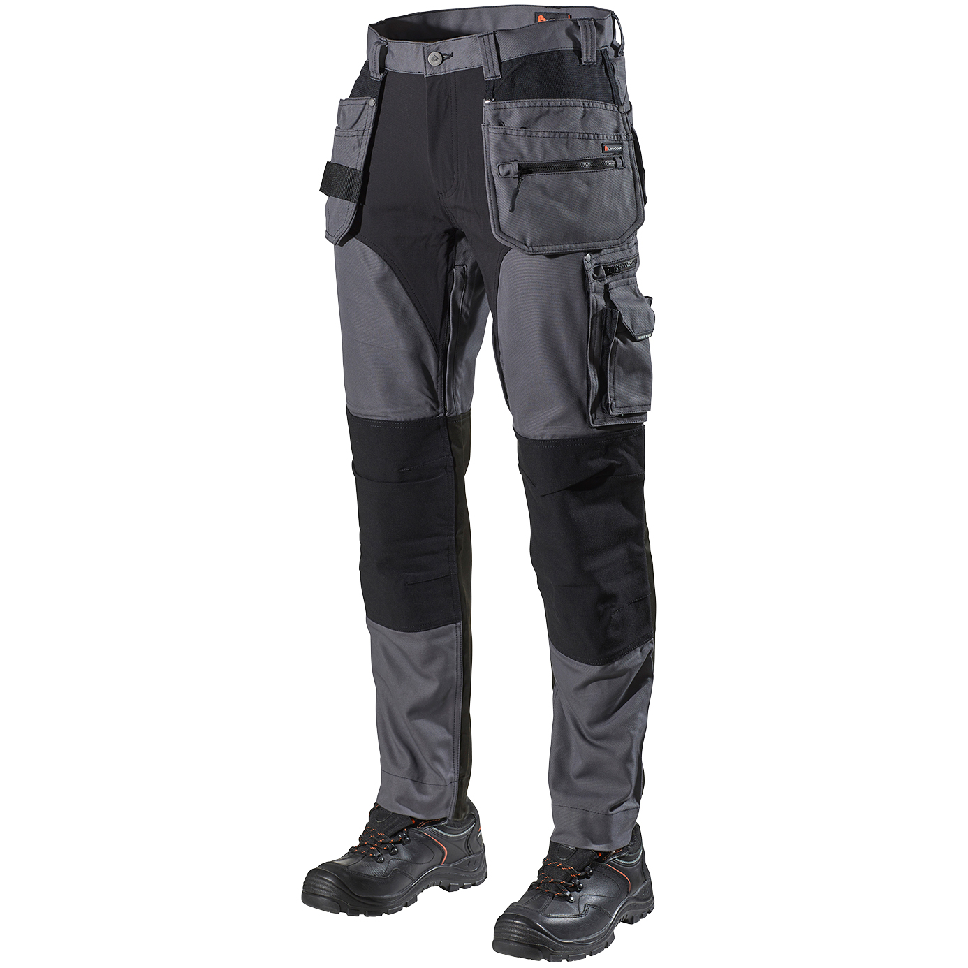 L.Brador Sweden to prestiżowa marka odzieży roboczej, specjalizująca się w produkcji wysokiej jakości i funkcjonalnych produktów do profesjonalnego użytku. Ich szeroka oferta obejmuje odzież dla różnych branż, takich jak budownictwo, przemysł czy rolnictwo, z naciskiem na bezpieczeństwo, wygodę i nowoczesny design. Odzież robocza L.Brador Sweden jest popularnym wyborem wśród profesjonalistów, którzy doceniają ich niezawodność i trwałość, nawet w trudnych warunkach pracy. Klasyczne spodnie robocze z bawełny/poliestru z elastycznymi panelami dla zwiększonego komfortu. Tkanina typu polo-panama z bawełny/poliestru dla maksymalnej trwałości. Elastyczny materiał z przodu, na kolanach i na całej łydce zapewnia doskonałą mobilność, wygodę i oddychalność. Preshaped kolana dla lepszego dopasowania i elastyczności. Wzmocnione kieszenie na wkładki na kolana ze stretchowym kevlarem zapewniającym dobre właściwości ruchowe i wytrzymałość. N lekko zwężane nogawki, aby lepiej trzymały się na miejscu. Możliwość przedłużenia nogawek o 5 cm. Precyzyjny krój, sylwetka i pas sprawiają, że spodnie pozostają na miejscu, nawet podczas długich zmian. Wzmocnione kieszenie wieszakowe z większą pojemnością. Wentylacja na wewnętrznej stronie uda, regulowana za pomocą zamka błyskawicznego, wyścielana materiałem siatkowym, utrzymującym użytkownika w chłodzie. Lewa kieszeń na nogawce z prawidłowo ustawioną kieszenią na telefon z magnetycznym zapięciem, zapewniającą ochronę i pewne przechowywanie telefonu. Kieszenie i uchwyty: dwie wieszakowe kieszenie, cztery przednie kieszenie, dwie tylne kieszenie. Kieszeń na wkładki na kolana w dwóch wysokościach, kieszeń na zginany miarkownik, kieszeń na nogawce z zamkiem błyskawicznym i kieszenią na telefon wewnątrz i na zewnątrz oraz uchwyt na identyfikator na prawej wieszakowej kieszeni. Materiał i waga: 65% poliester, 35% bawełna. 325 g/m2.