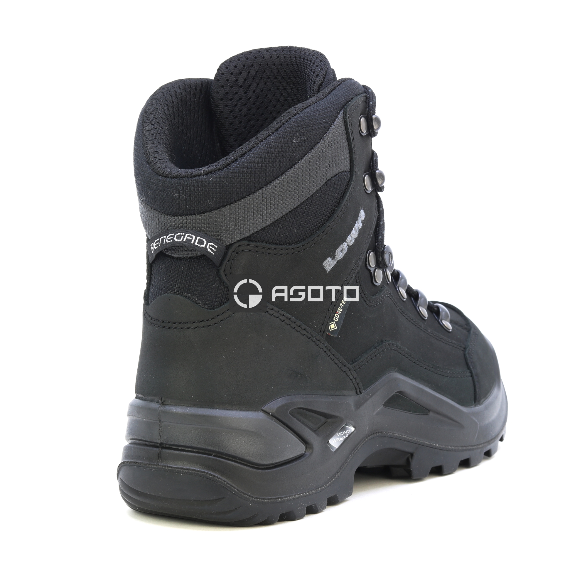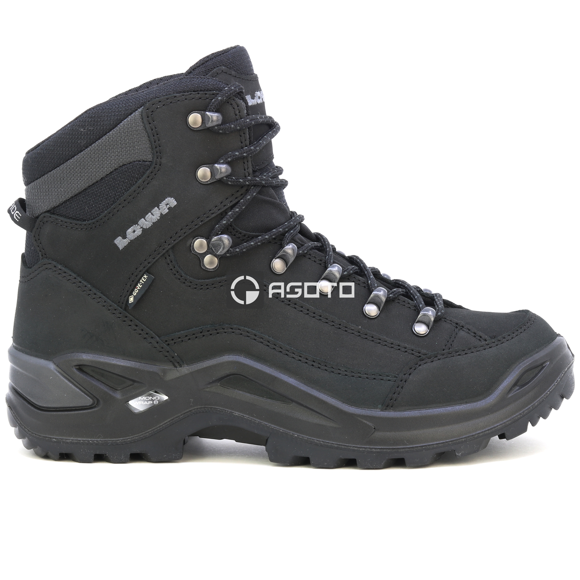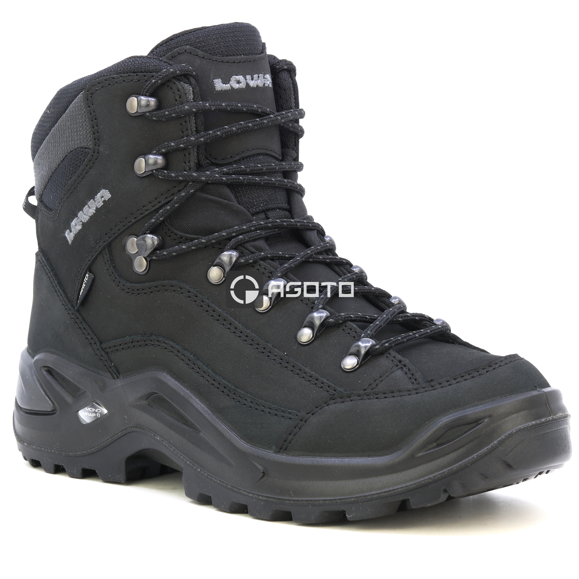 LOWA Renegade GTX Mid to męskie buty outdoorowe w kolorze czarnym, które łączą w sobie wygodę, ochronę i trwałość, idealne na różne warunki terenowe. But ten jest wyposażony w membranę Gore-Tex®, która zapewnia 100% wodoodporność i oddychalność, dzięki czemu stopy pozostają suche nawet podczas wymagających aktywności w każdą pogodę. Model posiada średnio-wysoki krój zapewniający optymalną stabilność i wsparcie kostki, co przyczynia się do bezpiecznego poruszania się po nierównym terenie. Podeszwa zewnętrzna Vibram® Evo zapewnia doskonałą przyczepność i trwałość, a amortyzowana podeszwa środkowa zapewnia maksymalny komfort podczas dłuższych wędrówek. Cholewka buta wykonana została z wysokiej jakości skóry nubukowej, która jest nie tylko stylowa, ale także bardzo trwała. Buty LOWA Renegade GTX Mid charakteryzują się wytrzymałą konstrukcją i komfortem przez cały dzień, co czyni je idealnym wyborem dla turystów pieszych i entuzjastów spędzania czasu na świeżym powietrzu, którzy szukają niezawodnego obuwia na zróżnicowany teren.