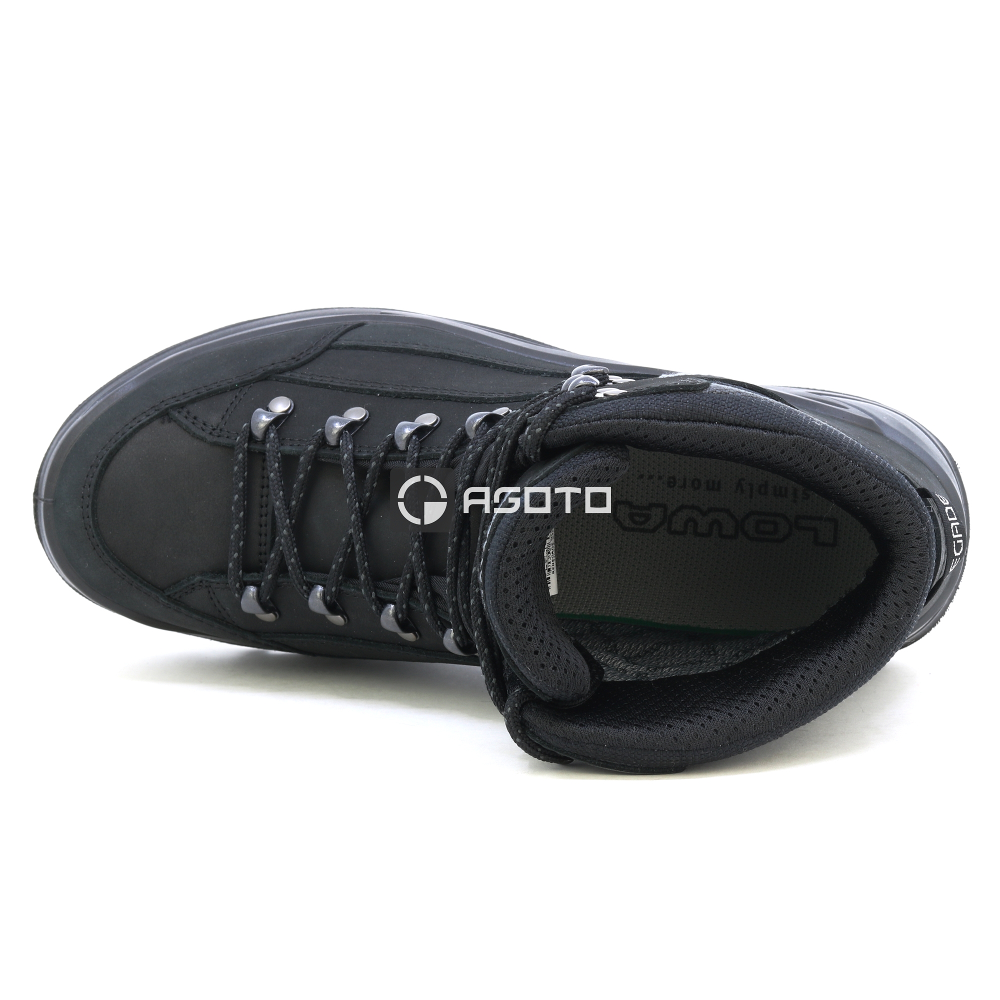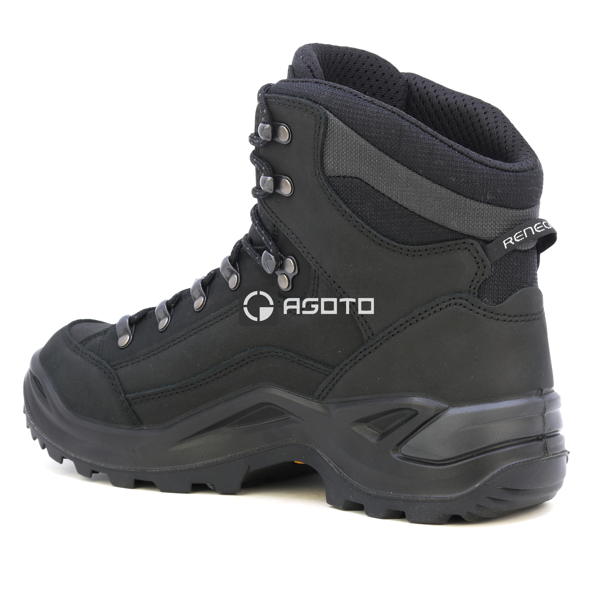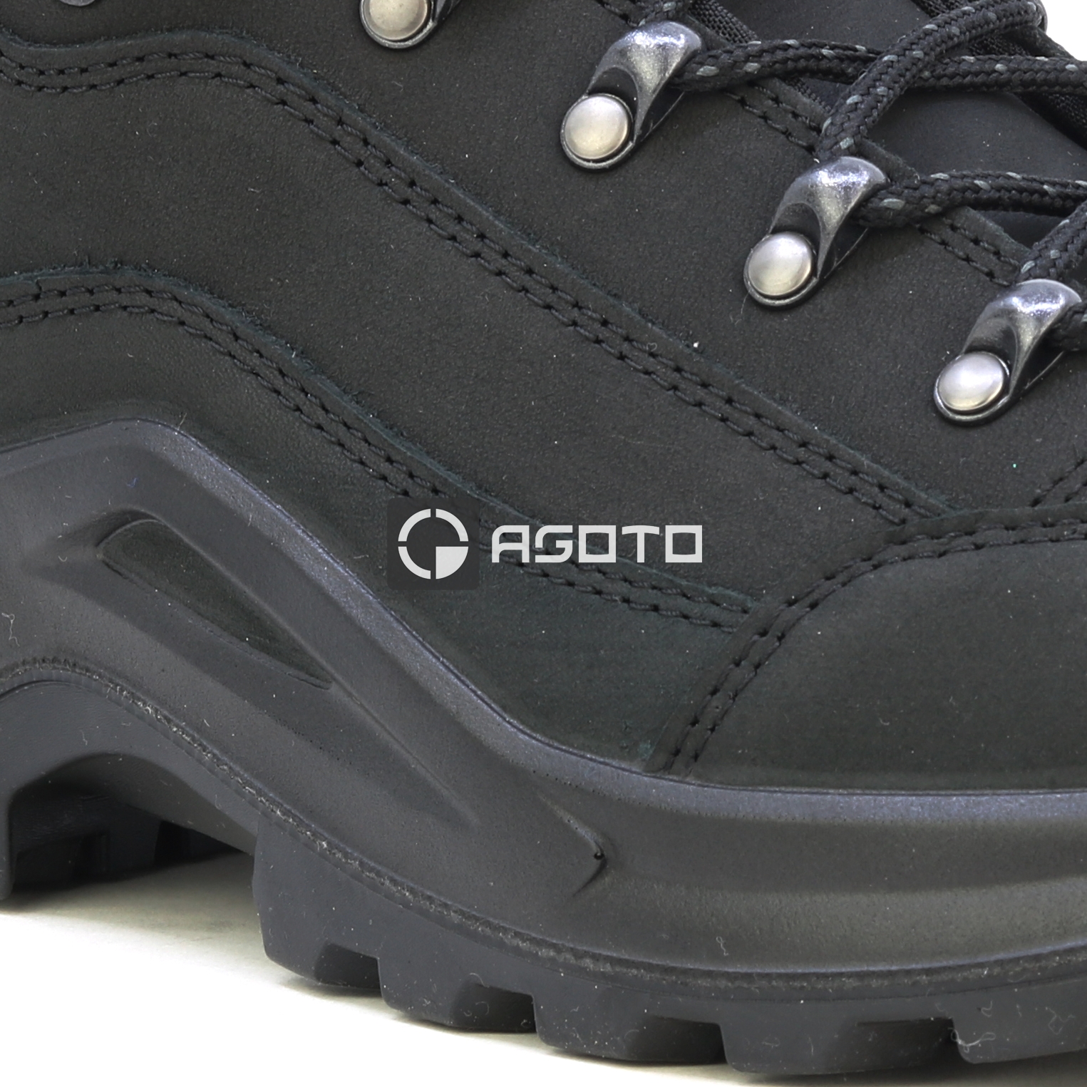 LOWA Renegade GTX Mid to męskie buty outdoorowe w kolorze czarnym, które łączą w sobie wygodę, ochronę i trwałość, idealne na różne warunki terenowe. But ten jest wyposażony w membranę Gore-Tex®, która zapewnia 100% wodoodporność i oddychalność, dzięki czemu stopy pozostają suche nawet podczas wymagających aktywności w każdą pogodę. Model posiada średnio-wysoki krój zapewniający optymalną stabilność i wsparcie kostki, co przyczynia się do bezpiecznego poruszania się po nierównym terenie. Podeszwa zewnętrzna Vibram® Evo zapewnia doskonałą przyczepność i trwałość, a amortyzowana podeszwa środkowa zapewnia maksymalny komfort podczas dłuższych wędrówek. Cholewka buta wykonana została z wysokiej jakości skóry nubukowej, która jest nie tylko stylowa, ale także bardzo trwała. Buty LOWA Renegade GTX Mid charakteryzują się wytrzymałą konstrukcją i komfortem przez cały dzień, co czyni je idealnym wyborem dla turystów pieszych i entuzjastów spędzania czasu na świeżym powietrzu, którzy szukają niezawodnego obuwia na zróżnicowany teren.