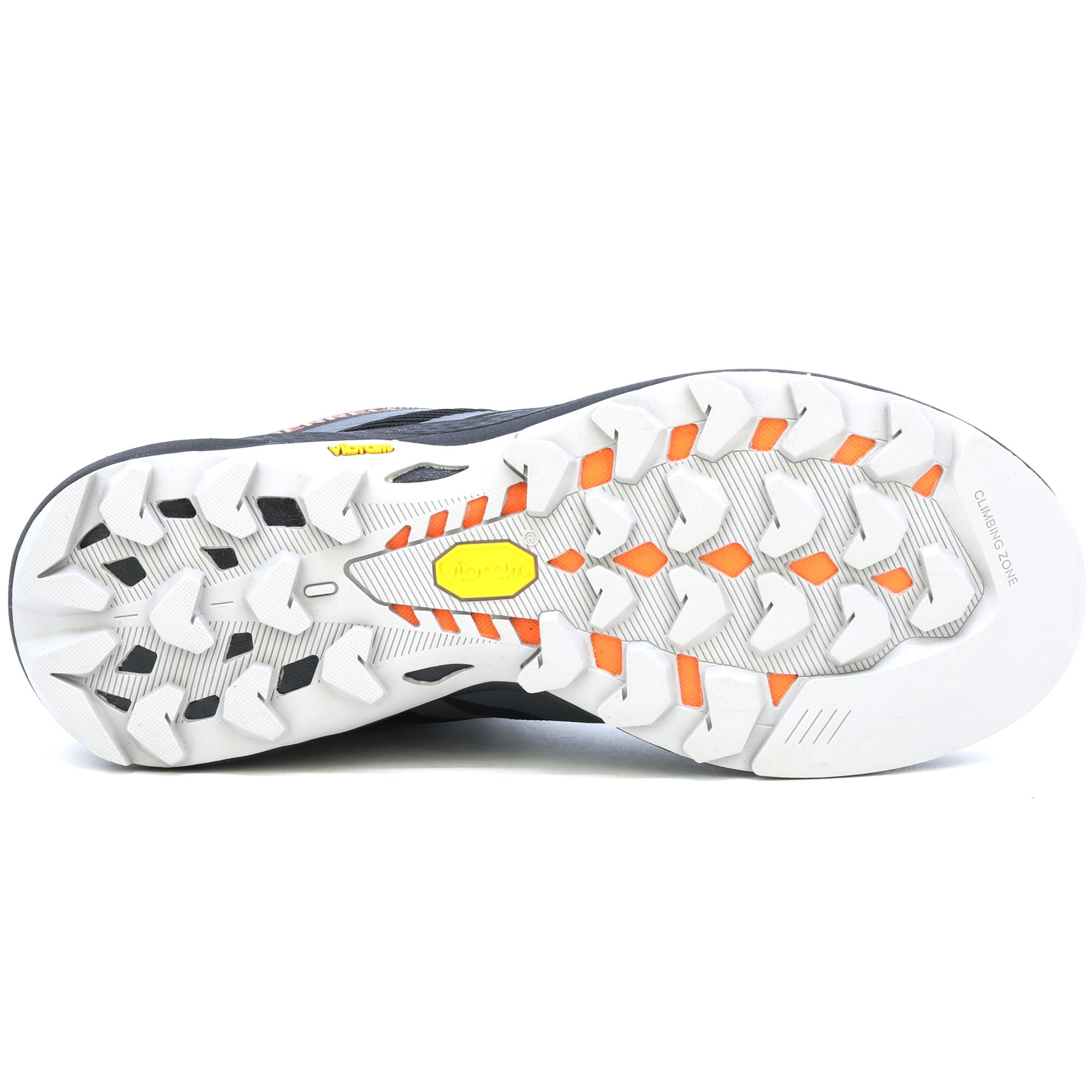 Trzecia wersja najlepiej sprzedającego się wielofunkcyjnego buta za szybkim poruszaniem się w górach jest wystarczająco stabilna do wędrówek, wystarczająco zwinna do biegania i wystarczająco wytrzymała do lekkiej wspinaczki. Wersja 3 ma nową przyczepną podeszwę Vibram® i system sznurowania palców dla lepszego blokowania. Sznurki i paski wykonane w 100% z recyklingu. Język chroni przed zanieczyszczeniami. Końcówka ochronna. Podszewka z siateczki w 100% z recyklingu. Wkładka z pianki EVA z warstwą wierzchnią w 100% pochodzącą z recyklingu. Odlewany łuk z nylonu. Merrell Air Cushion w pięcie amortyzuje wstrząsy i zwiększa stabilność. Ochrona przed skałami. Mieszanka Super Rebound zapewnia trwałą amortyzację w pięcie, pomagając zmniejszyć moment obrotowy i umożliwiając płynne przejście śródstopia. Podeszwa Vibram® TC5+ zaprojektowana z technicznej mieszanki o doskonałej ogólnej wydajności do uprawiania wielu sportów, outdoor, kolarstwa górskiego, sportów zimowych i sportów wodnych. Jego niebrudząca formuła zapewnia wszechstronną równowagę przyczepności, trakcji, trwałości i elastyczności.