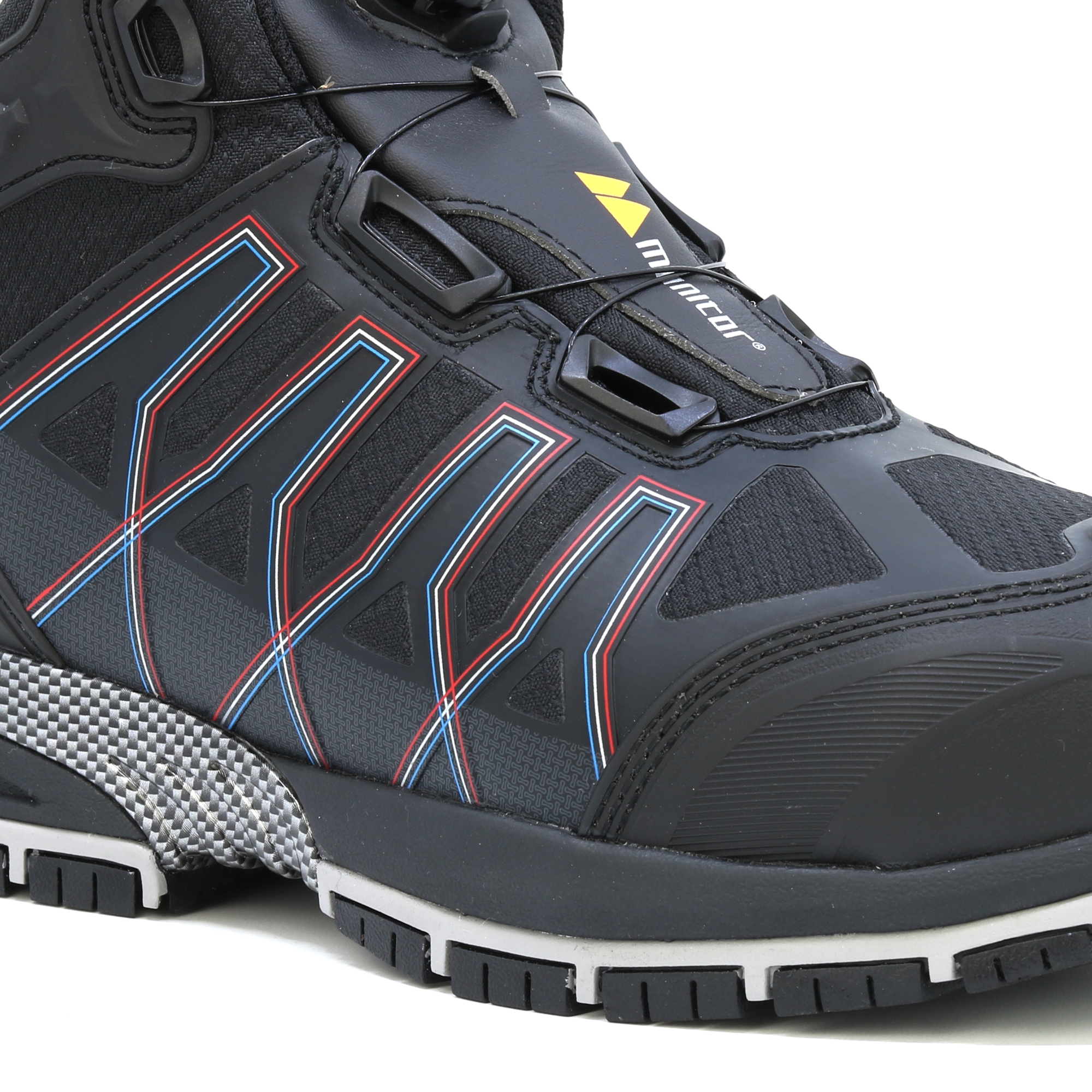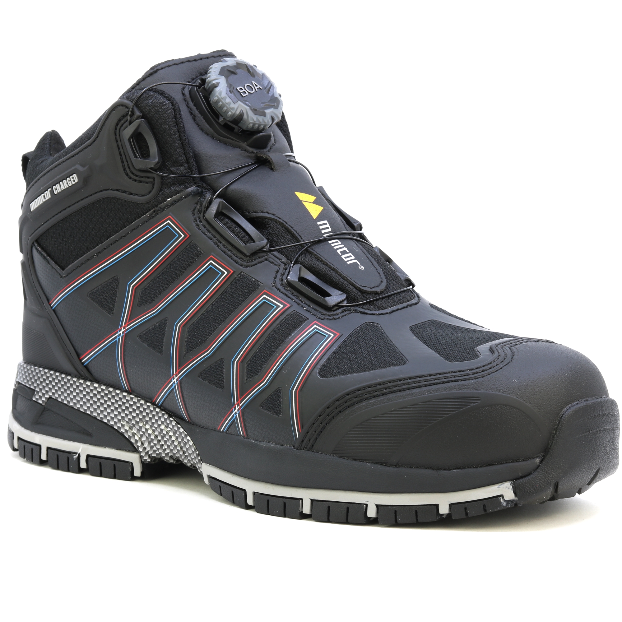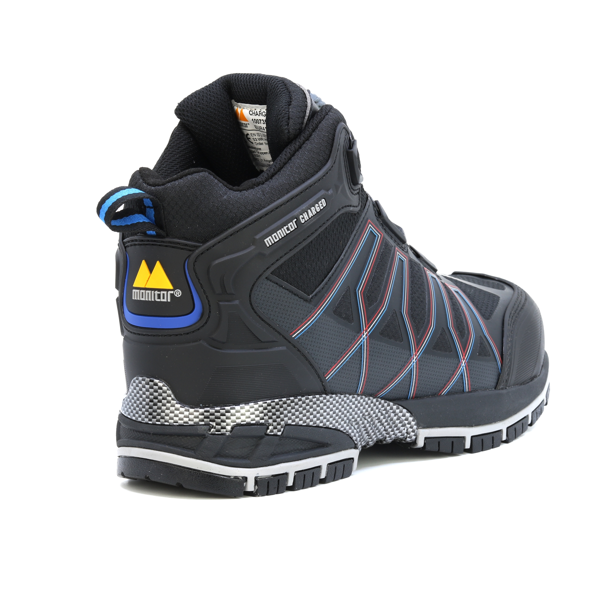 Monitor Charged to sportowe obuwie ochronne, które nie tylko wygląda jak buty sportowe, ale także zapewnia komfort i wygodę. Górna część wykorzystuje system BOA® Fit do szybkiego i łatwego łączenia w celu precyzyjnego przechowywania. Cholewka jest wyposażona w wodoodporną membranę Monitex, a także wytrzymały materiał Ripstop, a także silniejszą ochronę TPU na palcach i pięcie dla dodatkowej wytrzymałości.