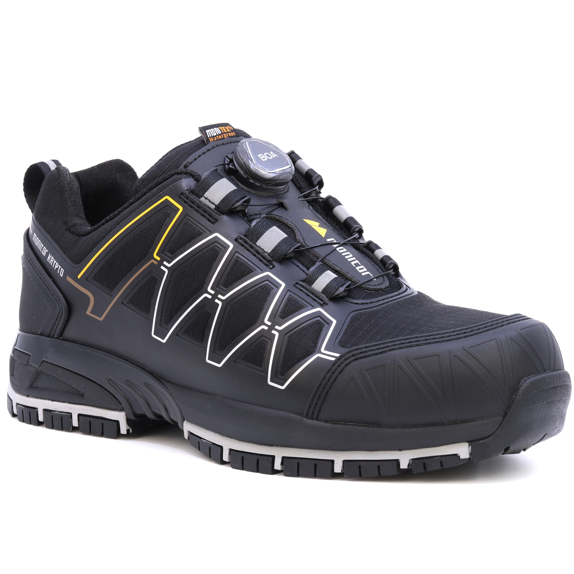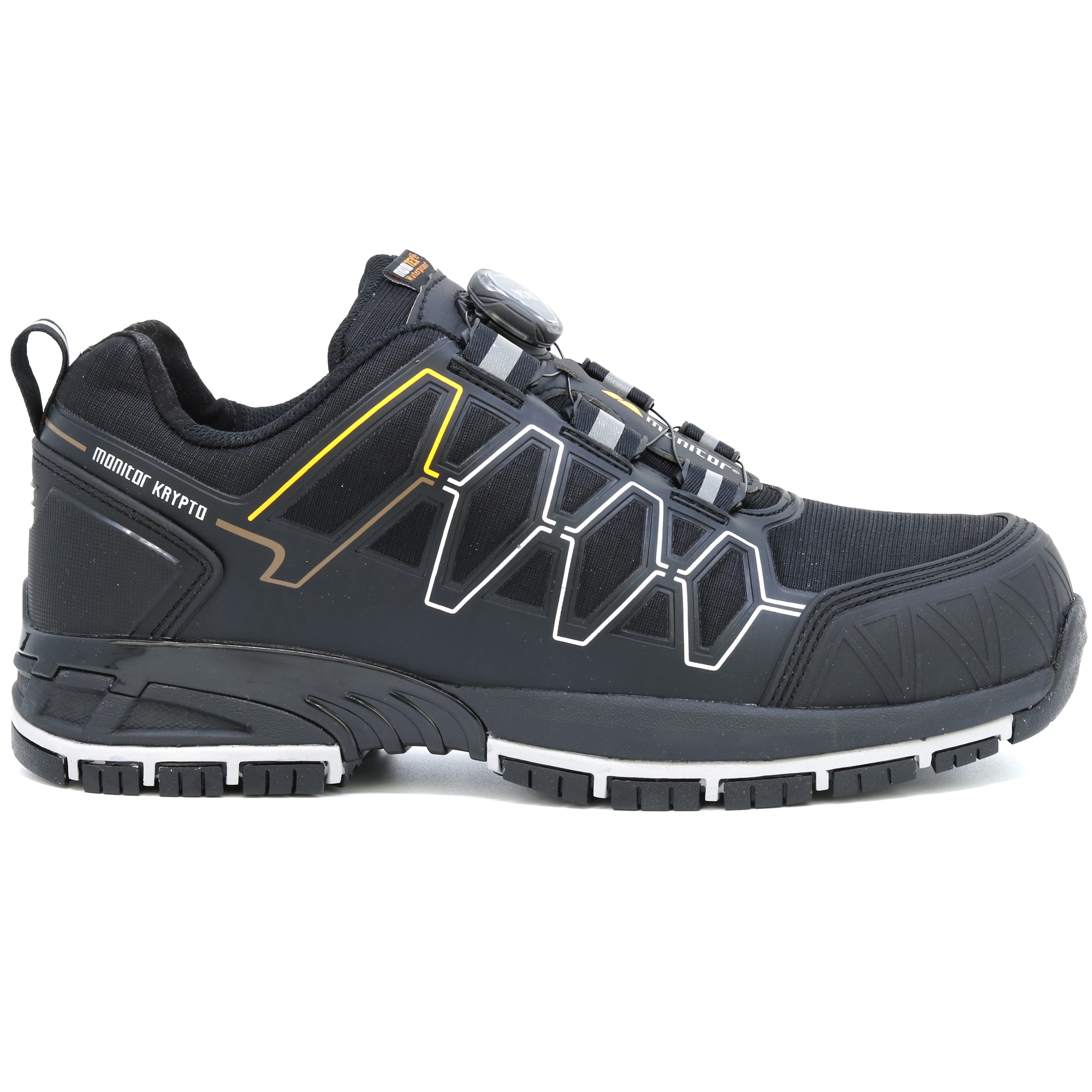 Monitor Krypto to sportowe obuwie ochronne, które nie tylko wygląda jak buty sportowe, ale także zapewnia komfort i wygodę. Górna część wykorzystuje system BOA® Fit do szybkiego i łatwego łączenia w celu precyzyjnego przechowywania. Cholewka jest wyposażona w wodoodporną membranę Monitex, a także wytrzymały materiał Ripstop, a także silniejszą ochronę TPU na palcach i pięcie dla dodatkowej wytrzymałości.