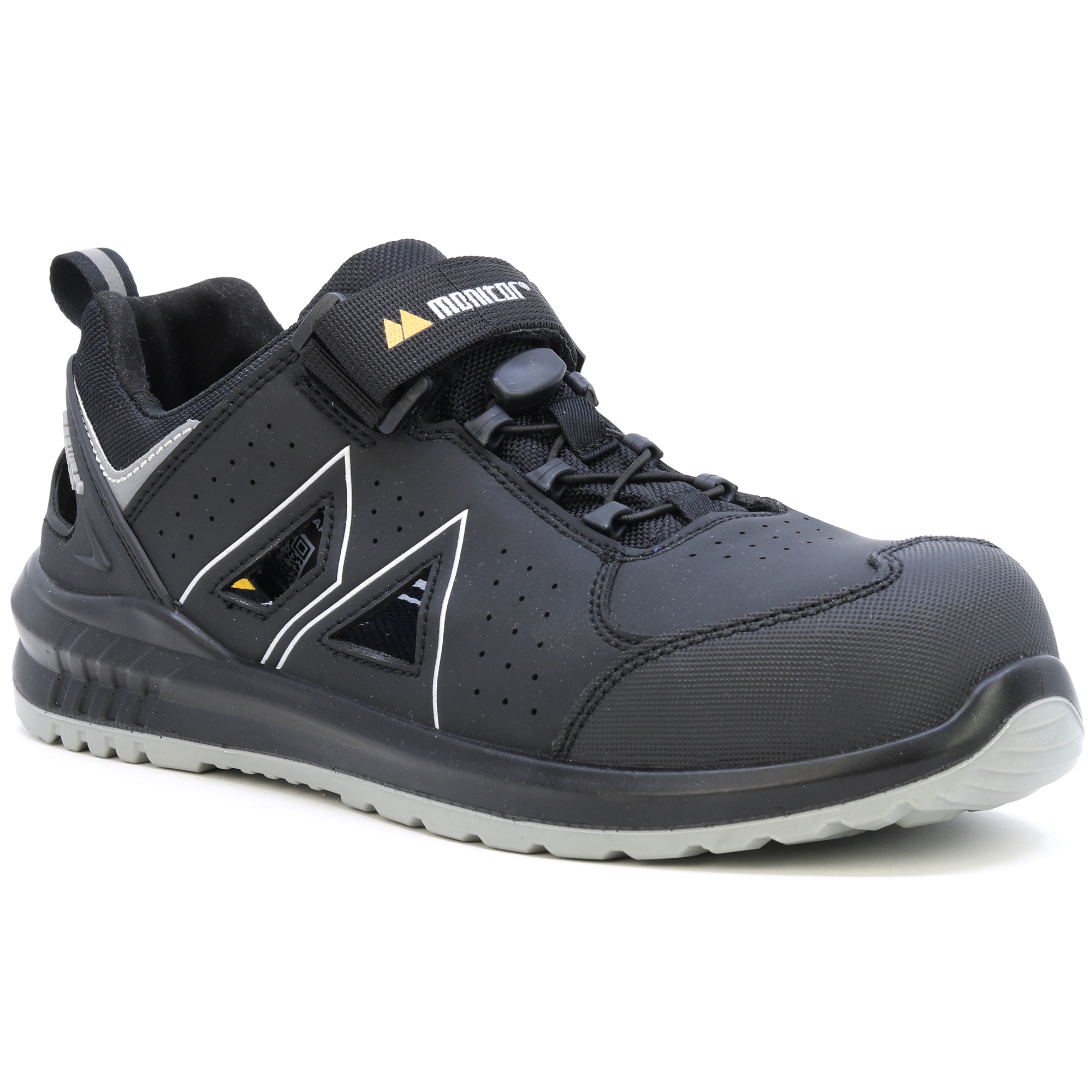 Monitor Radar to kolejny nowy członek rodziny Dynamic! Radar to nowe sportowe obuwie ochronne wykonane w technologii formowania wtryskowego i ma wentylowaną cholewkę z mikrofibry z dużymi, wentylowanymi obszarami po obu stronach. Podeszwa wykonana jest z poliuretanu o podwójnej gęstości, podeszwa środkowa ma miękkość 50 i razem z wkładką Monitor SS 2.0 tworzy niezwykle wygodny i amortyzowany but pomimo smukłej podeszwy. Radar posiada nowy rodzaj sznurowania, w którym połączyliśmy klasyczne rzepy z wygodnym rozwiązaniem sznurowania, dzięki czemu but jest wygodny w noszeniu i umożliwia łatwe zakładanie i zdejmowanie. Wnętrze buta wykonano z tkaniny pochłaniającej wilgoć. Końcówka wykonana jest z materiału kompozytowego i odpornego na penetrację miękkiego APT.