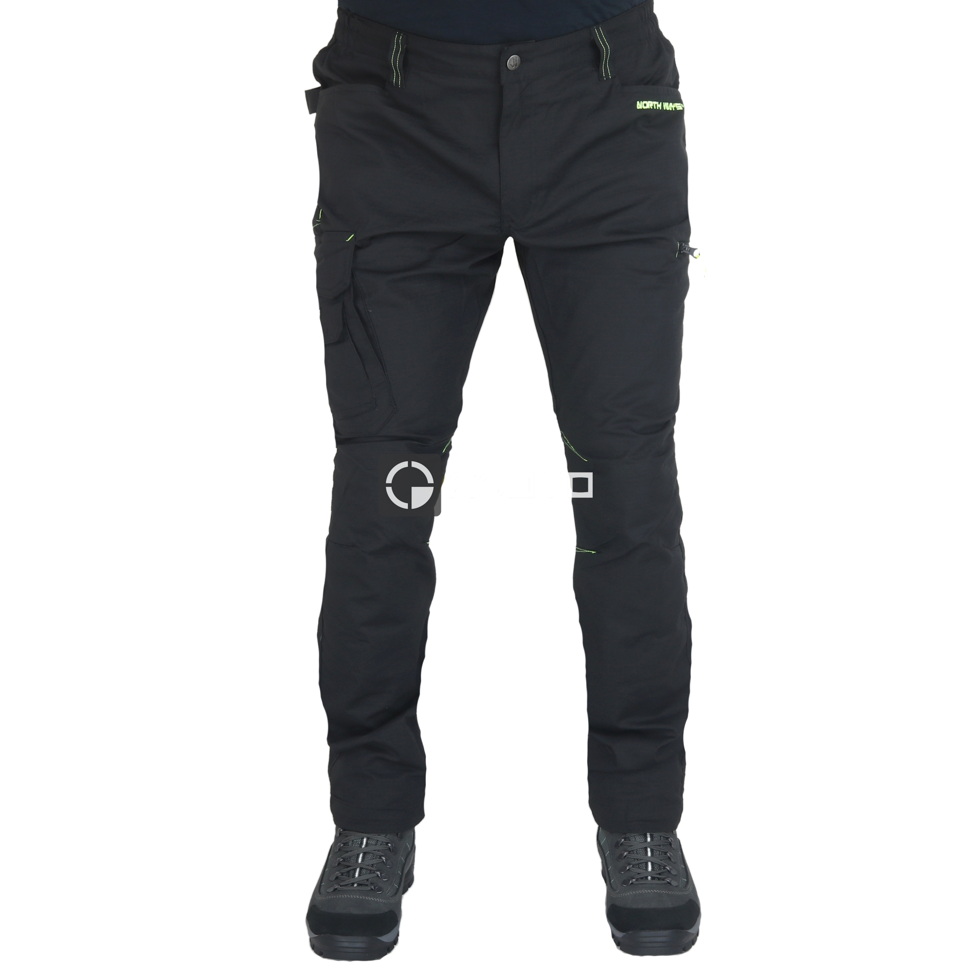 RIPSTOP 65% Poliester 32% Bawełna 3% Elastan, 215g/m2. SPECYFIKACJA: Wstępnie ukształtowane nakolanniki. Półelastyczna opaska. Wysokie oparcie. 8 kieszeni: 2 kieszenie boczne, 1 składana kieszeń na miarkę, 1 kieszeń klinowa z klapką, 1 kieszeń na smartfona, 2 kieszenie zapinane na zamek, 1 naszywana kieszeń z klapką, 1 miejsce na karty, 1 pętelka na taśmę. Potrójne szycie. Regulowany dół