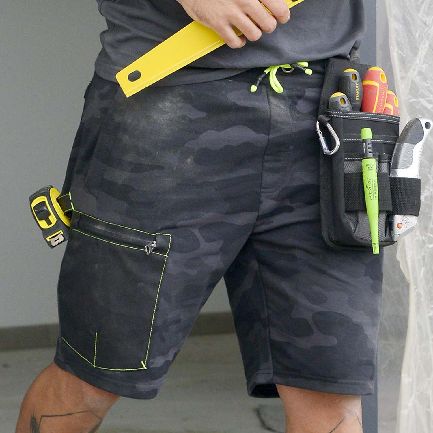 FRENCH TERRY 65% Poliester 35% Bawełna, 250g/m2, 600D Wzmocnienie Oxford z 100% poliestrową powłoką PU, 250g/m2. SPECYFIKACJA: Wzmocnienie kieszeni. Elastyczna opaska. Sznurek do ściągacza. 5 kieszeni: 3 kieszenie zapinane na zamek, 2 kieszenie naszywane, 1 pętla z taśmy, 1 pętla do mocowania narzędzi