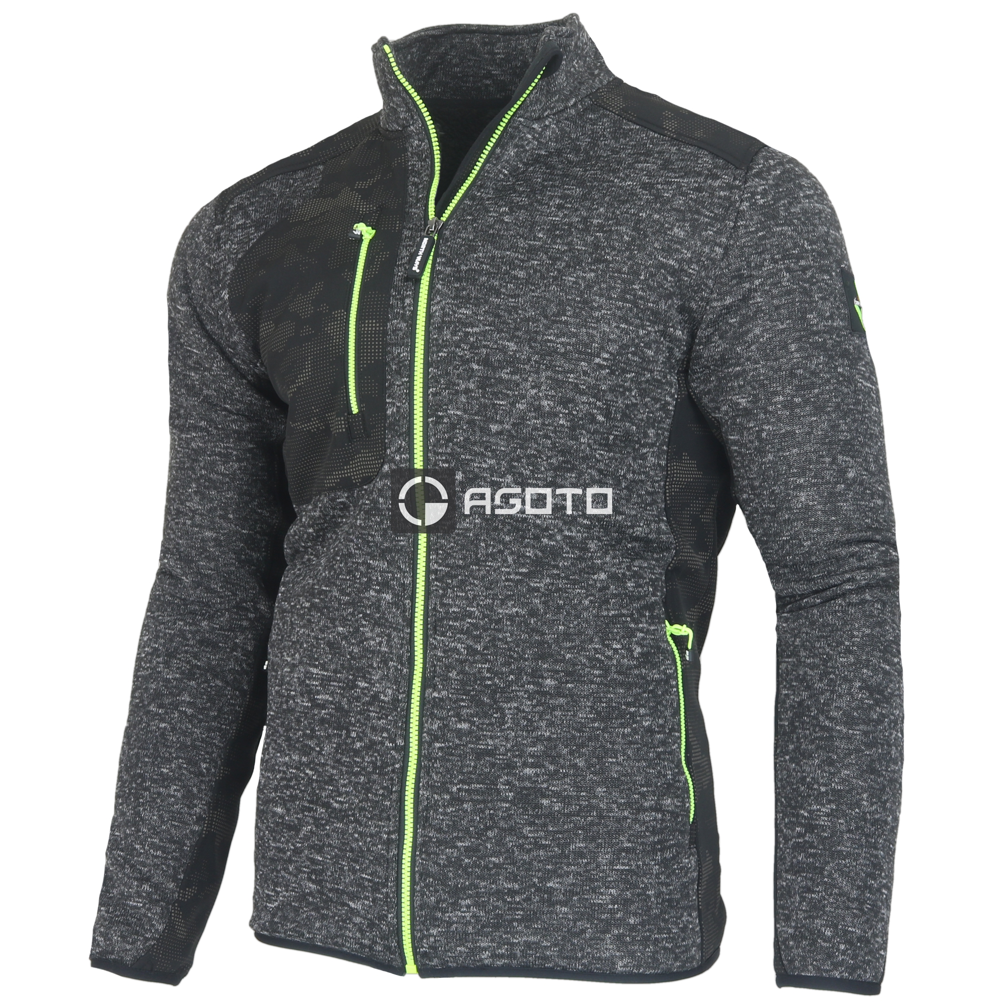 Nowoczesna męska kurtka z dzianiny z elementami odblaskowymi dla lepszej widoczności.Wzmocnione ramiona, boki i kieszenie. Wysoki kołnierz, osłona podbródka, elastyczne ukośne zakończenia. 5 kieszeni: 3 kieszenie zapinane na zamek, 2 kieszenie wewnętrzne. Dzianina 100% poliester, 300g/m2