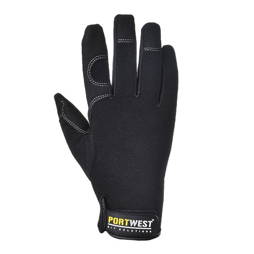 Víceúčelové rukavice PORTWEST s výjimečnými vlastnostmi, velmi lehké, mimořádně odolné BuildTex™, vyztužené zápěstí, zesílené prošití pro extra pevnost a ochranu Materiál: syntetická kůže / Lycra / Spandex