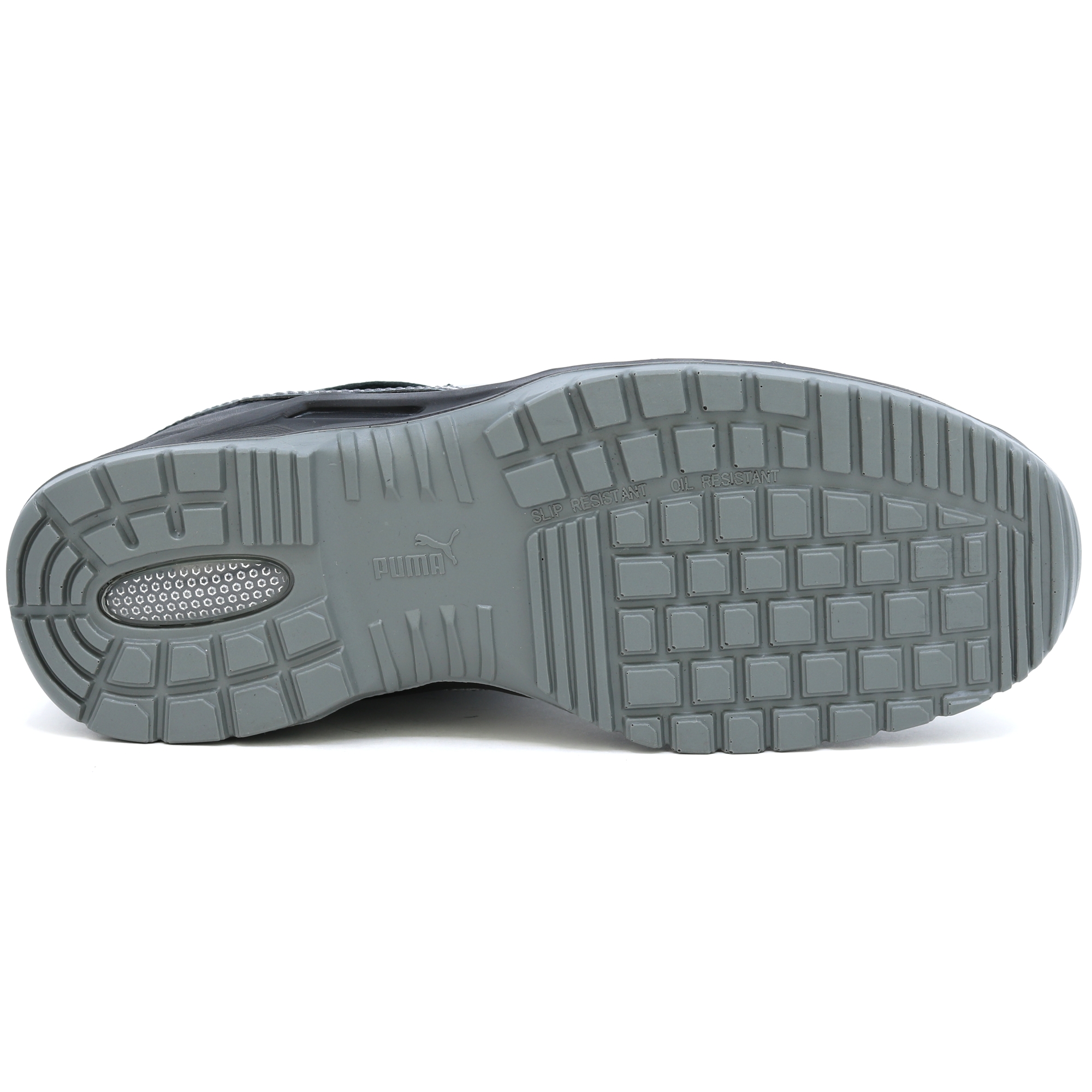 Bezmetalowy ARGON RX LOW z odblaskowym logo PUMA z boku całego buta. LINIA TECHNICS charakteryzuje się dużą elastycznością i efektowną lekką konstrukcją. Osiąga się to dzięki naturalnej architekturze jedynego FLEXMOTION®. Łączy koncepcję „naturalnego biegania” z najnowszą technologią obuwia ochronnego. Obuwie ochronne S3 o charakterystyce ESD z płaskiej skóry licowej jest wyposażone w bardzo odporny stalowy kaptur i ochronę przed perforacją FAP®. Wkładka Evercushion® BA wykonana z pianki o otwartych komórkach odprowadza wilgoć ze stopy i wraz z oddychającą, funkcjonalną wyściółką BreathActive zapewnia stopom komfortowy klimat przez cały dzień. Specjalnie opracowany profil podeszwy gwarantuje w ten sposób najlepszą możliwą przyczepność, szczególnie na gładkich podłogach przemysłowych. BUTY OCHRONNE EN ISO: 20345